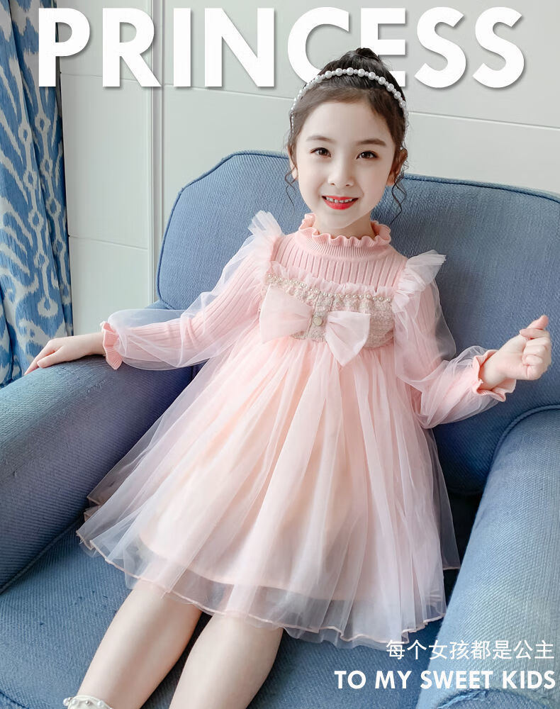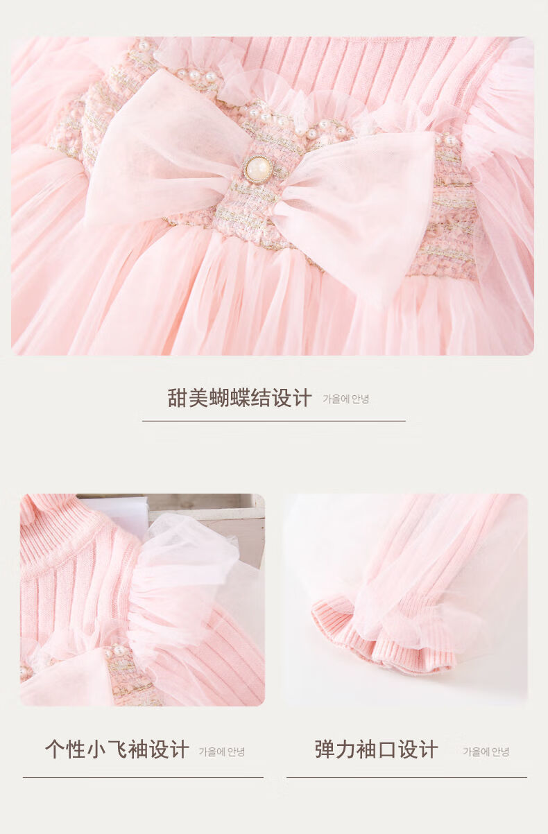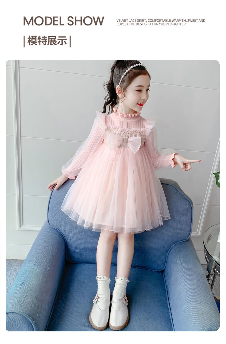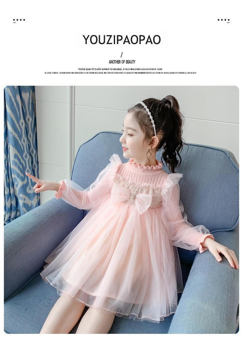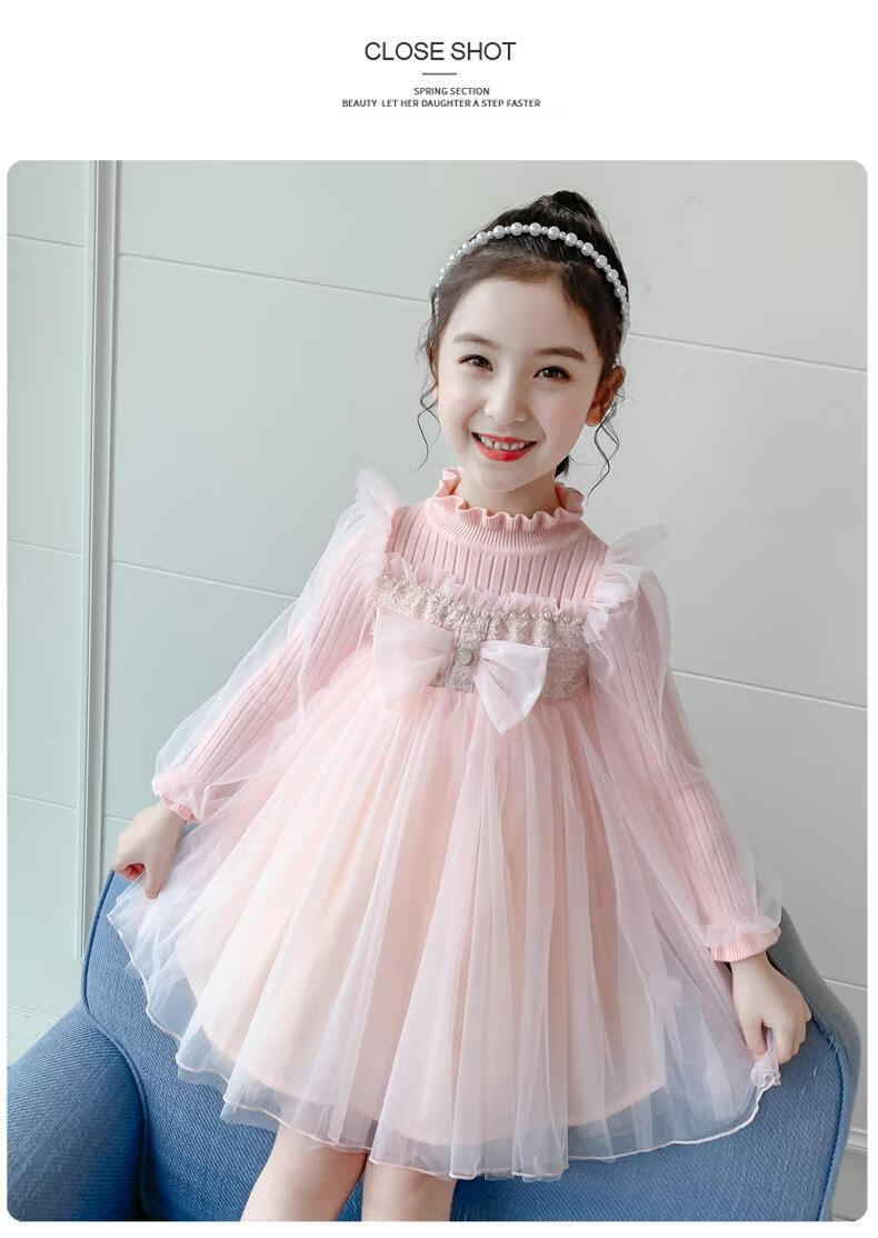 Didi HEYDIDY girls princess dress autumn and winter 5 children 6 western style 7 spring and autumn gauze skirt 8 dress 9-year-old girl knitted dress M566 pink 120 cm