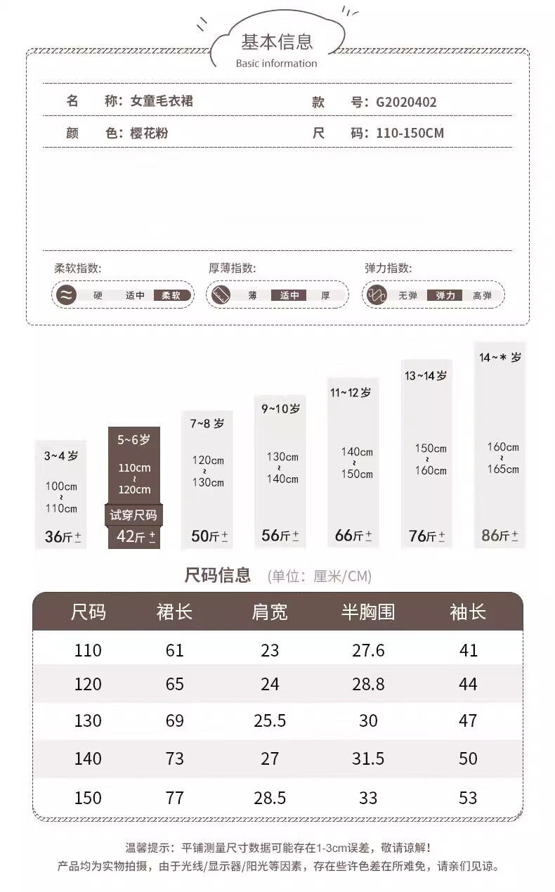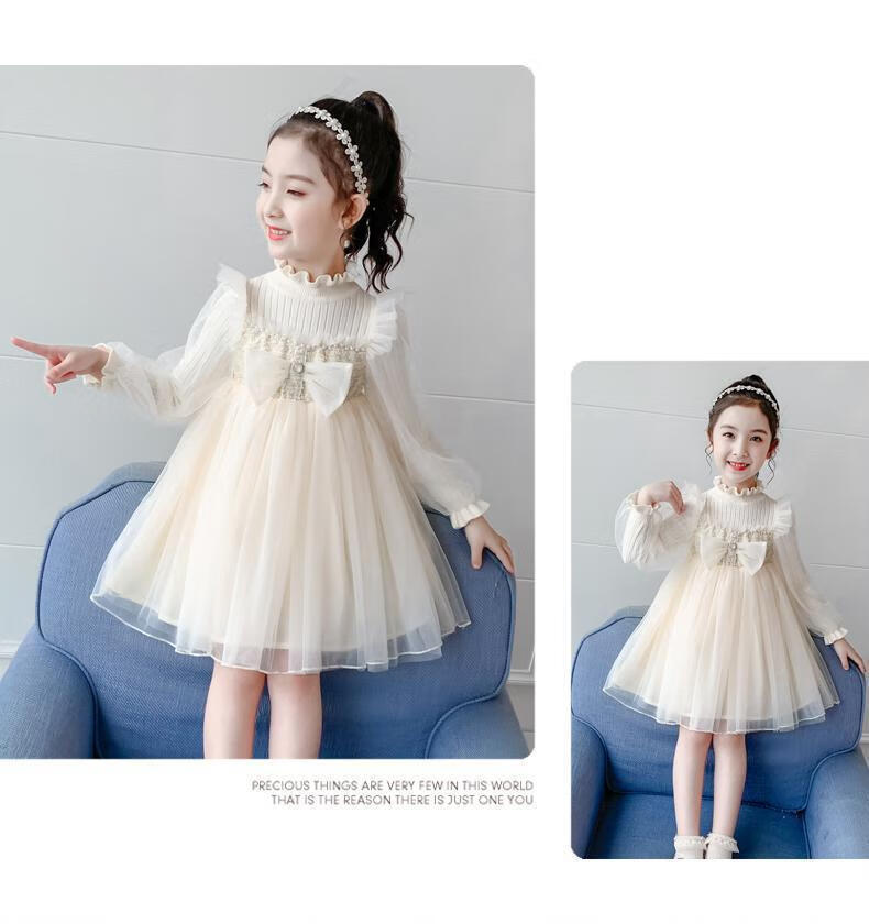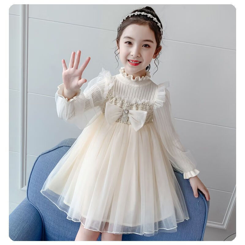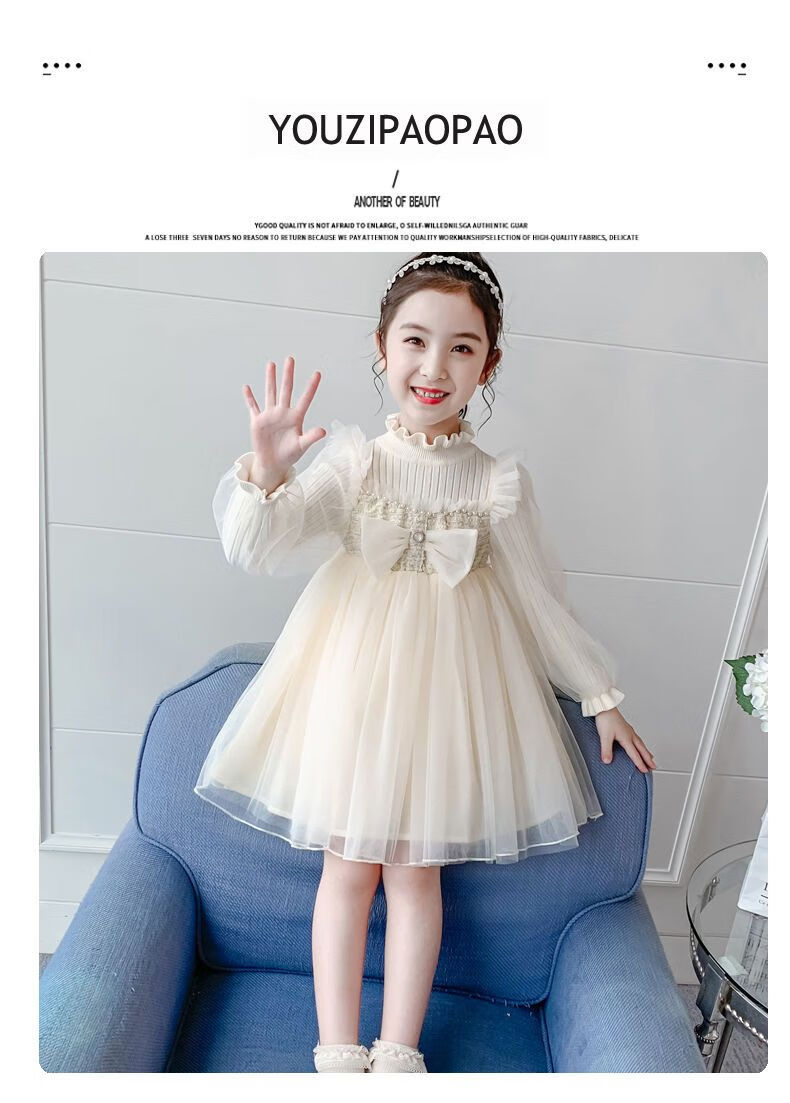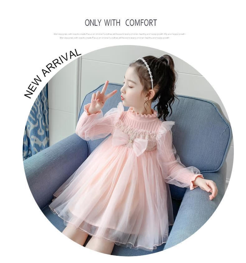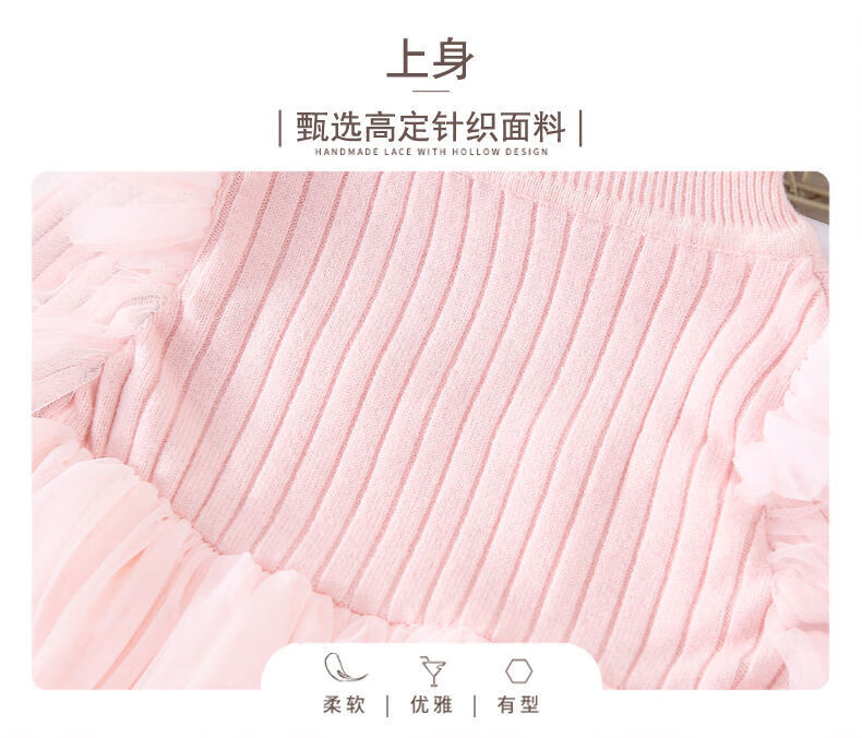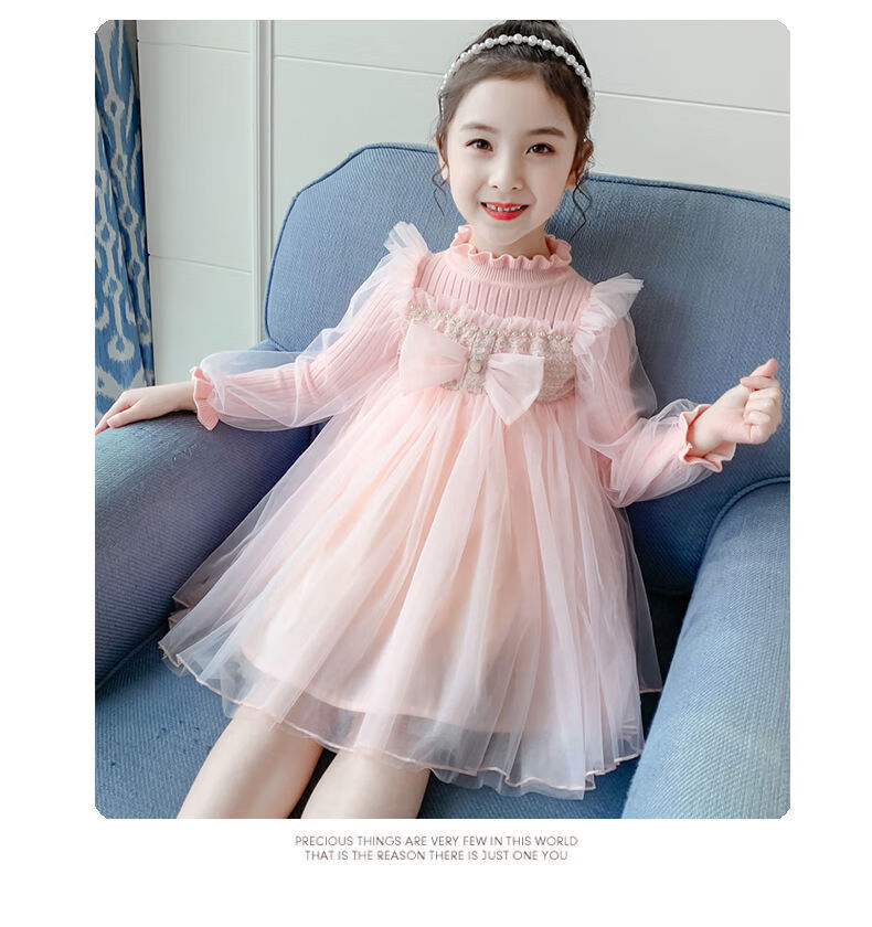 Didi HEYDIDY girls princess dress autumn and winter 5 children 6 western style 7 spring and autumn gauze skirt 8 dress 9-year-old girl knitted dress M566 pink 120 cm