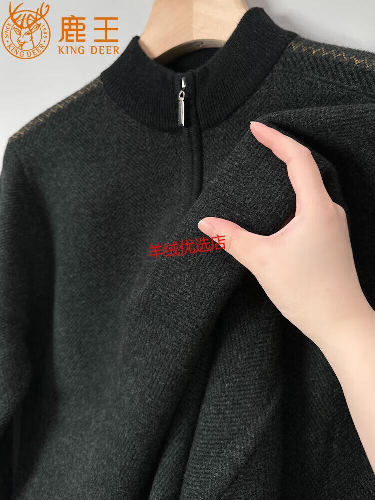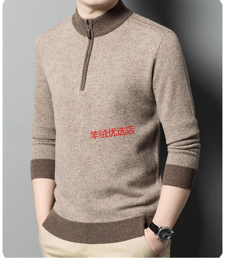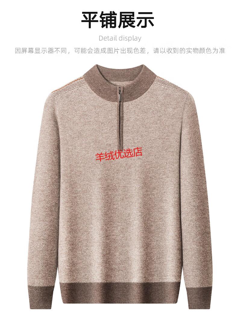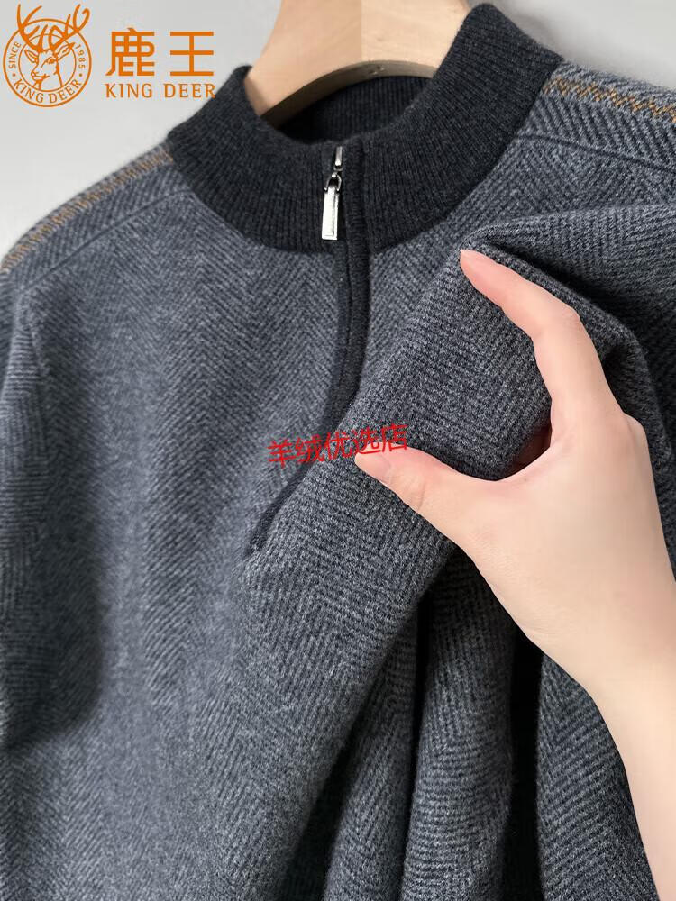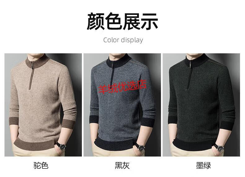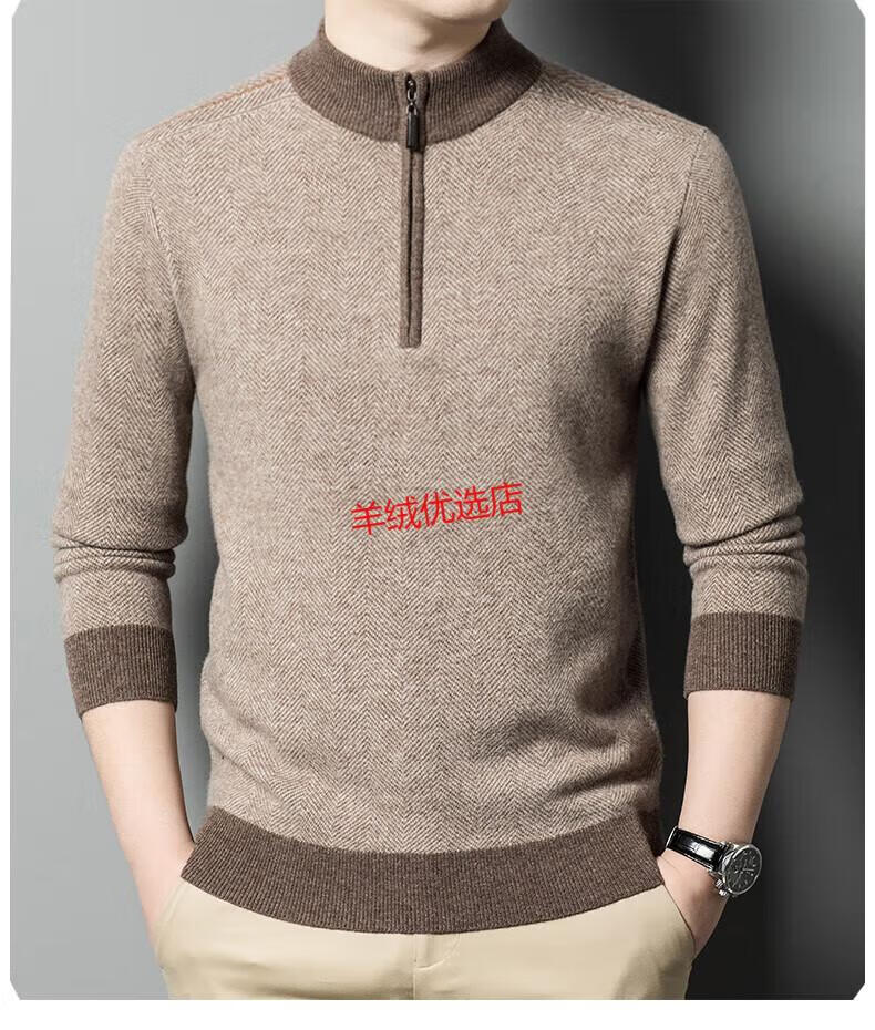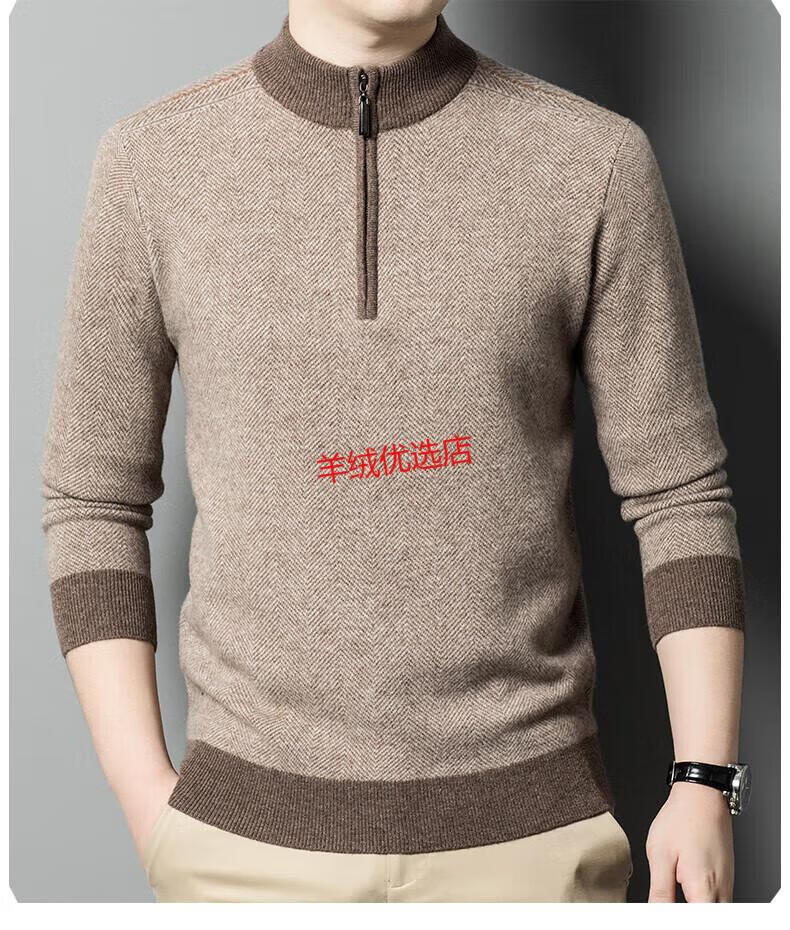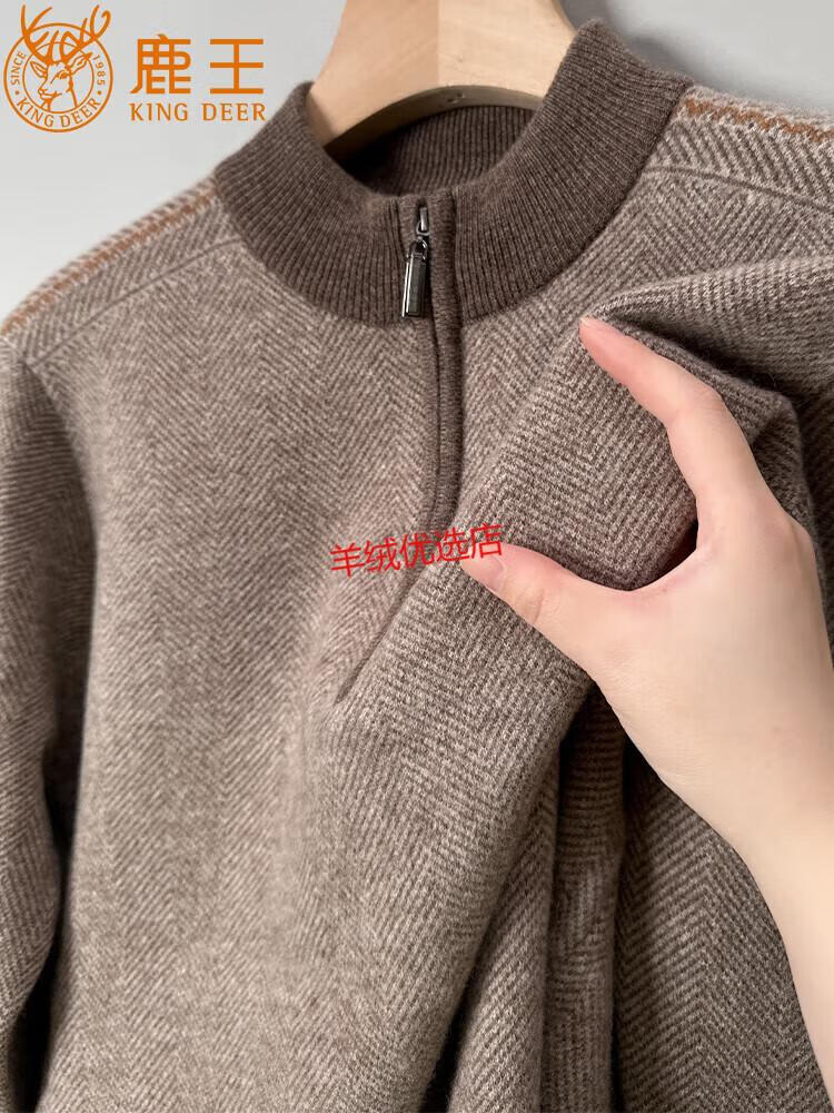 Deer King Optim cashmere sweater men's 100 pure cashmere men's half-high zipper collar winter thickened warm pullover knitted middle-aged sweater camel cashmere M 165 100-125Jin Jin equals 0.5 kg