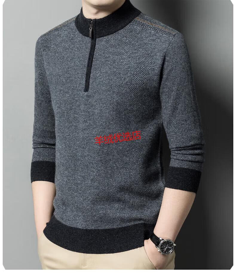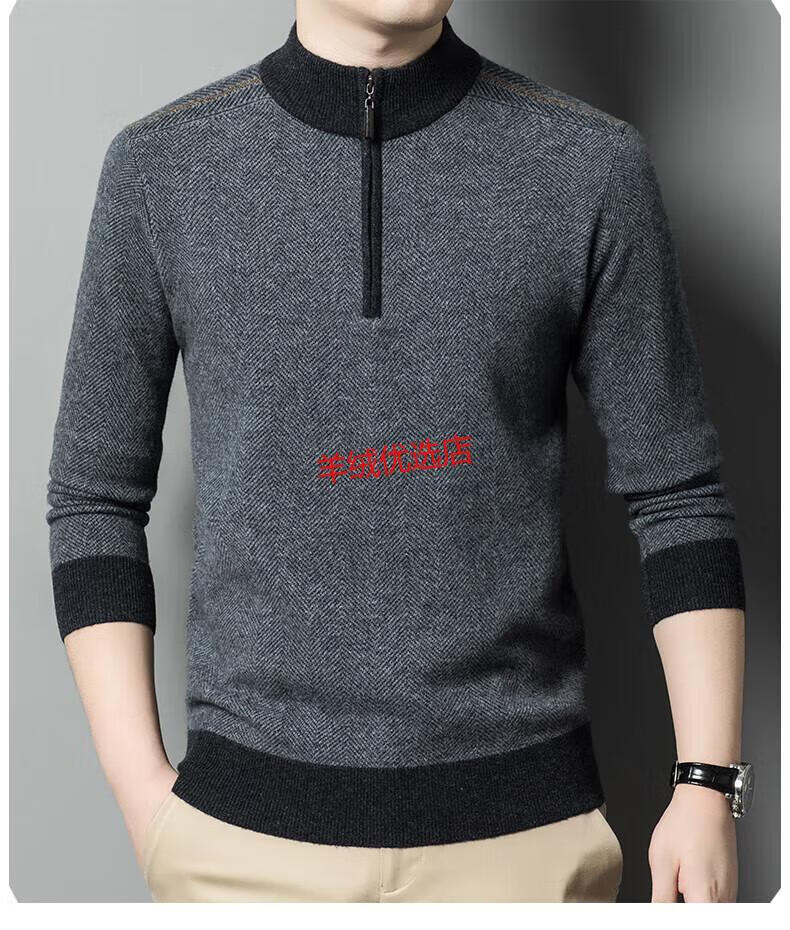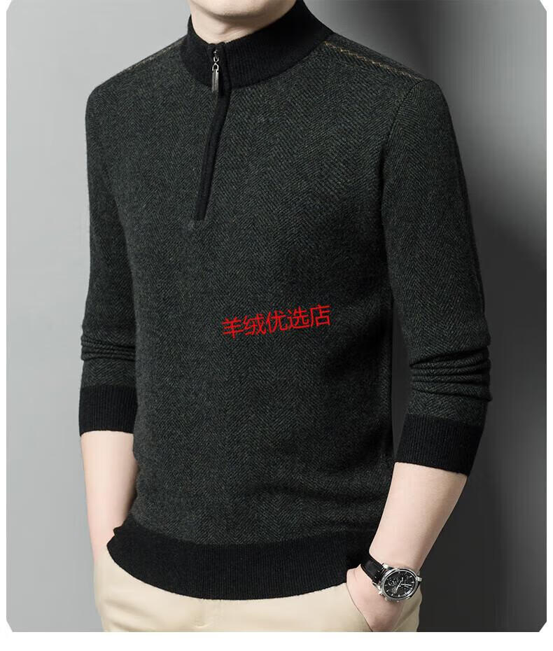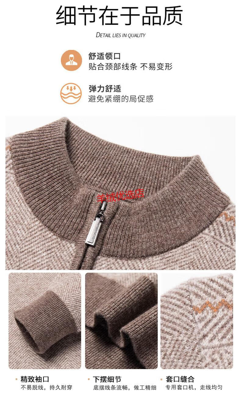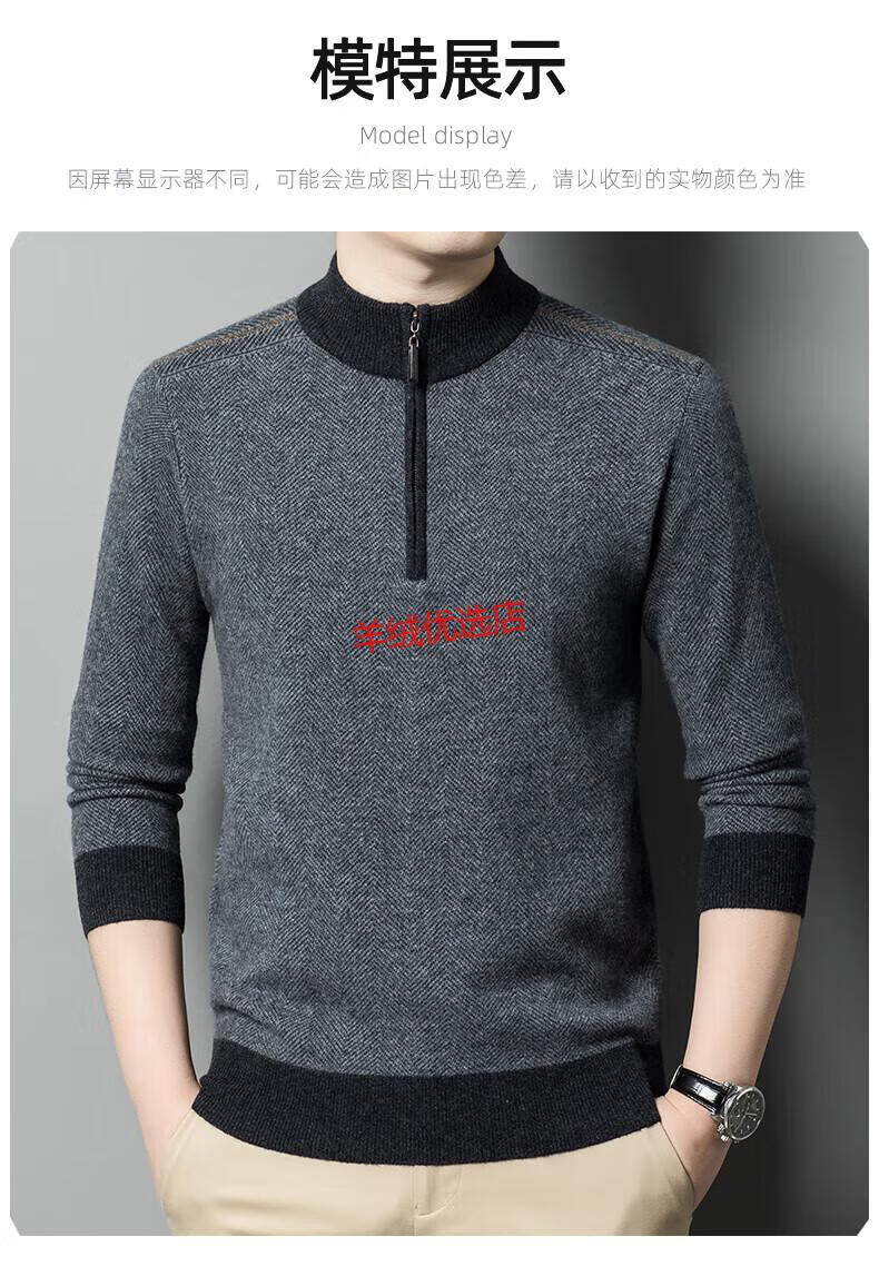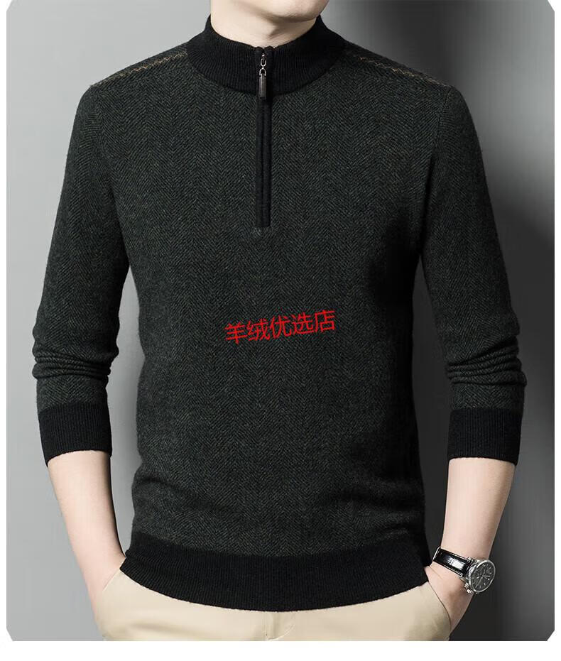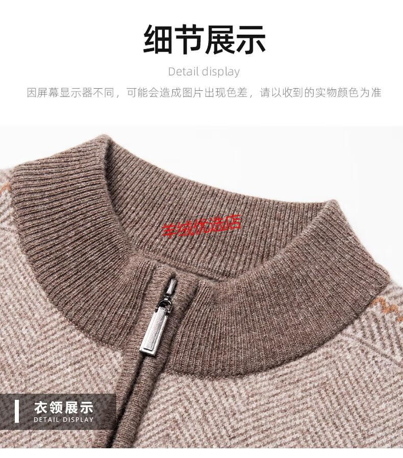 Deer King Optim cashmere sweater men's 100 pure cashmere men's half-high zipper collar winter thickened warm pullover knitted middle-aged sweater camel cashmere M 165 100-125Jin Jin equals 0.5 kg
