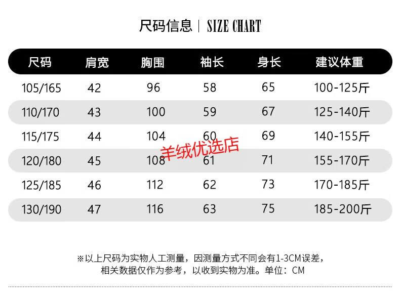 China (cm) 165 / 88-90 170 / 96-98 175 / 108-110 180 / 118-122 185 / 126-130
