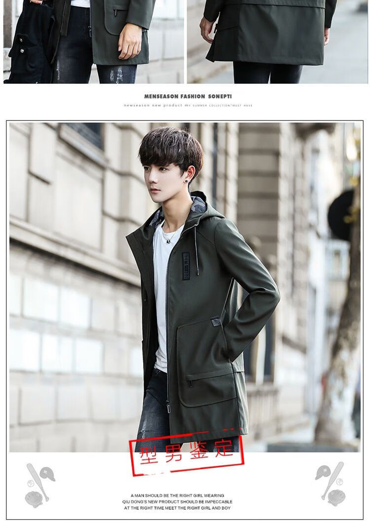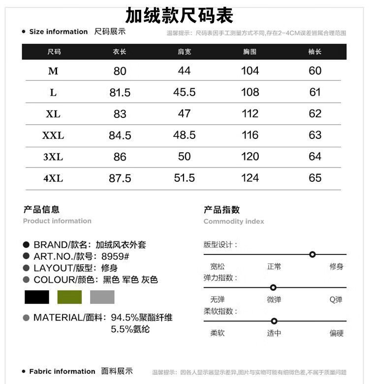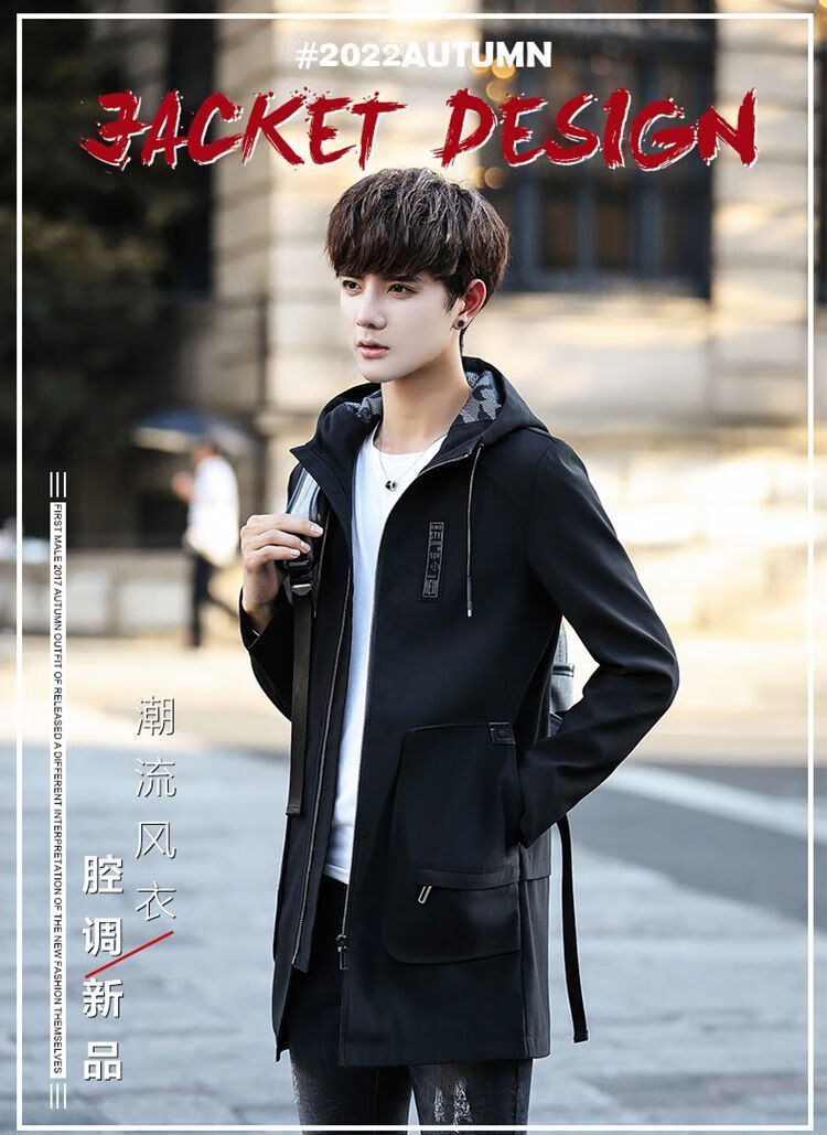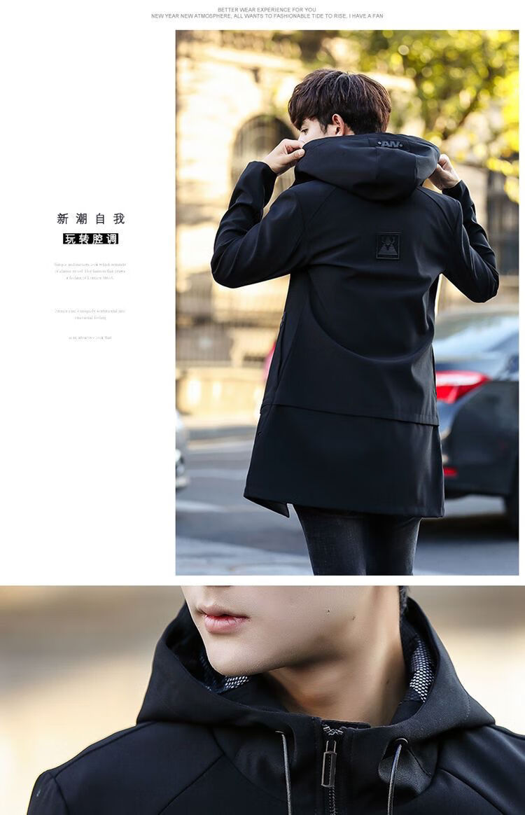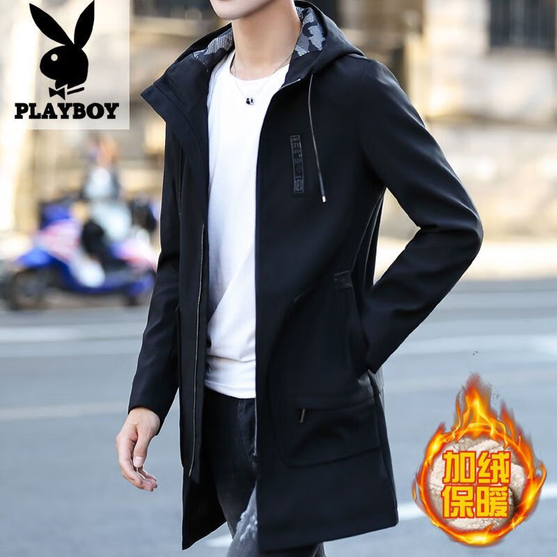 Playboy Men's Mid-Length Windbreaker Jacket Autumn and Winter New Korean Style Handsome Cotton Clothes Casual Velvet Thickened Coat Jacket Black Velvet XL