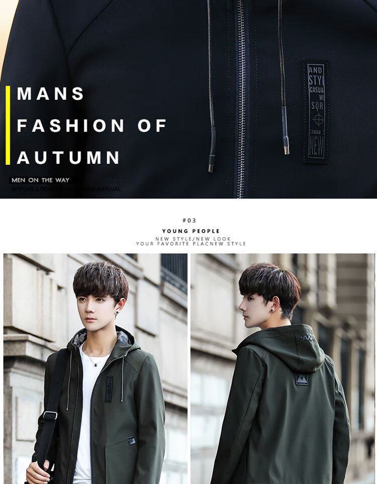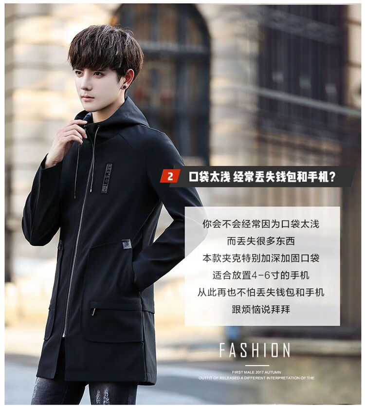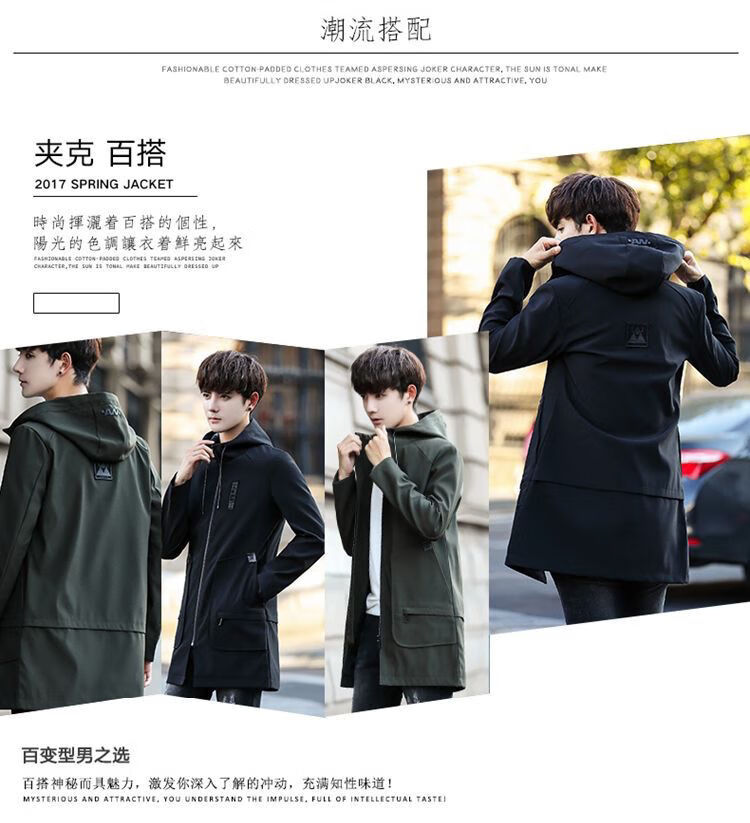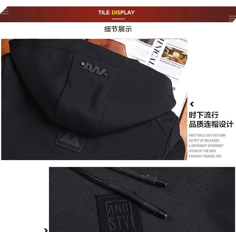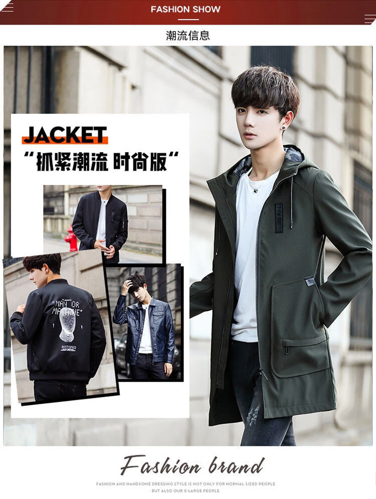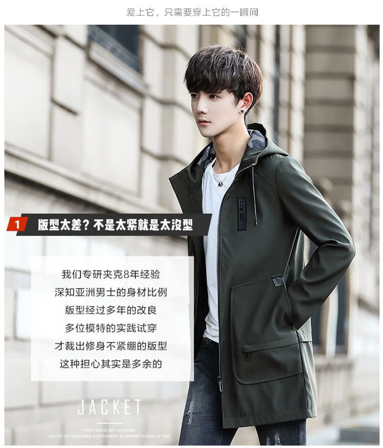 Playboy Men's Mid-Length Windbreaker Jacket Autumn and Winter New Korean Style Handsome Cotton Clothes Casual Velvet Thickened Coat Jacket Black Velvet XL