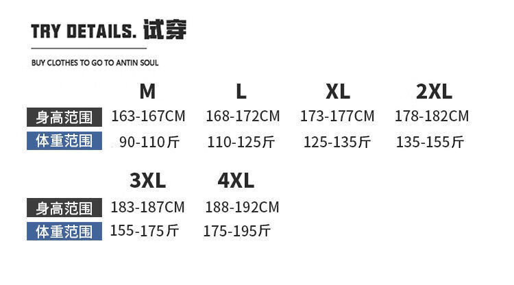 China (cm) 165 / 88-90 170 / 96-98 175 / 108-110 180 / 118-122 185 / 126-130