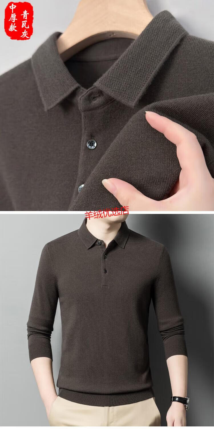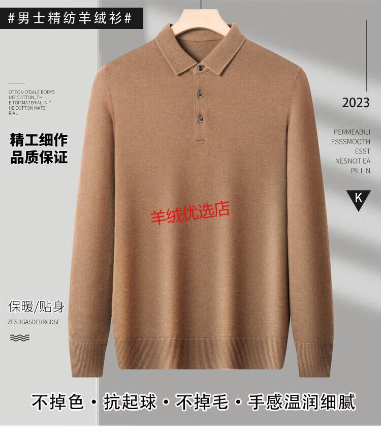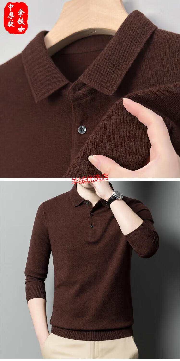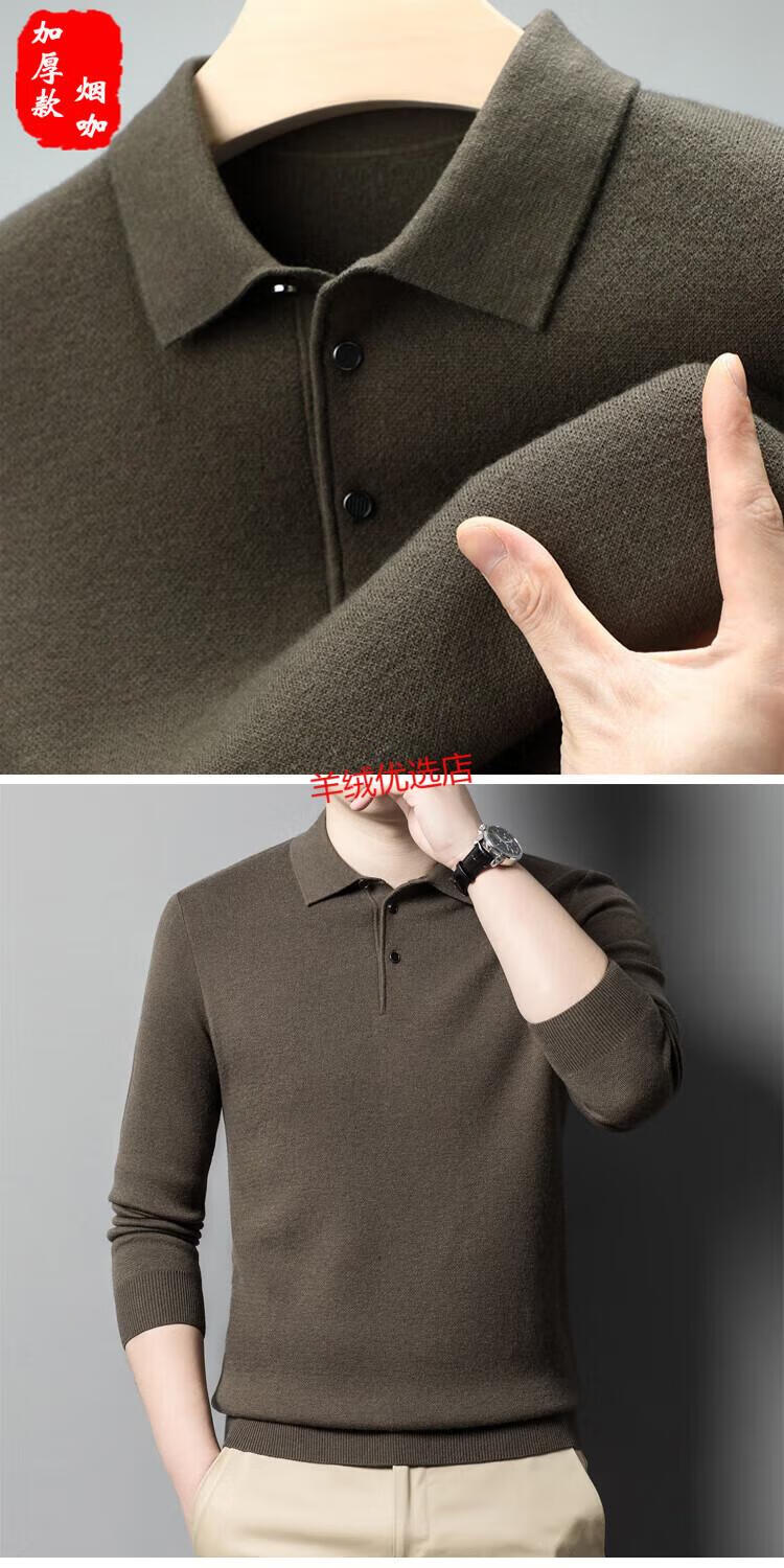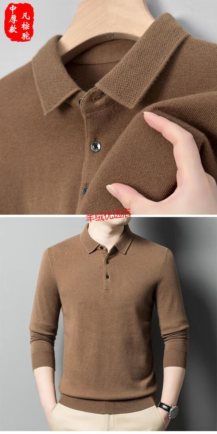 Deer King Optim Autumn and Winter New 100 Pure Cashmere Sweater Men's Casual and Versatile Middle-aged Men's Slim Lapel Long Sleeve Bottoming Sweater Fan Brown Camel (Medium) Thick S 165 Code Recommended 100-120 Jin Jin is equal to 0.5 kg
