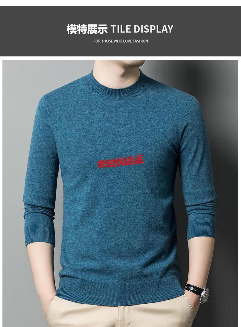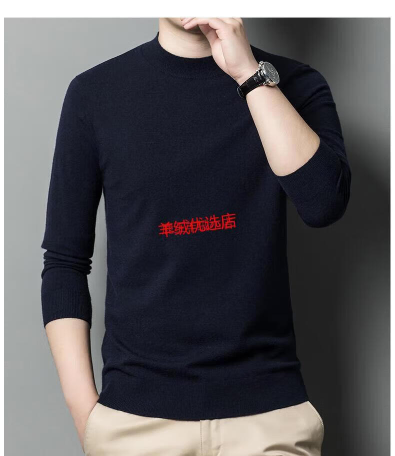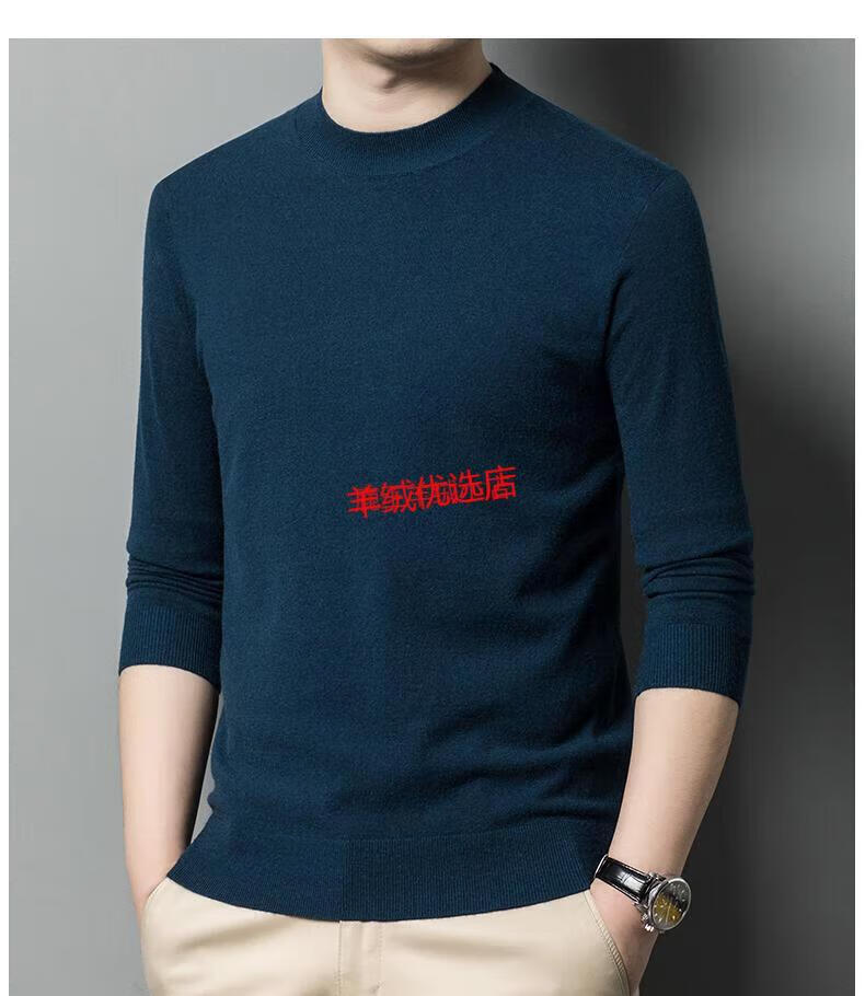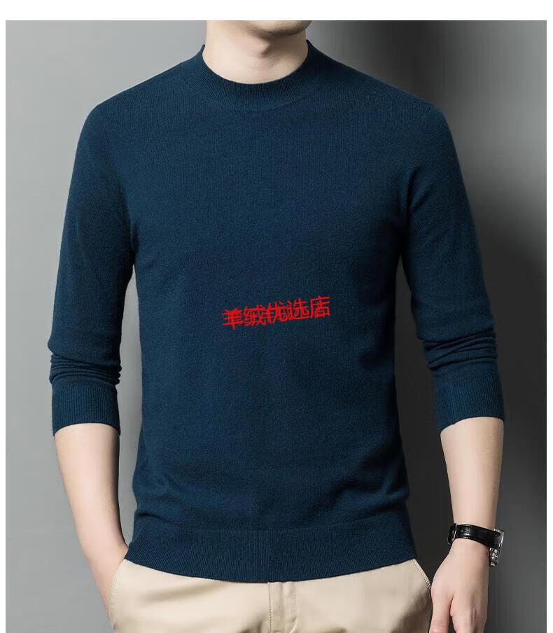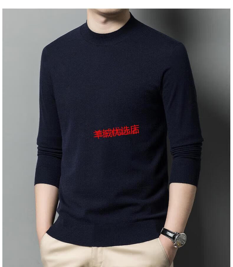 Deer King Optim cashmere sweater men's spring and autumn 2025 new men's half turtleneck plus fat plus size high-end worsted bottoming sweater dark blue S