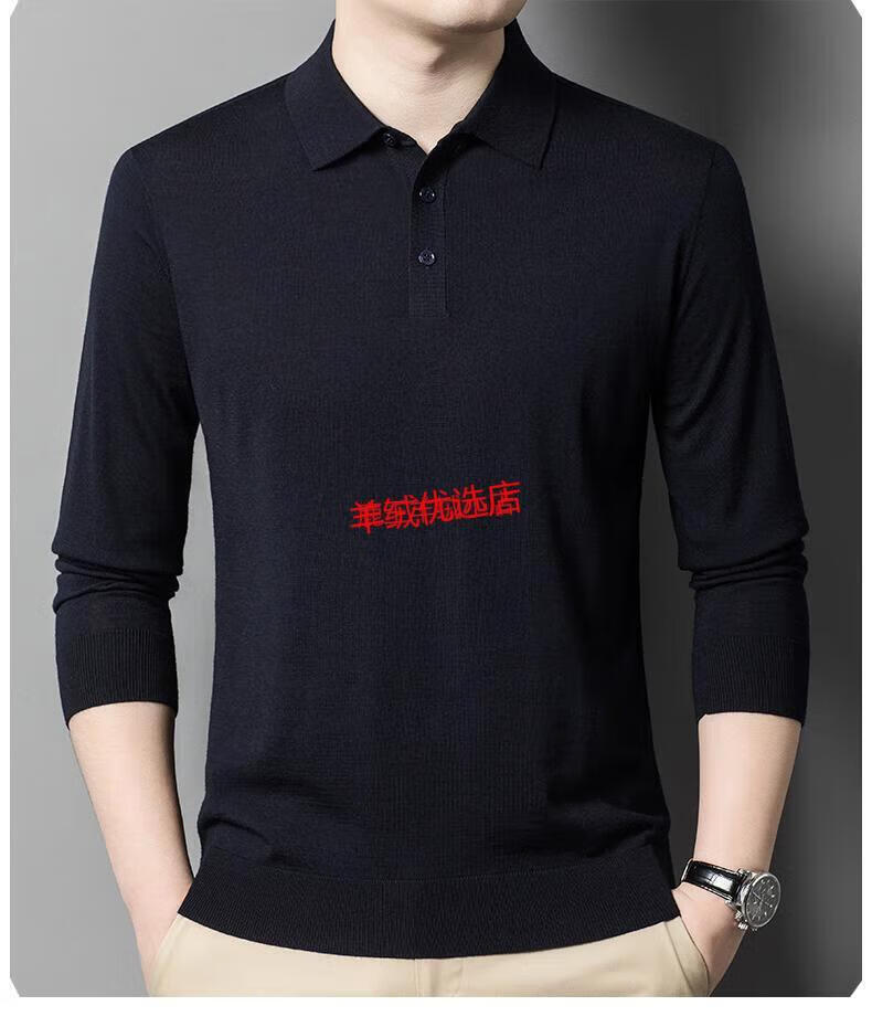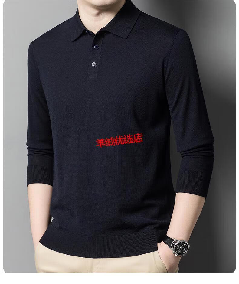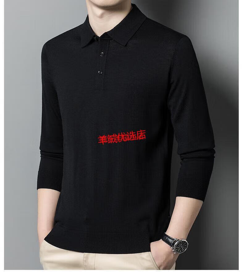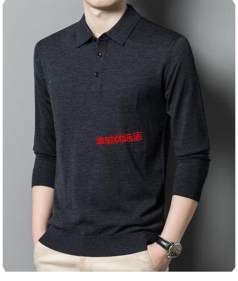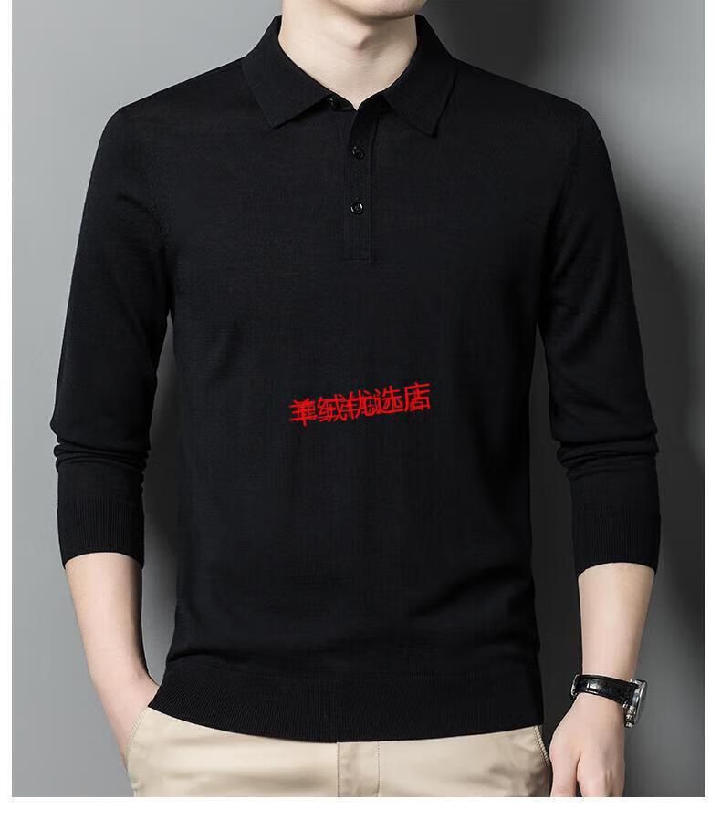 Deer King Optim high-end worsted cashmere sweater men's thin 100 pure cashmere long-sleeved lapel T-shirt middle-aged casual warm sweater black green thick M recommended 125Jin Jin equal to within 0.5 kg