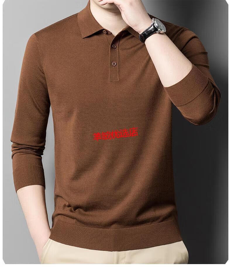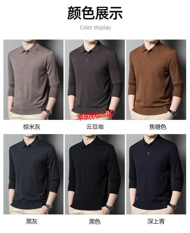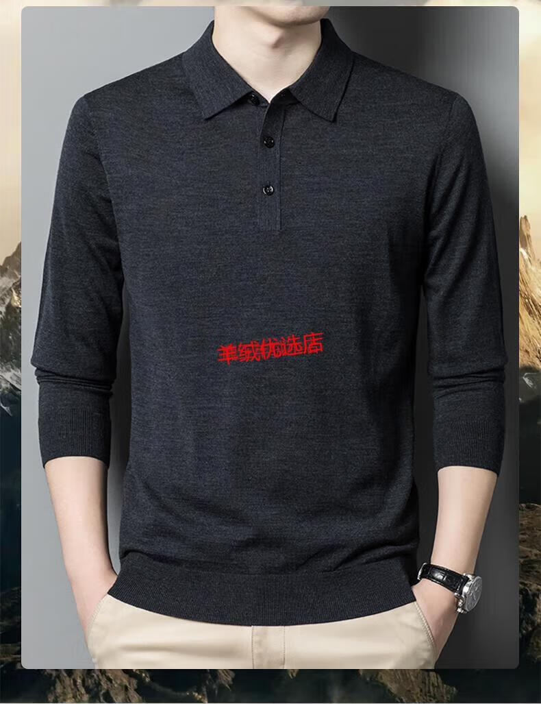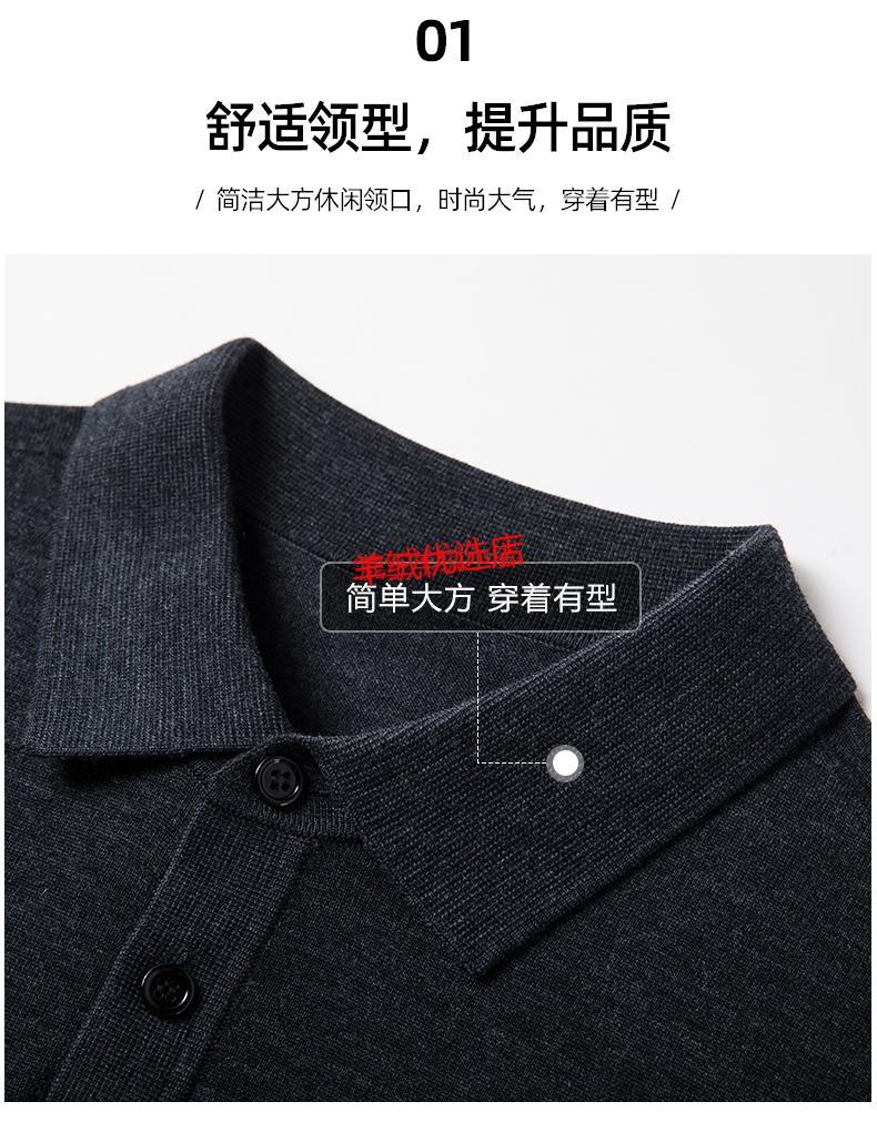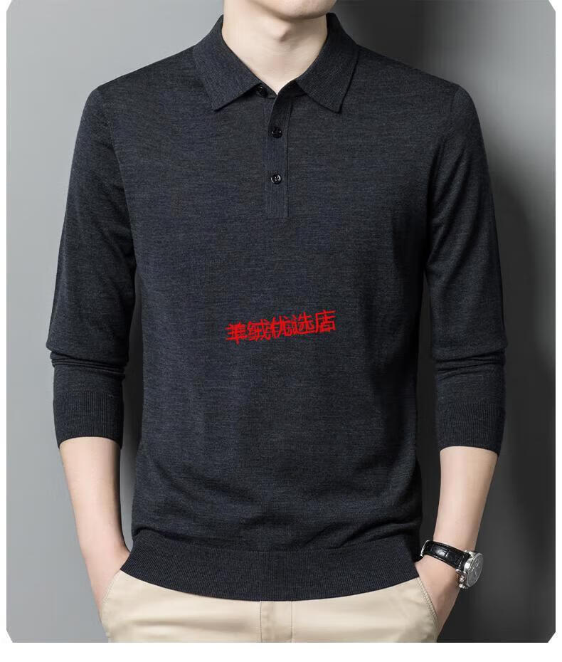 Deer King Optim high-end worsted cashmere sweater men's thin 100 pure cashmere long-sleeved lapel T-shirt middle-aged casual warm sweater black green thick M recommended 125Jin Jin equal to within 0.5 kg