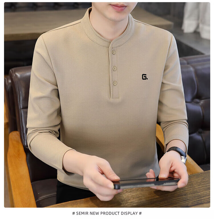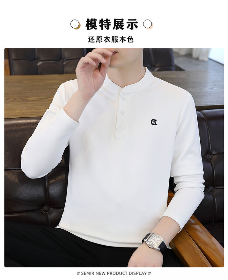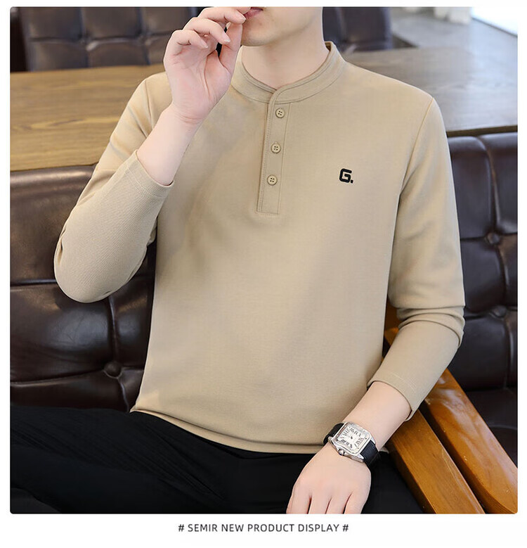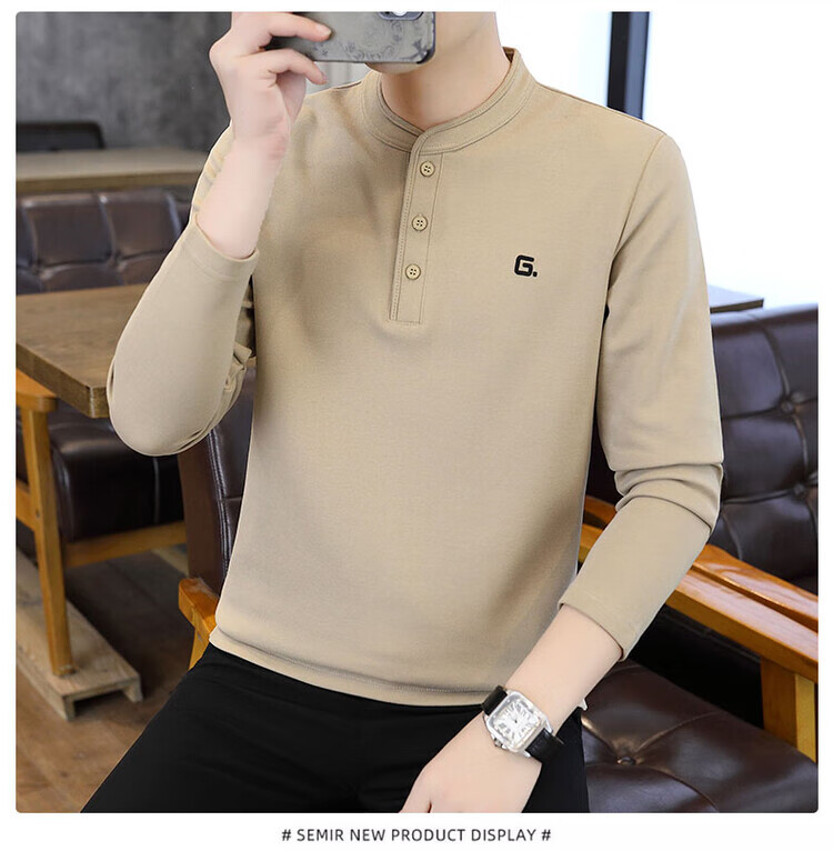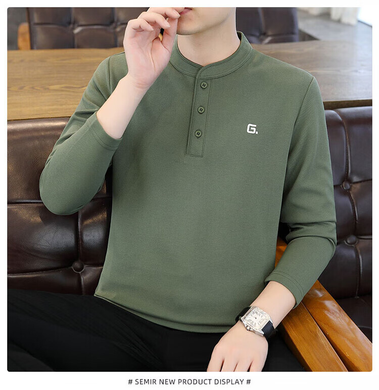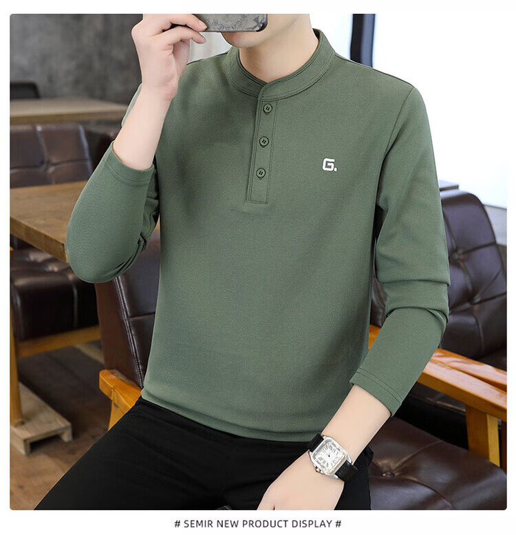 JEEP SPIRIT Jeep Henry collar long-sleeved t-shirt for men in spring, autumn and winter new inner layering shirt top early autumn plus velvet thick TX9328 plus velvet green M Recommended weight 95-110Jin Jin is equal to 0.5 kg