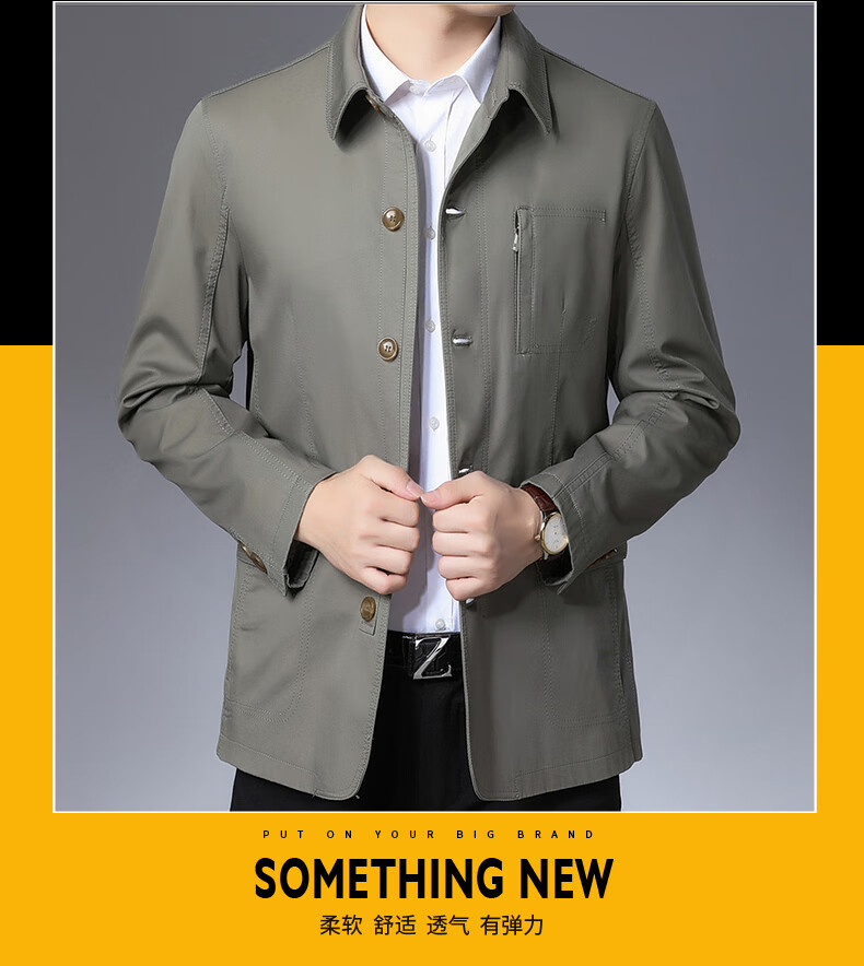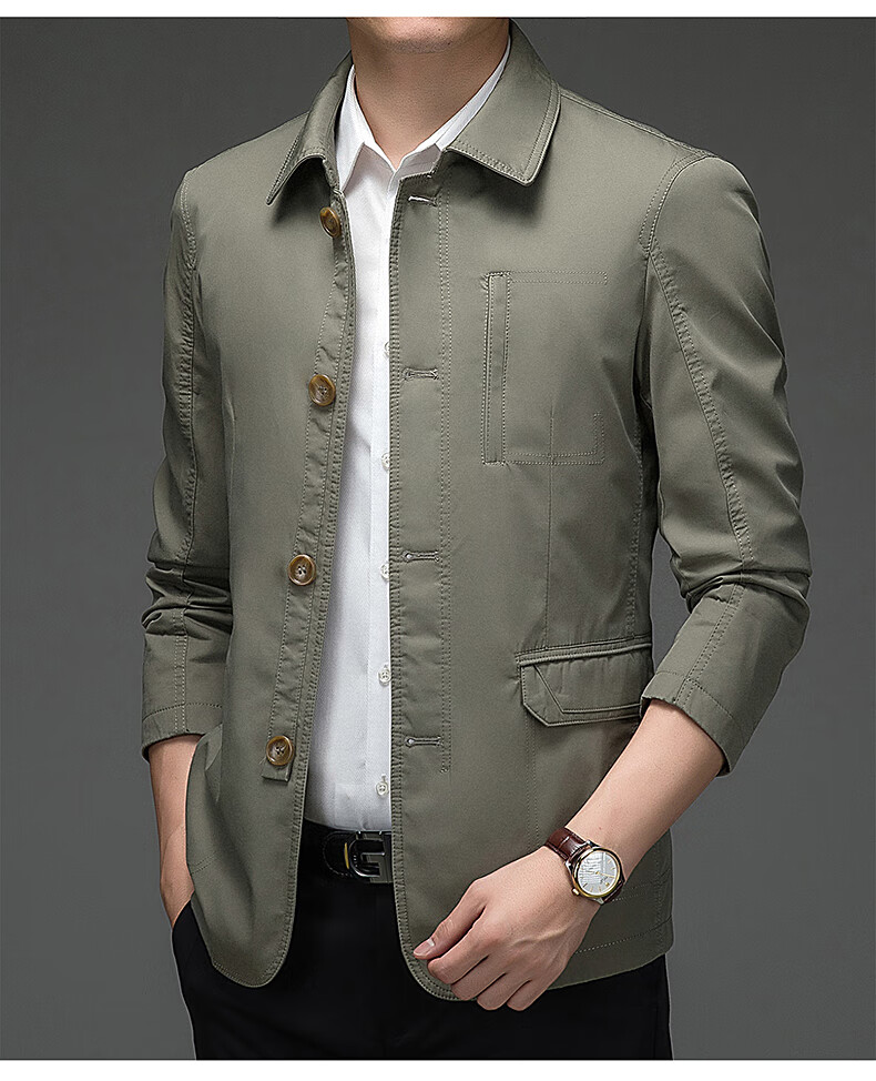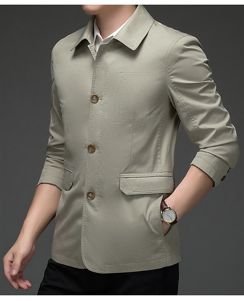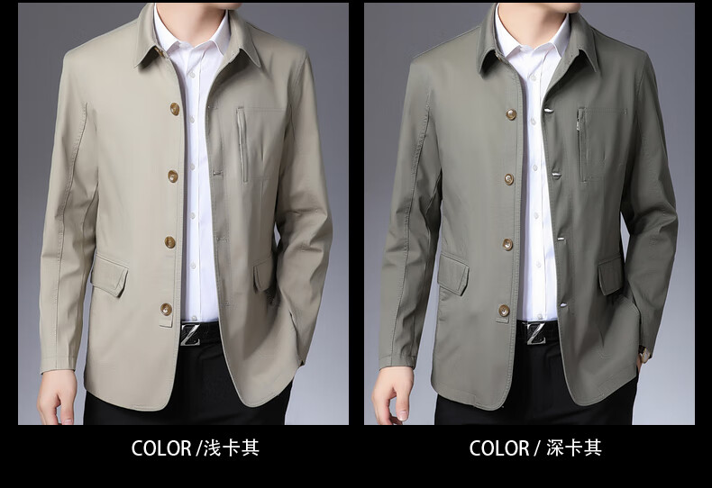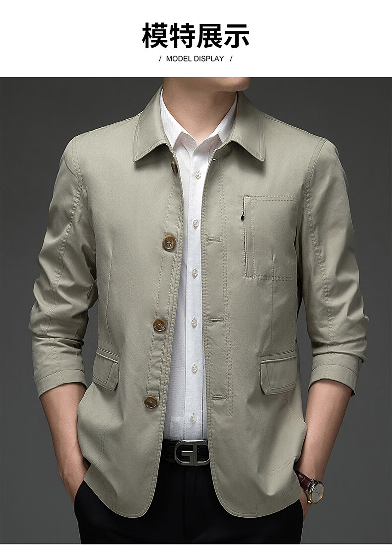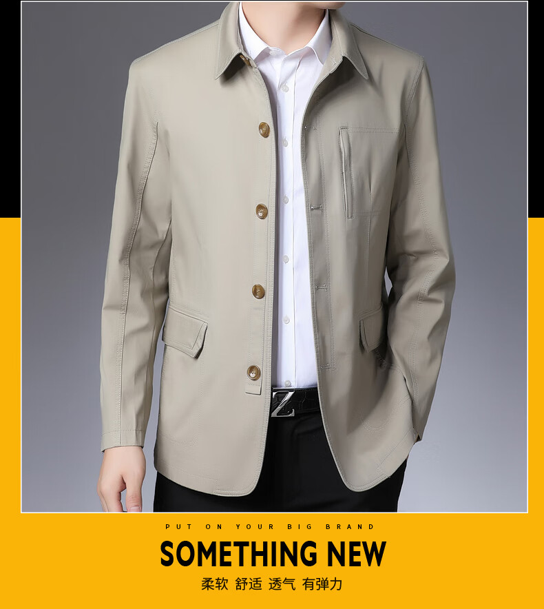 BESNOS spring and autumn pure cotton windbreaker men's short business casual middle-aged and elderly men's dad jacket thin jacket top light khaki M /170 (suitable for 110-135Jin Jin equals 0.5 kg)