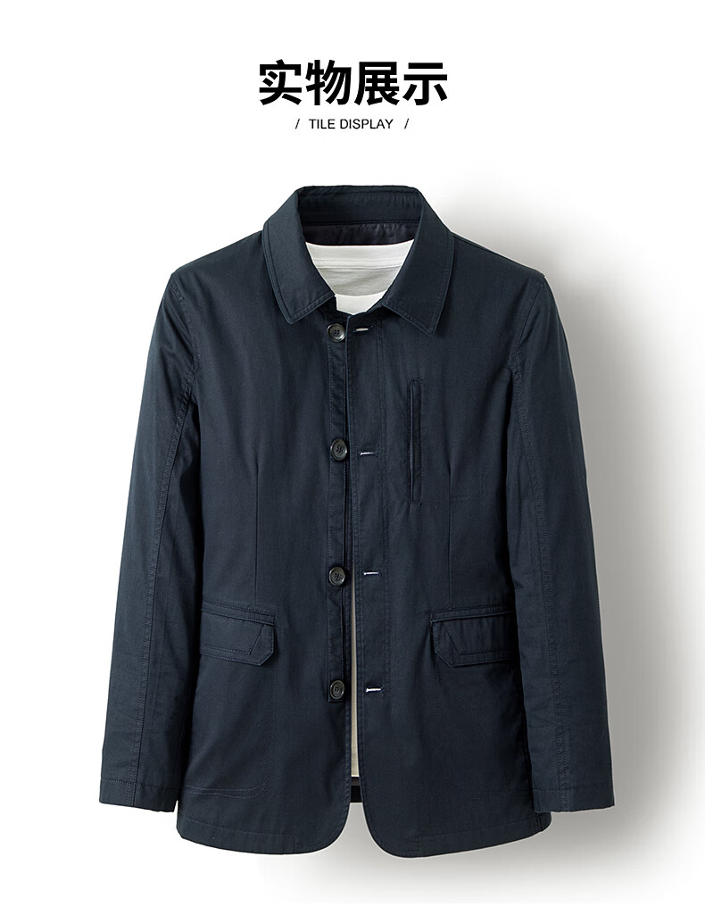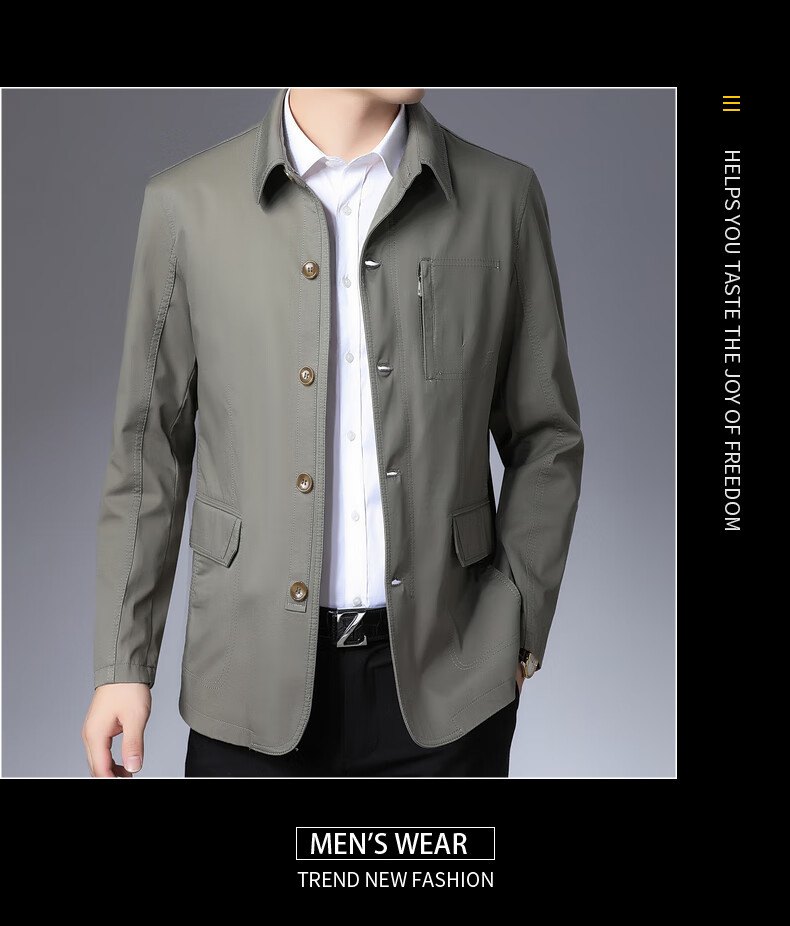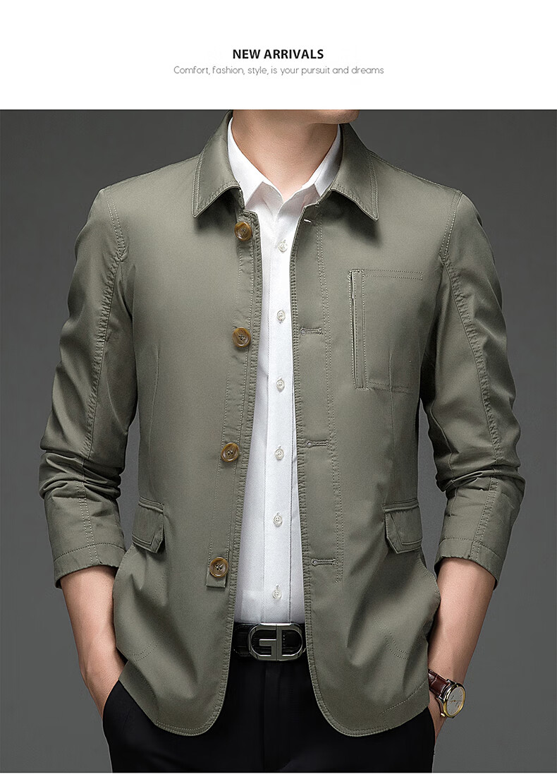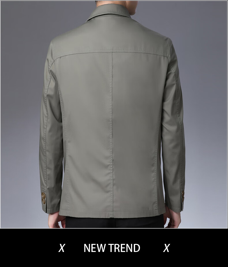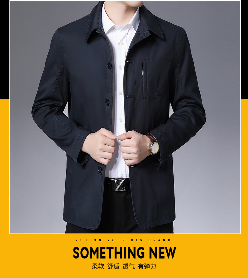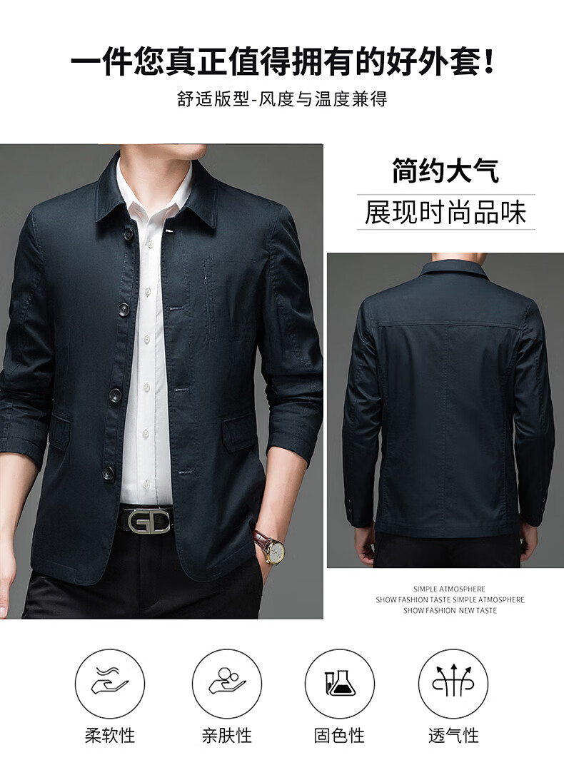 BESNOS spring and autumn pure cotton windbreaker men's short business casual middle-aged and elderly men's dad jacket thin jacket top light khaki M /170 (suitable for 110-135Jin Jin equals 0.5 kg)
