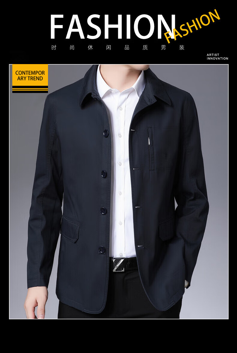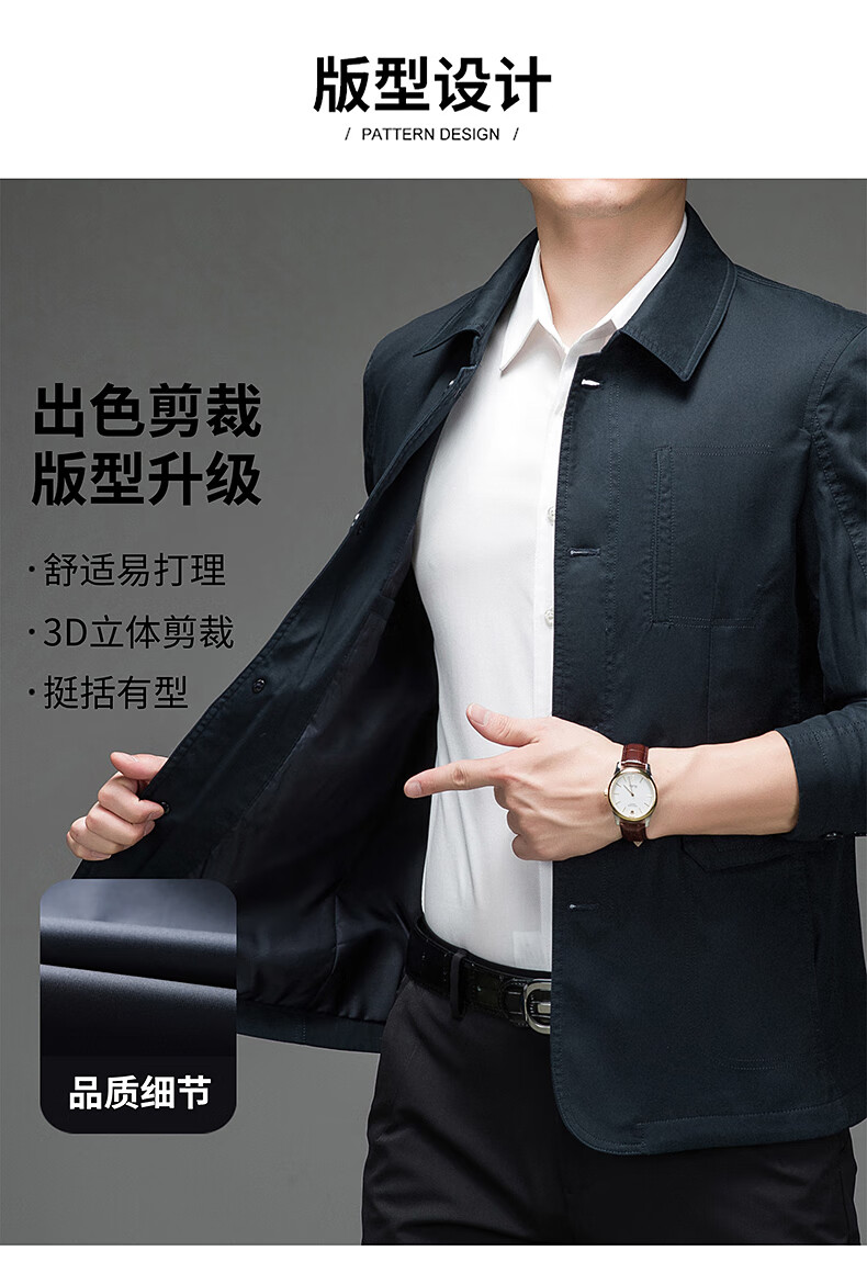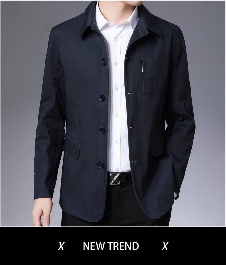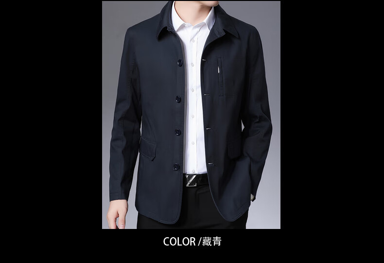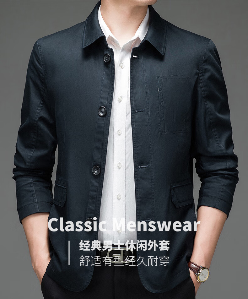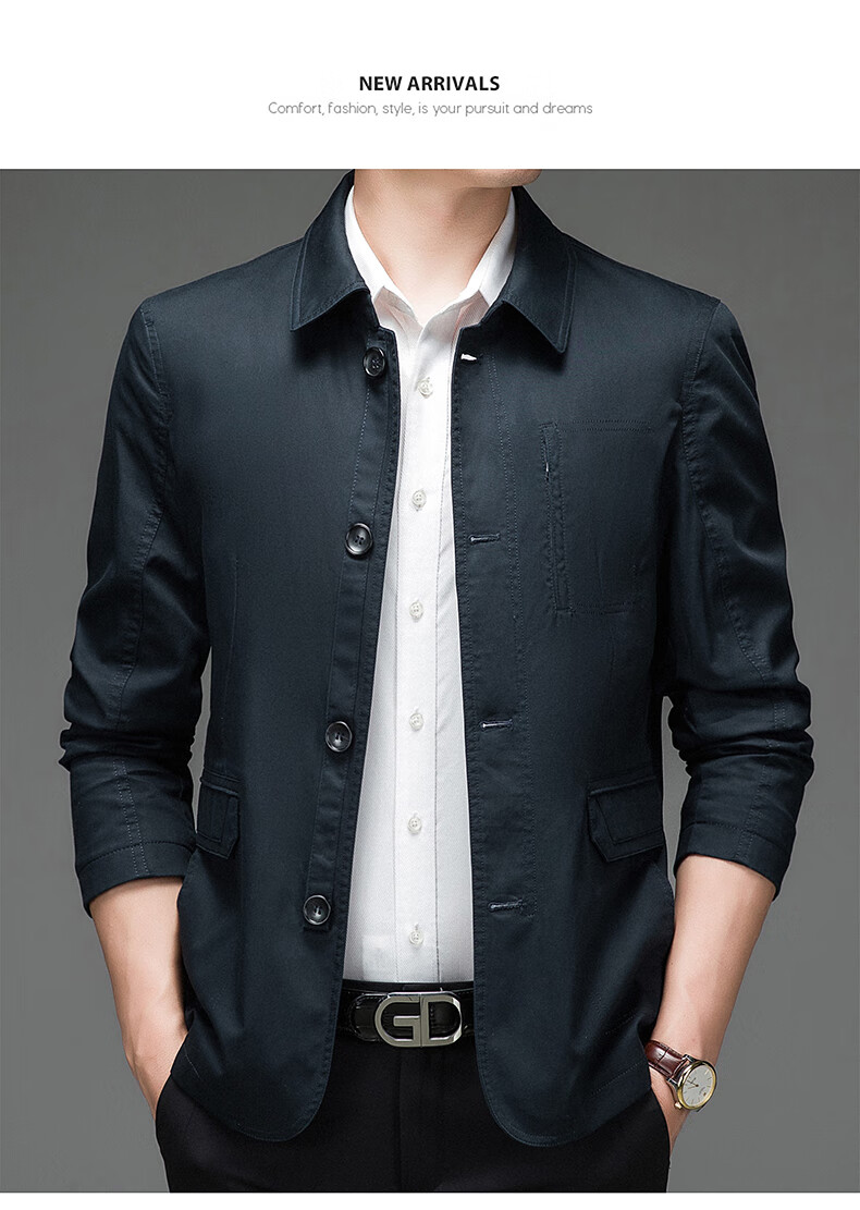 BESNOS spring and autumn pure cotton windbreaker men's short business casual middle-aged and elderly men's dad jacket thin jacket top light khaki M /170 (suitable for 110-135Jin Jin equals 0.5 kg)