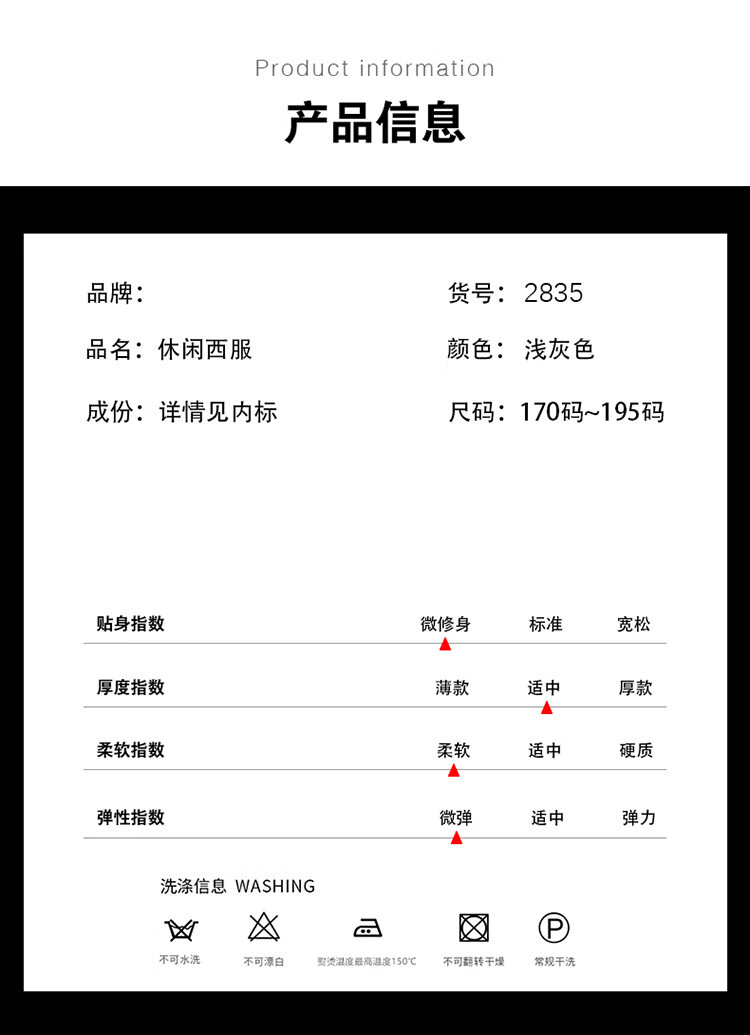 China (cm) 165 / 88-90 170 / 96-98 175 / 108-110 180 / 118-122 185 / 126-130