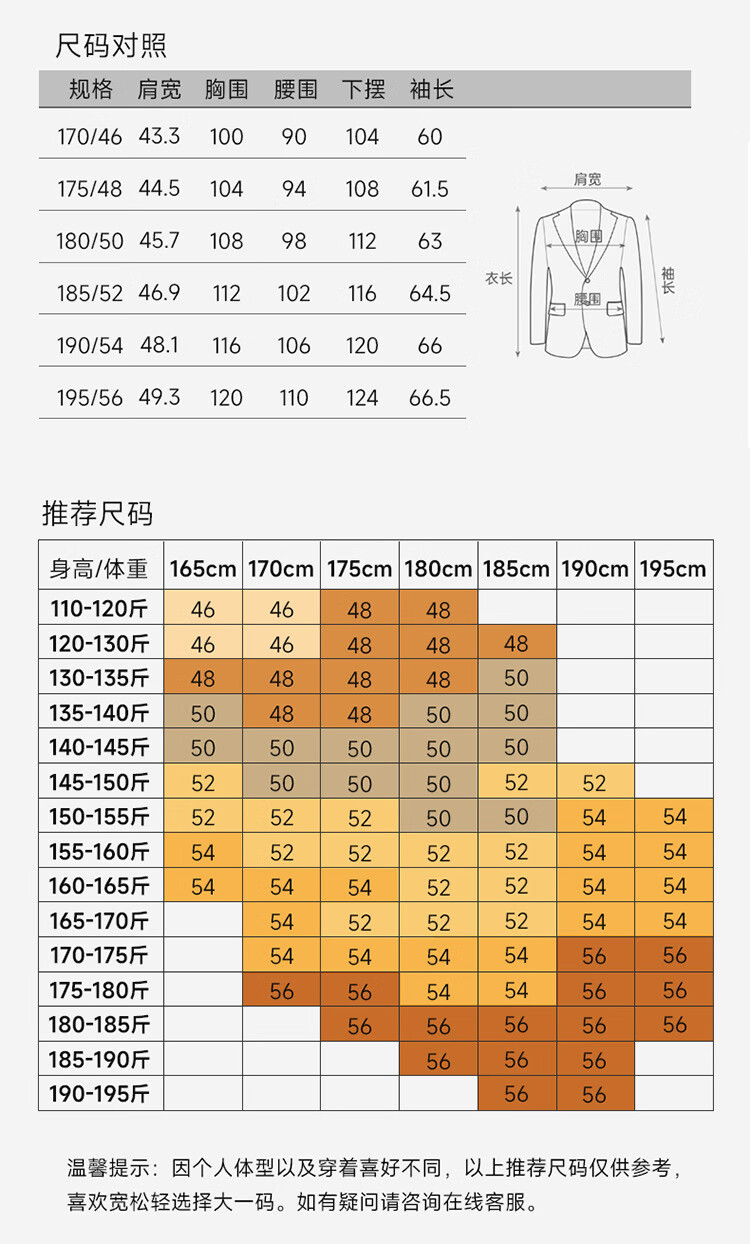 China (cm) 160-165/84-86 165-170 / 88-90 167-172 / 92-96 168-173 / 98-102 170-176 / 106-110
