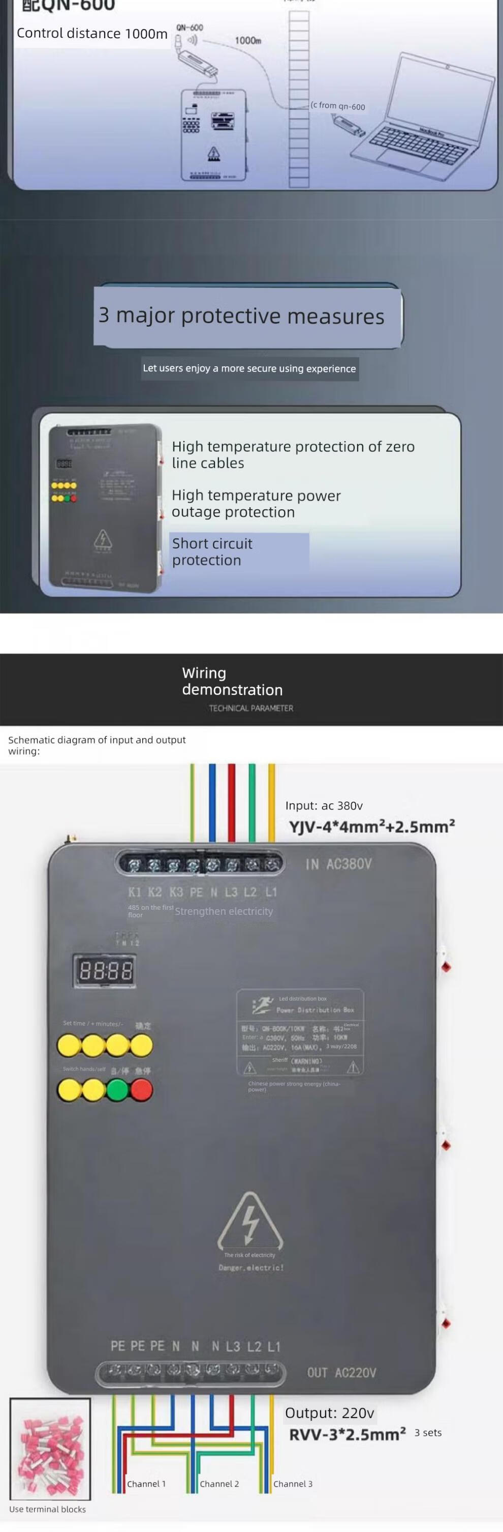 Indoor and outdoor Led full color display distribution box book and electricity box time control remote control central control 10Kw intelligent power distribution dark gray 10KW