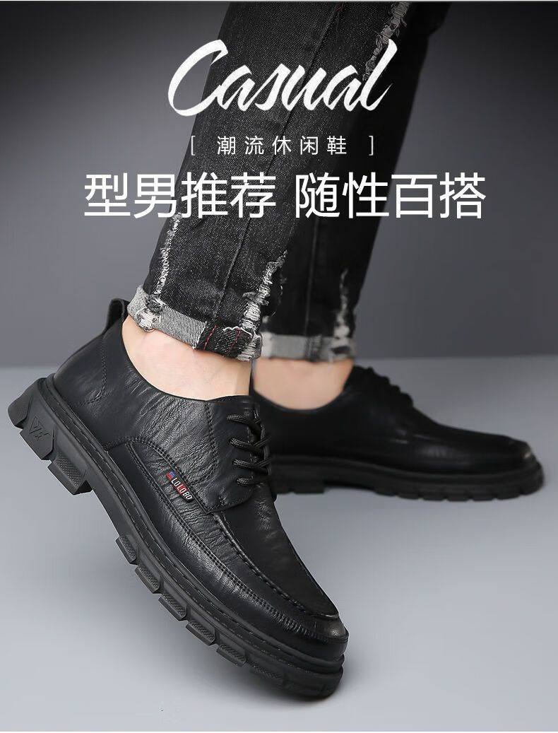 Woodpecker genuine leather men's shoes spring and autumn 2025 new casual business leather shoes trendy non-slip men's workwear casual board shoes 666 black Collection and purchase priority delivery 40
