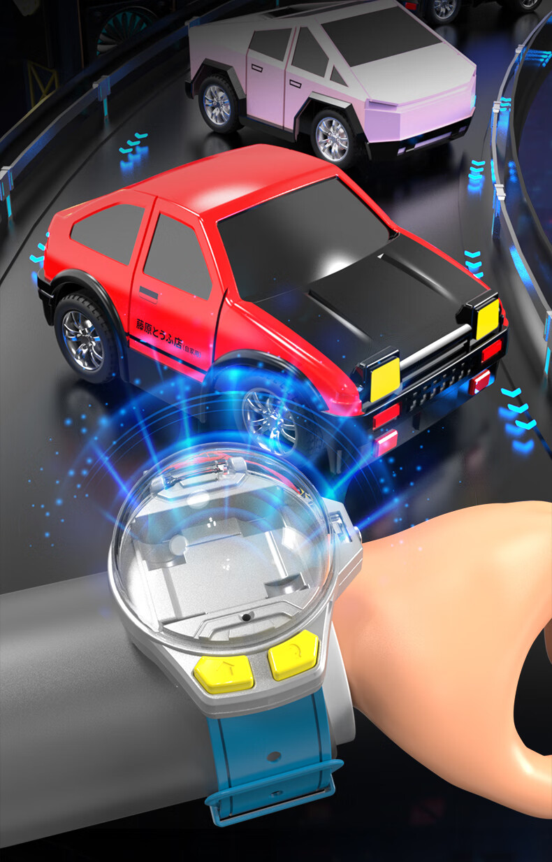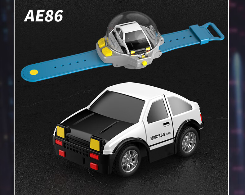 Shantou Lincun Watch Remote Control Mini Tesla Alloy Car AE86 Black Technology Charging Racing Car Toy for Boys and Children Tesla Watch Mini Remote Control Car + Charging Cable Color Box + Remote Control