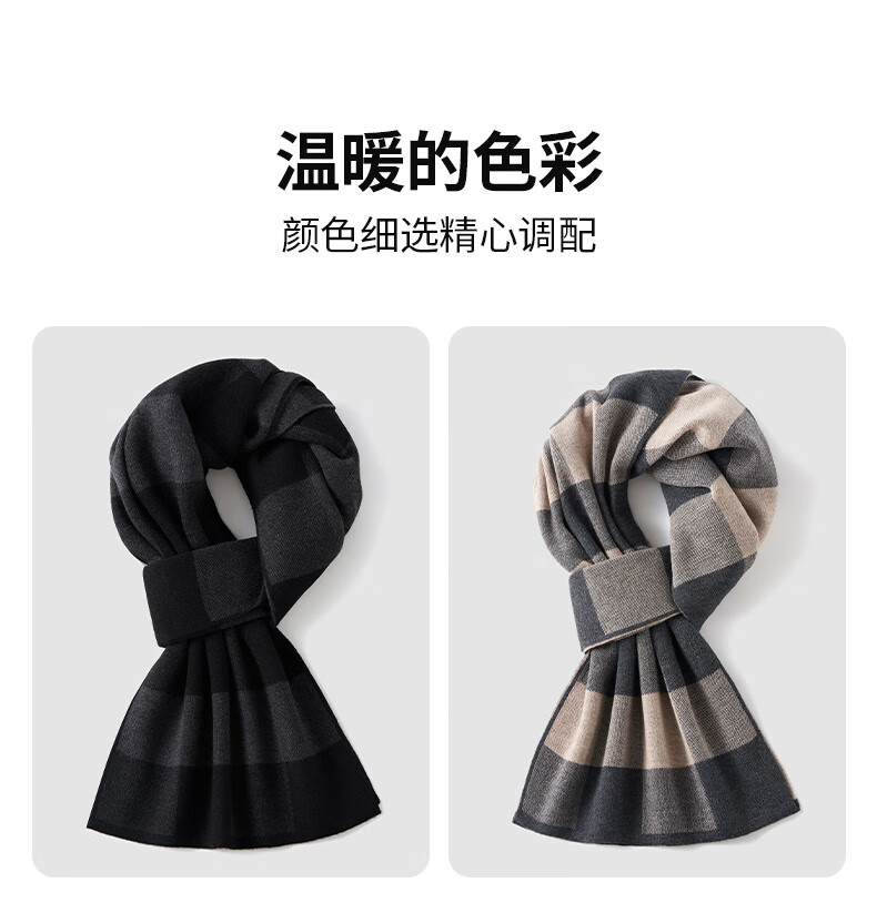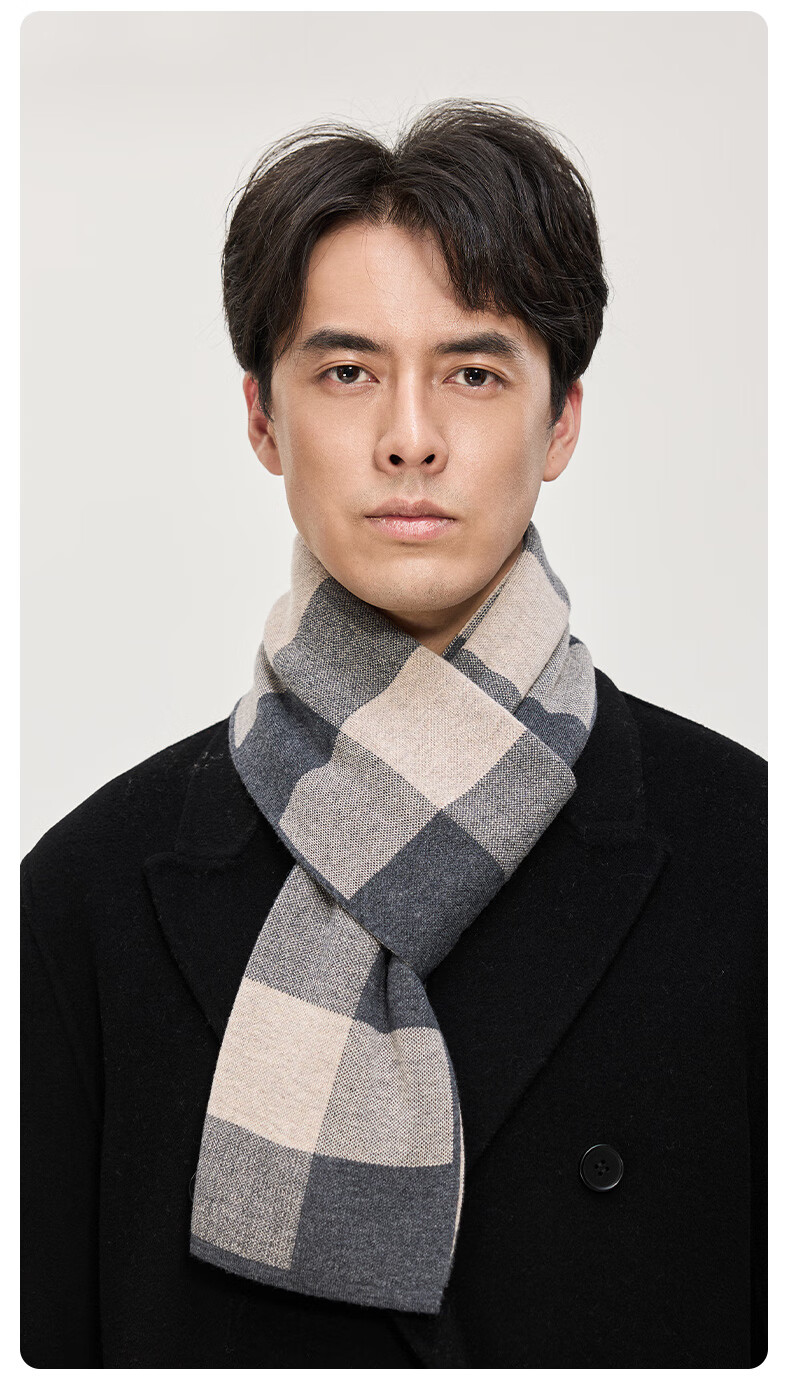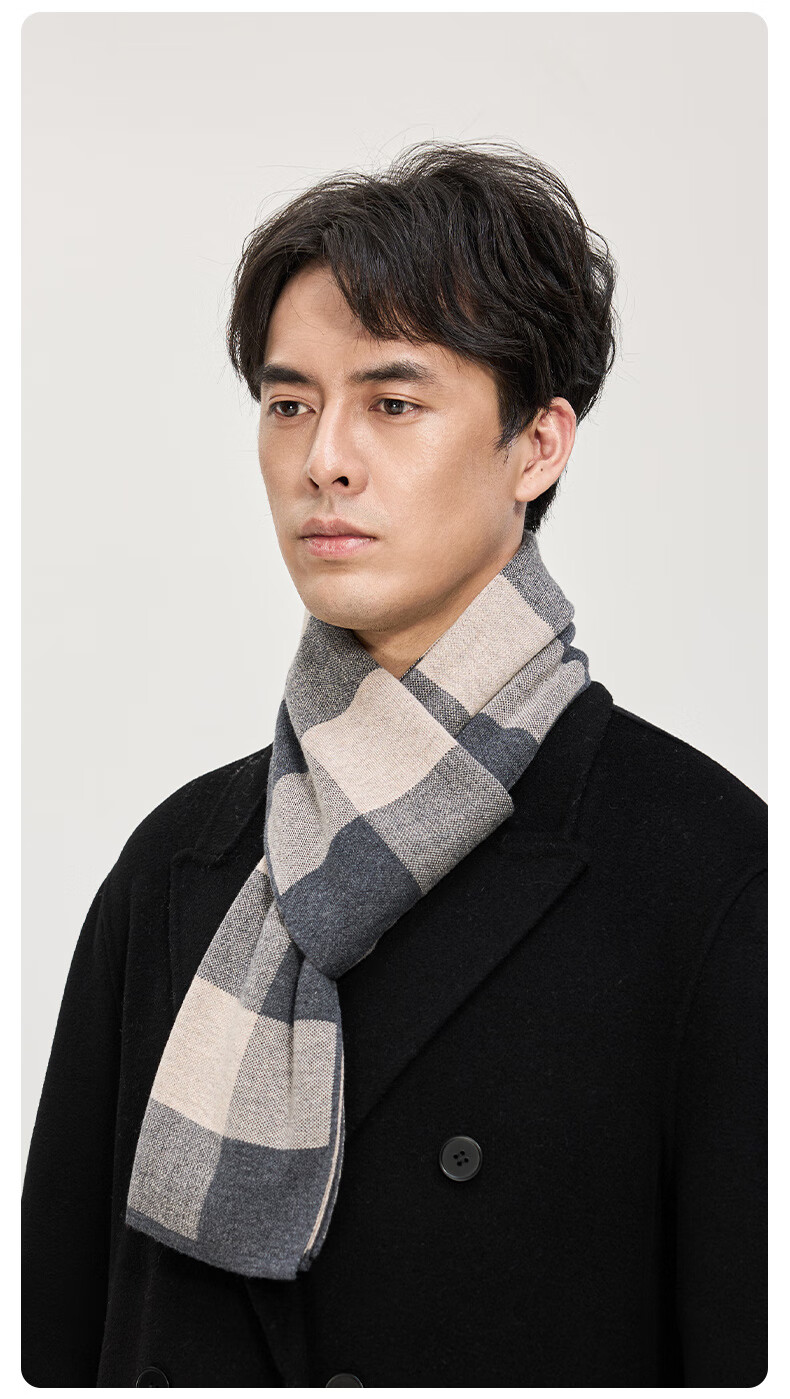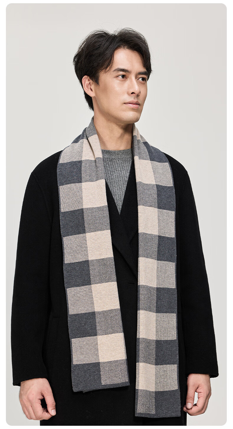 Hengyuanxiang wool scarf men's new winter striped plaid gray scarf exquisite gift box WJ005-218 gray camel