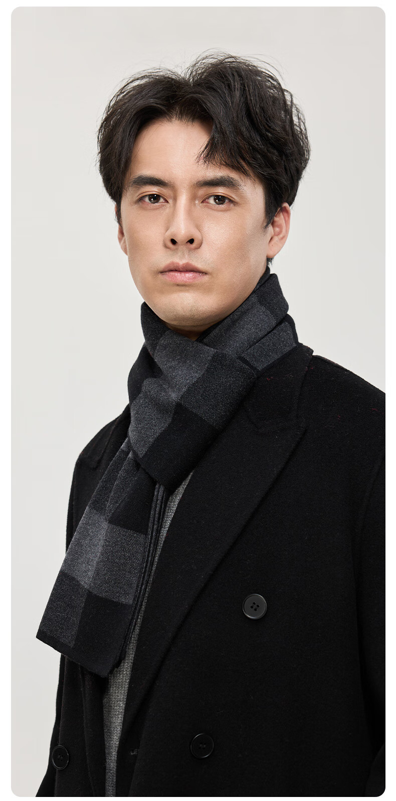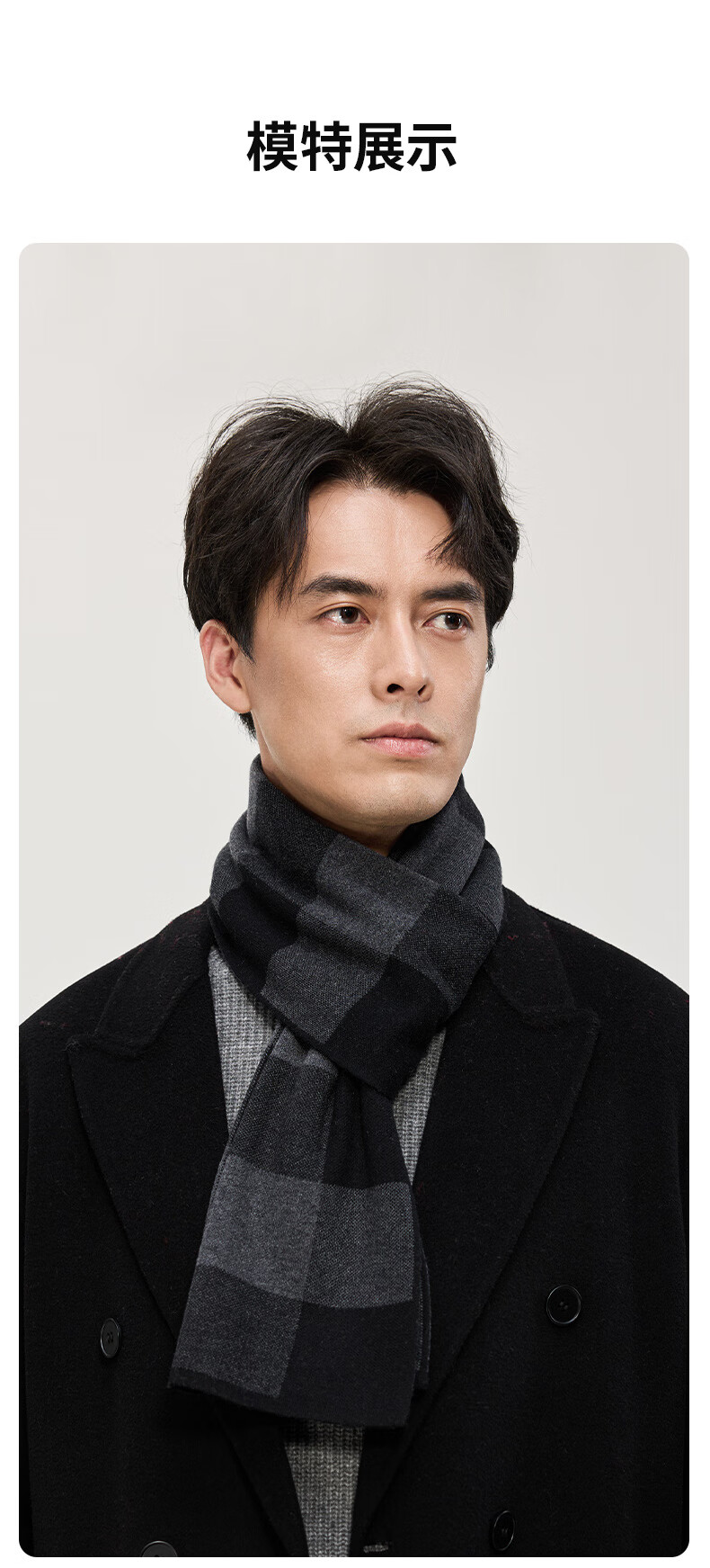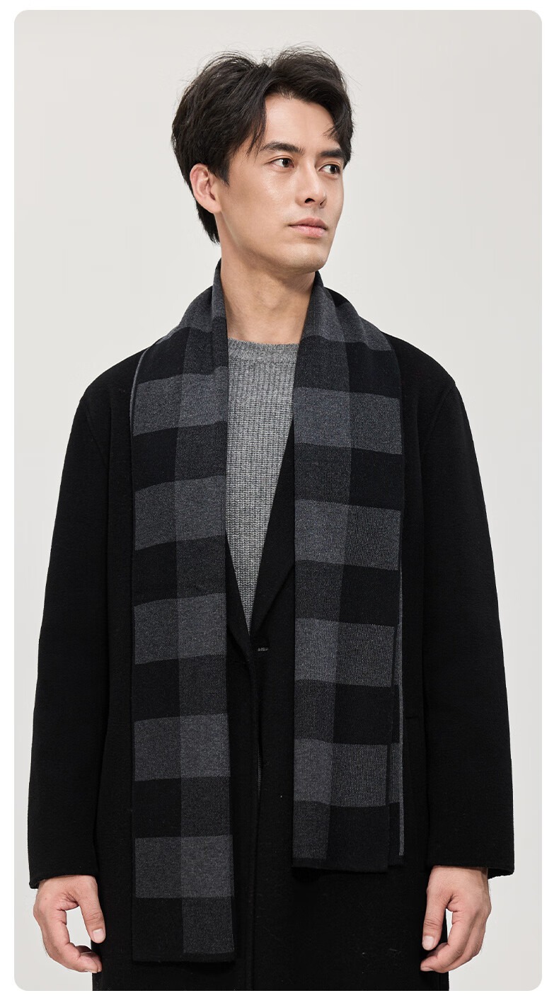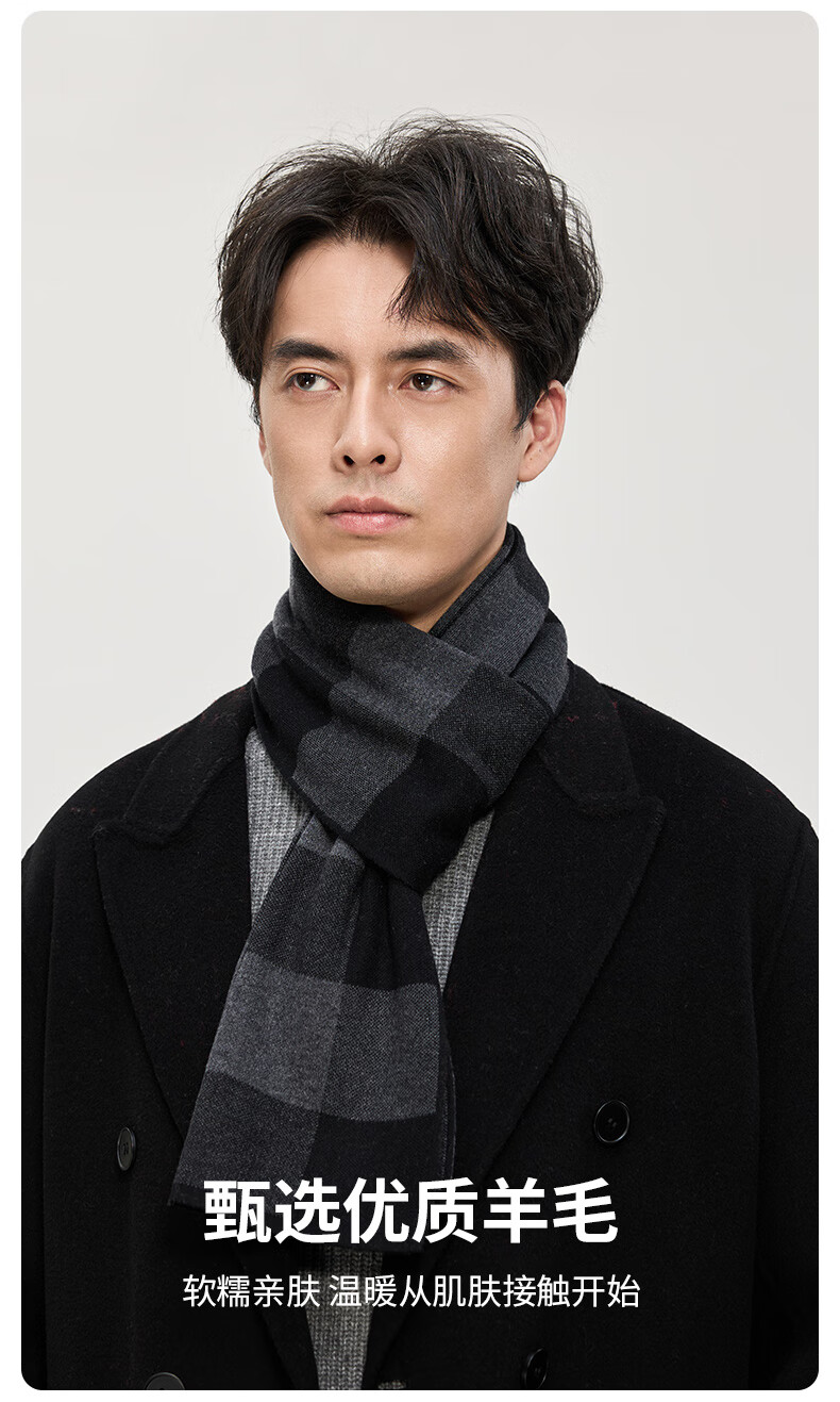 Hengyuanxiang wool scarf men's new winter striped plaid gray scarf exquisite gift box WJ005-218 gray camel