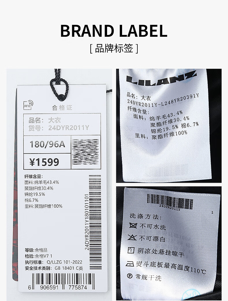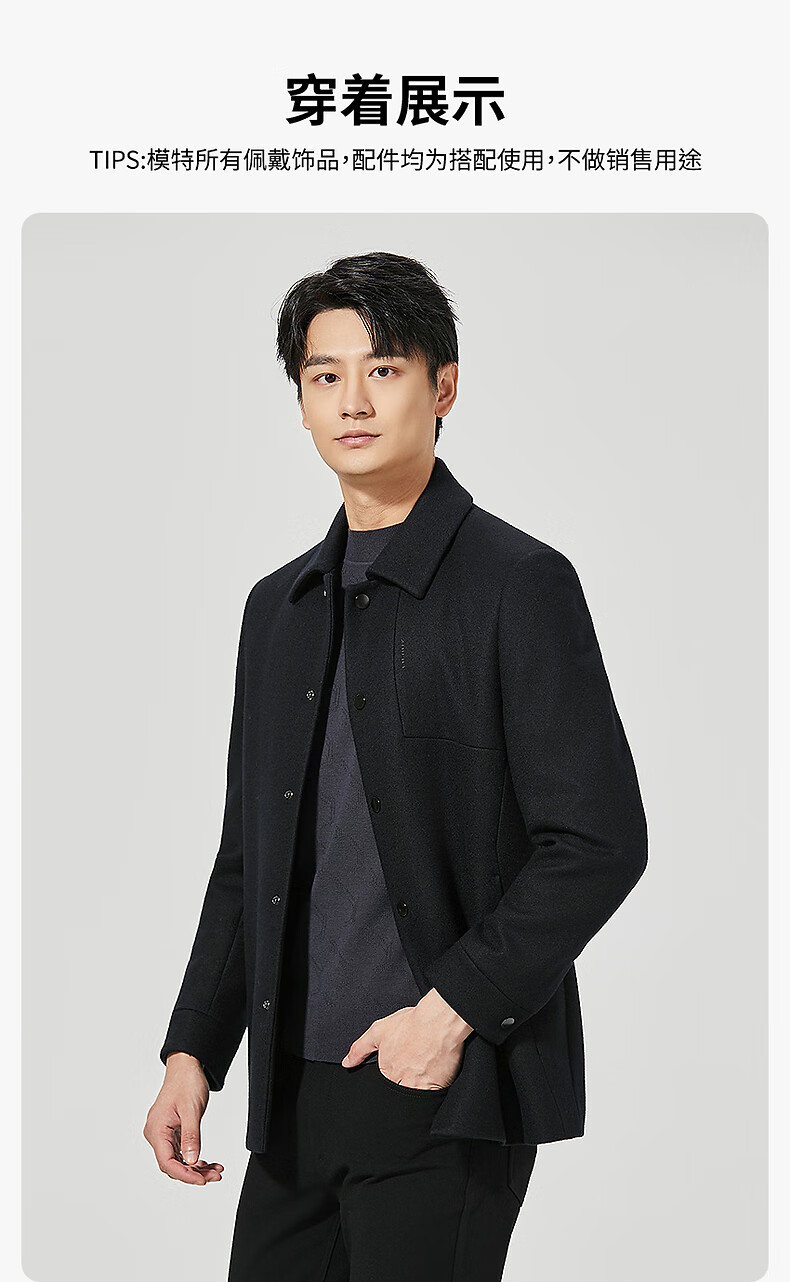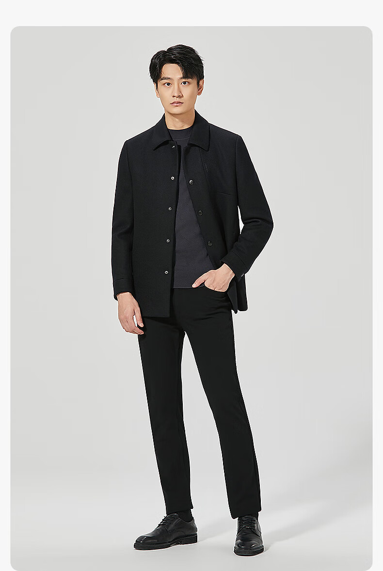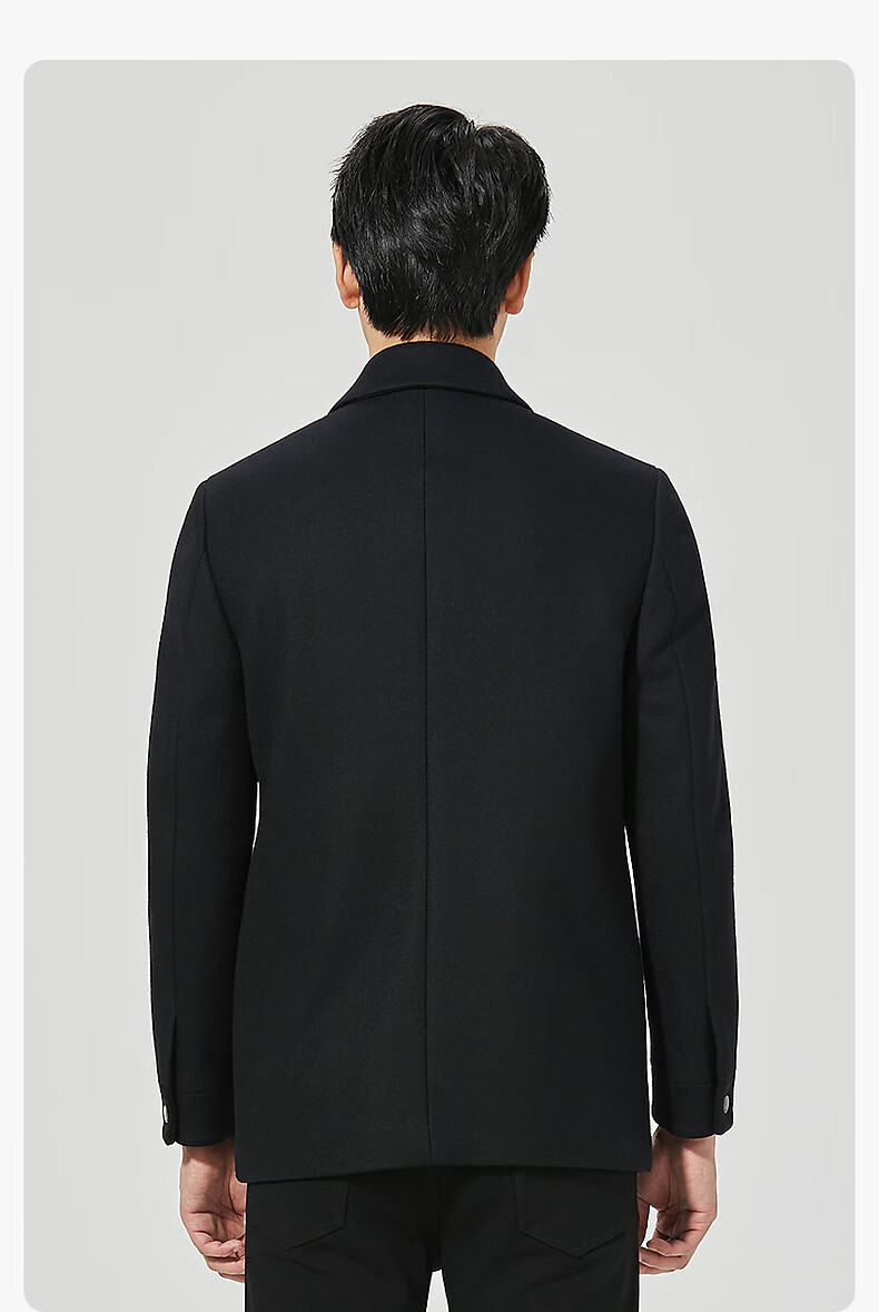 Lilan Men's Wool Coat Men's Medium Long Lapel Sheep Wool Coat Winter Warm Business Men's Coat Black (24DYR2011Y) XL 175/92A