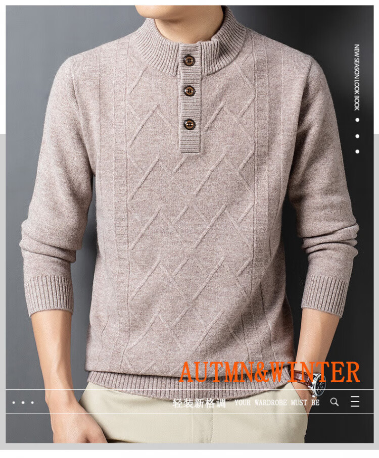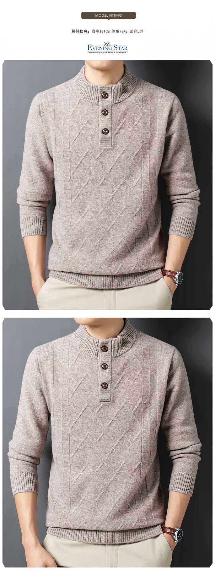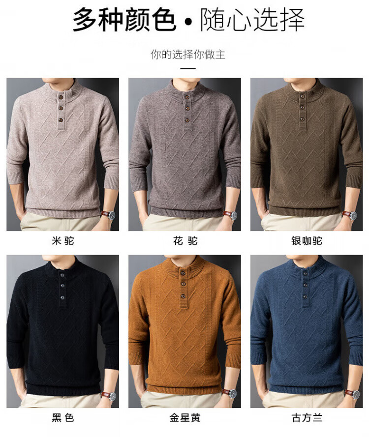 OLJ high-end luxury brand sweater for men 2025 new autumn and winter pure wool half turtleneck knitted men's long-sleeved wool rice camel (high-end gift box) 2XL 125