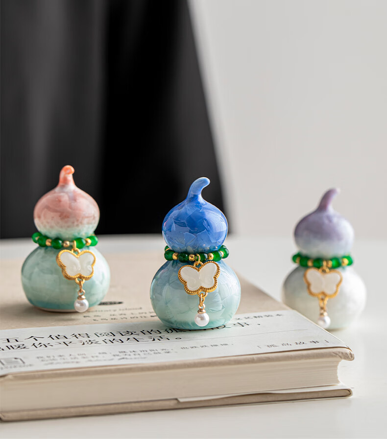Shangfu Crystal Glaze Ceramic Colorful Gourd Tea Pet Ornaments Home Decorations Creative Personalized Tea Ceremony Accessories Decoration TBSF Crystal Glaze Gradient Small Gourd-Sapphire Blue No Specifications