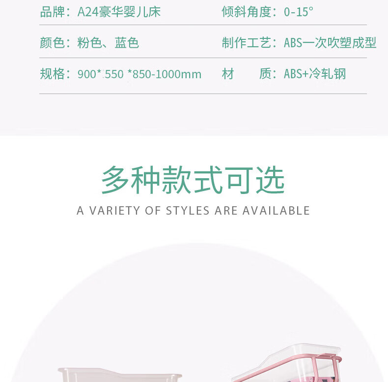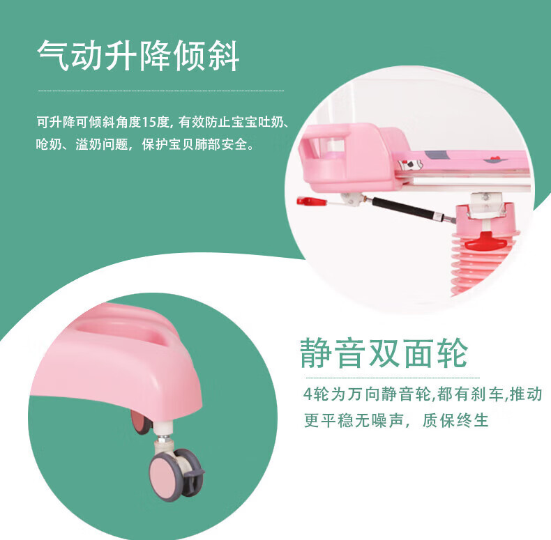 Confinement center stroller can be tilted up and down, medical mute multi-functional ABS crib for newborns, ABS can be lifted up, down and tilted (blue) fully equipped
