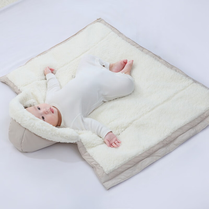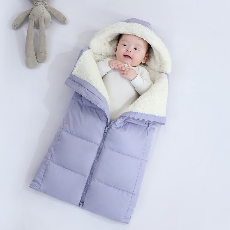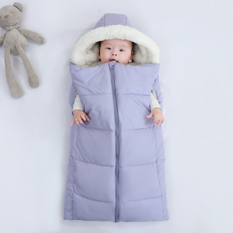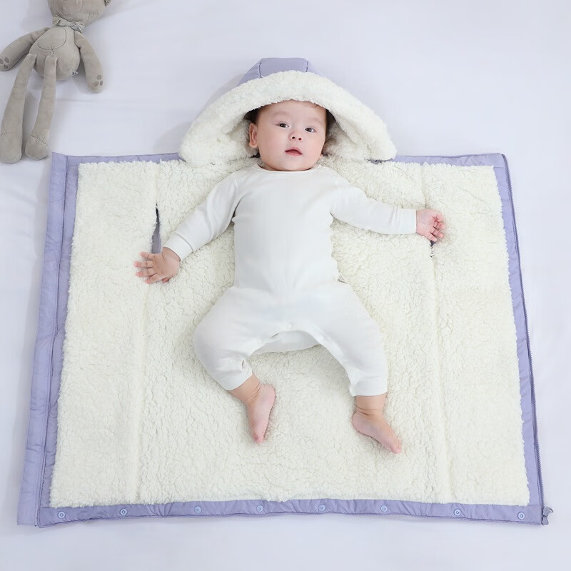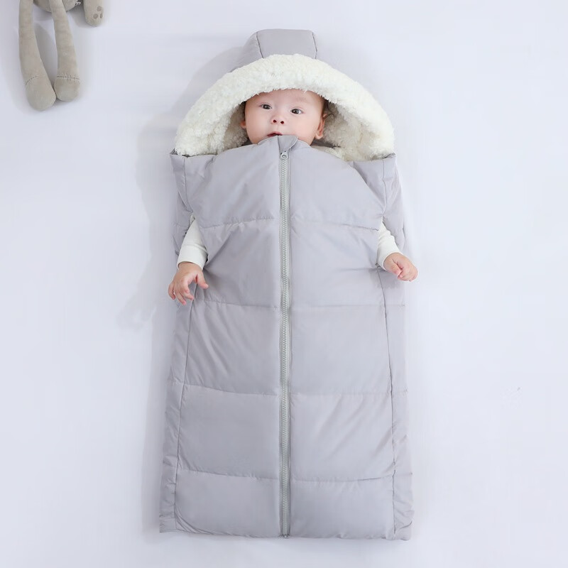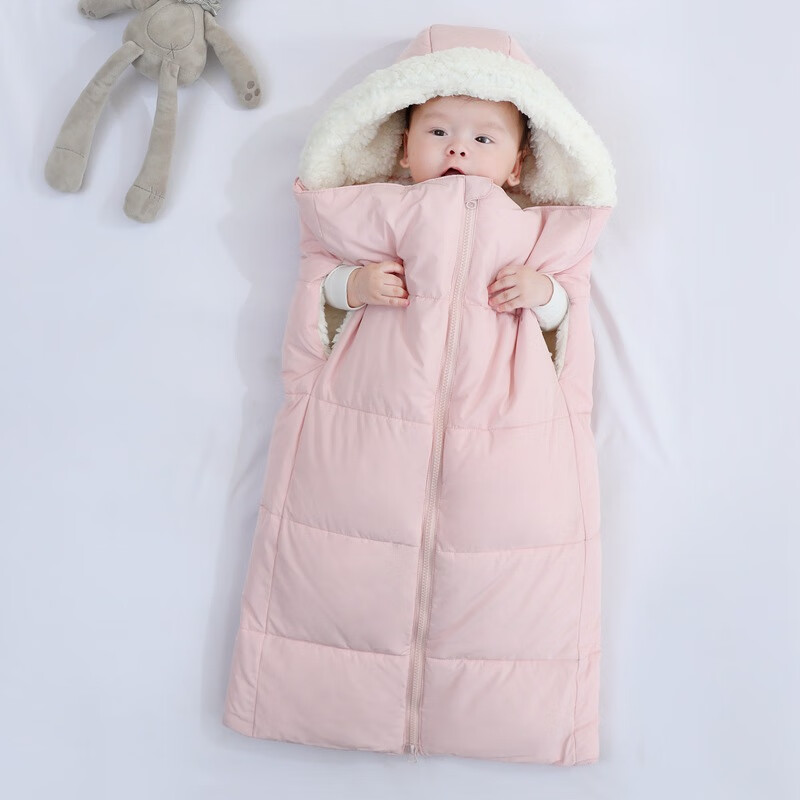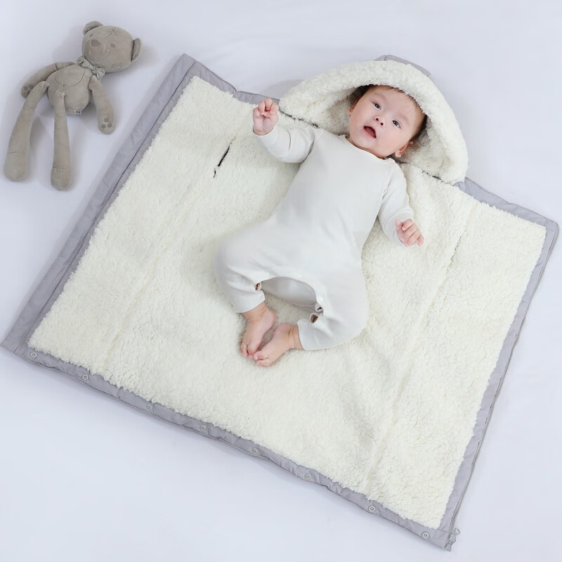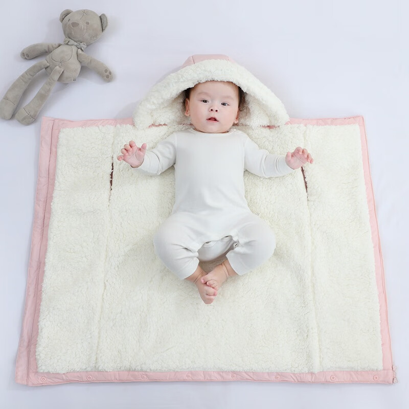 Baby sleeping bag, baby autumn and winter warm and thickened quilt, hooded newborn blanket, multi-purpose blanket, anti-kick quilt, HY cotton-filled thickened sleeping bag, beige, about 0-1 years old, expand 70x90cm