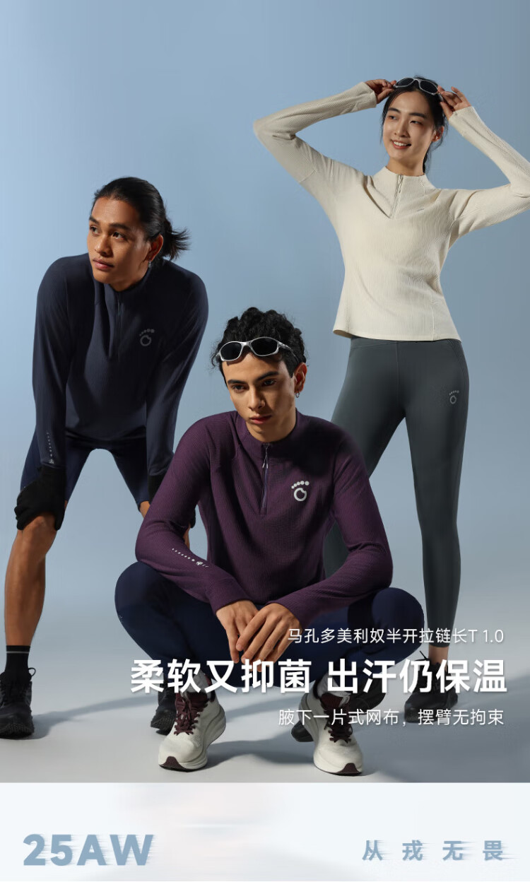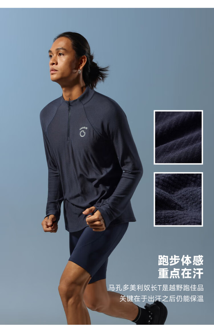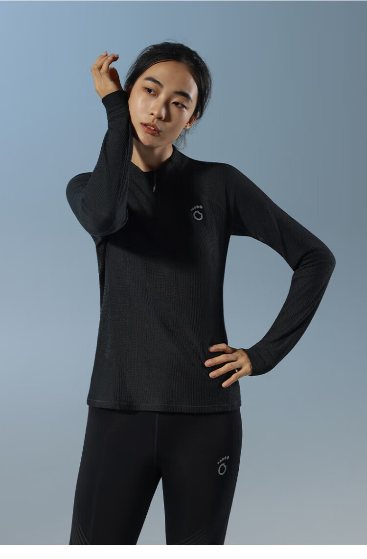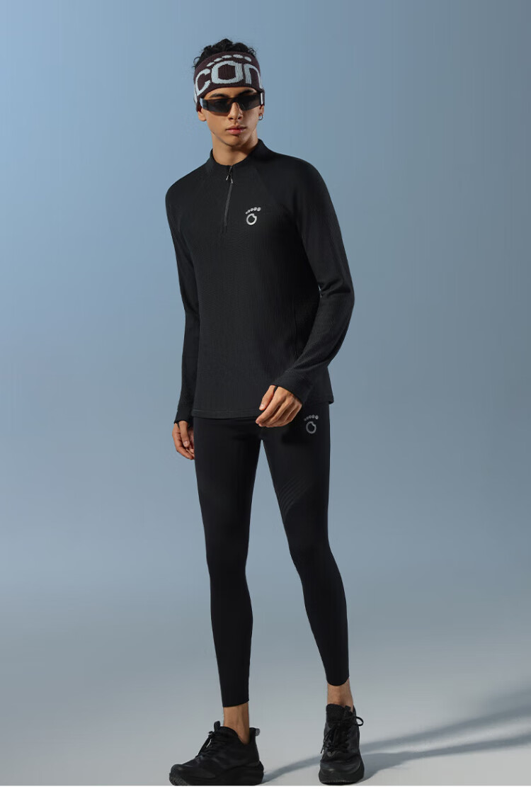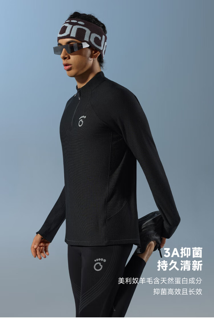 Macondo (macondo) Coach Liu's same style Merino wool half-zip long T thermal insulation after running sweat 3A antibacterial one-piece male black XL