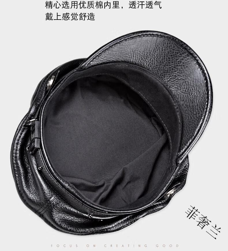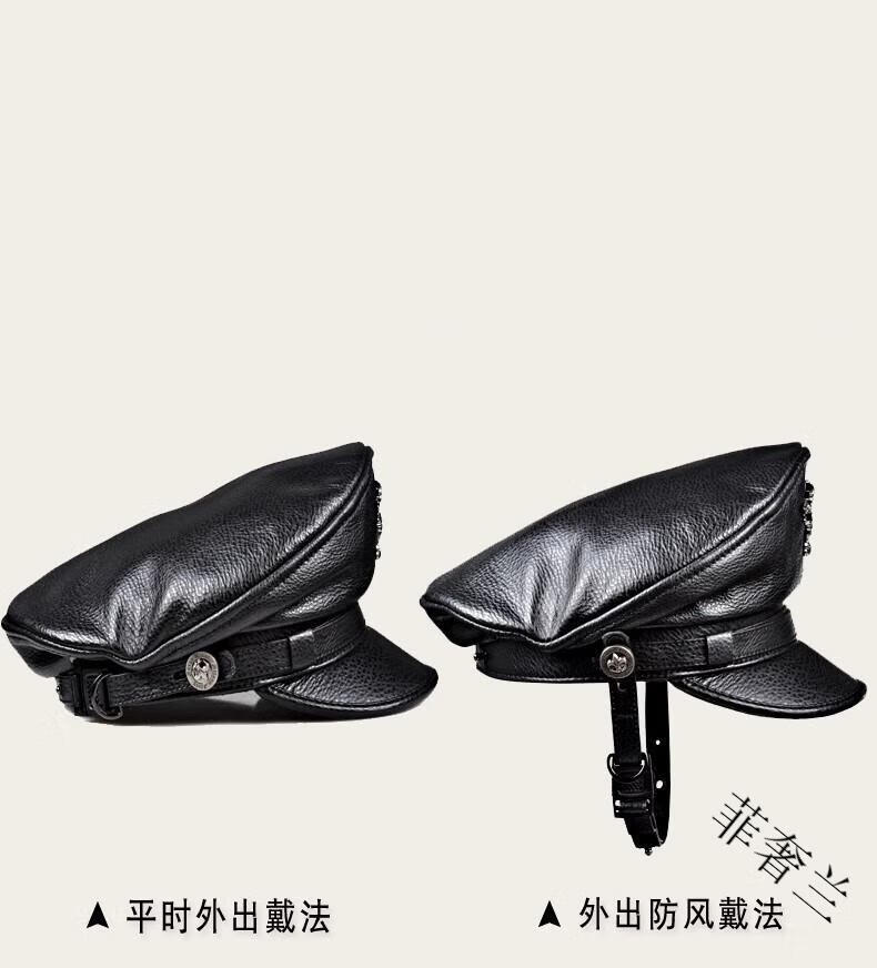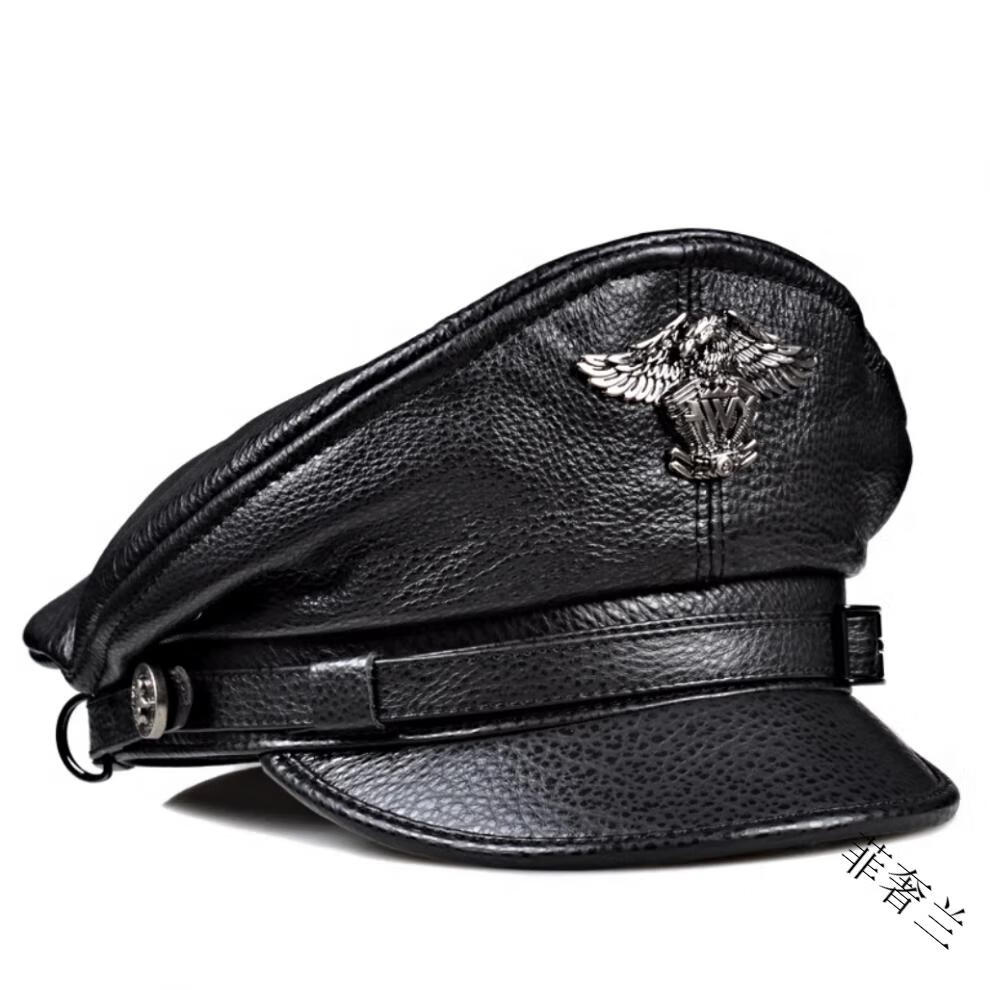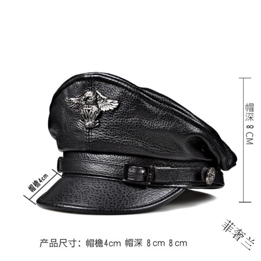 Feshelan genuine leather top hat men's autumn and winter retro cowhide flat top hat British Harley young and old motorcycle hat captain hat black 57-58cm