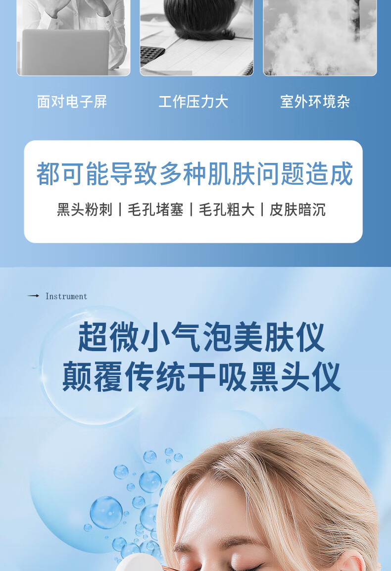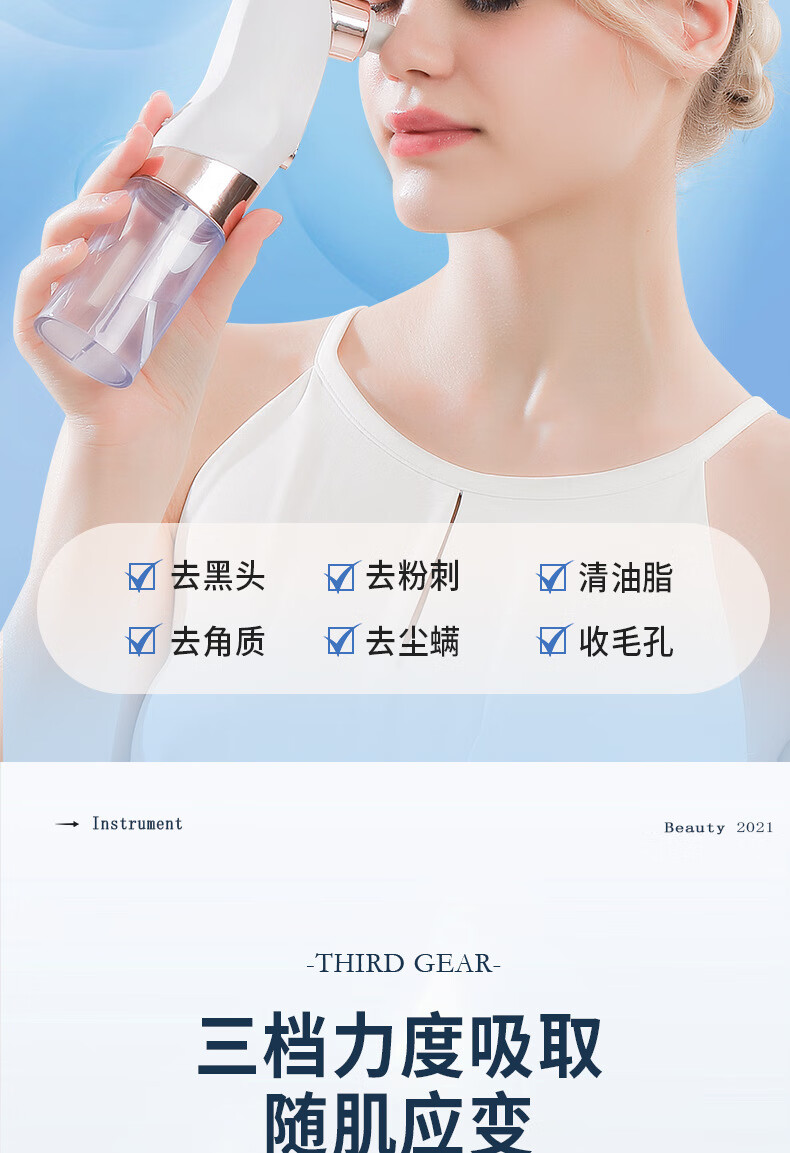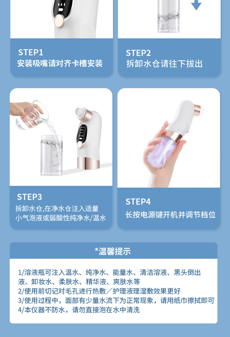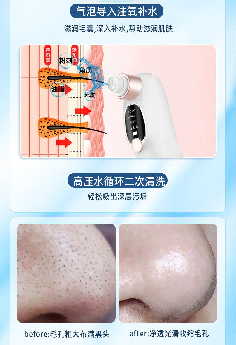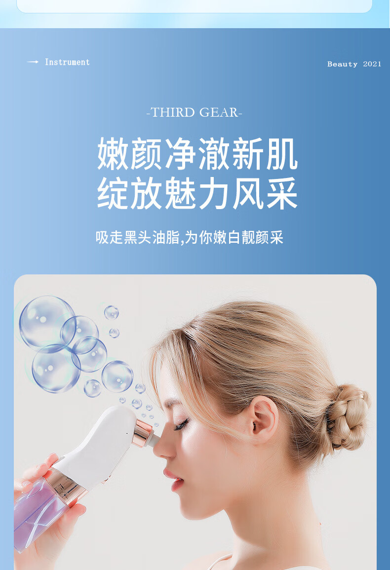 GERTHRON Germany blackhead suction instrument beauty salon special small bubble household large suction electric cleaner pore cleaning and hydration facial blackhead cleaning and acne artifact upgrade rechargeable model 6 suction heads + LED display + sparkling water