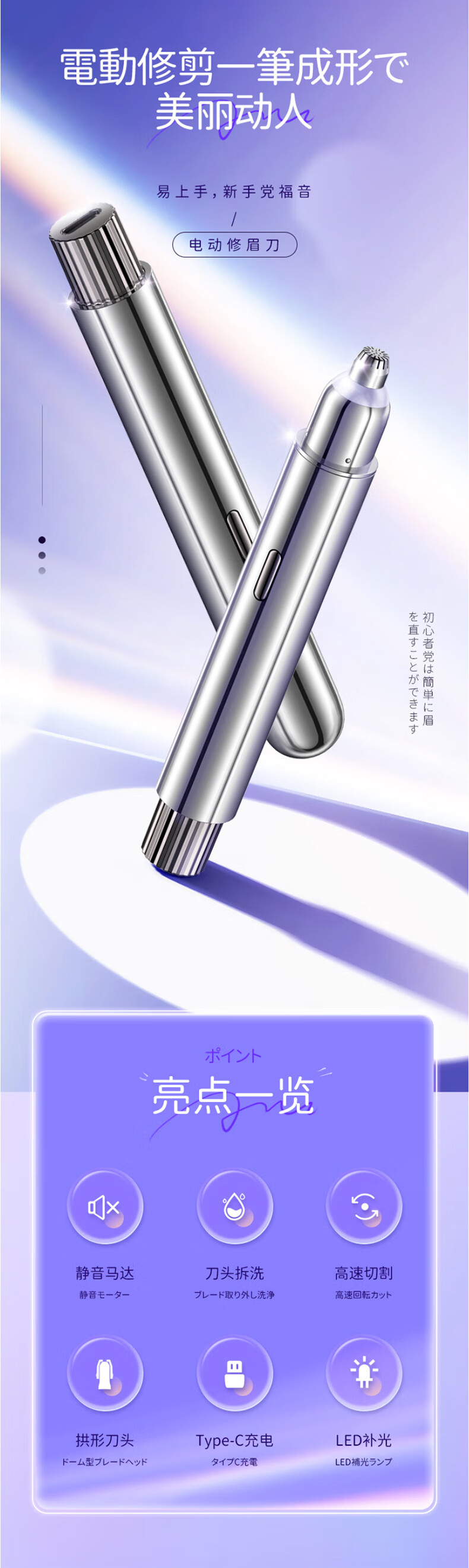OENUXCRA Electric Eyebrow Trimmer, Eyebrow Shaper, Eyebrow Artifact for Men and Women, Electric Eyebrow Trimmer, Eyebrow Shaving Knife, Lip and Nose Hair Beginner Eyebrow Trimmer, Fully Equipped, Upgraded Movement + Floating Dual Blade Heads + Eight Times Speed + Soft Fill Light