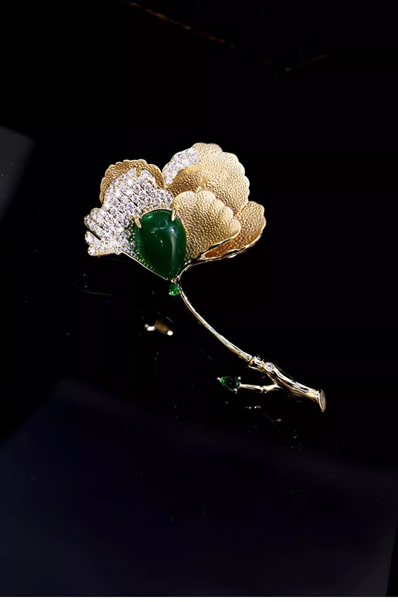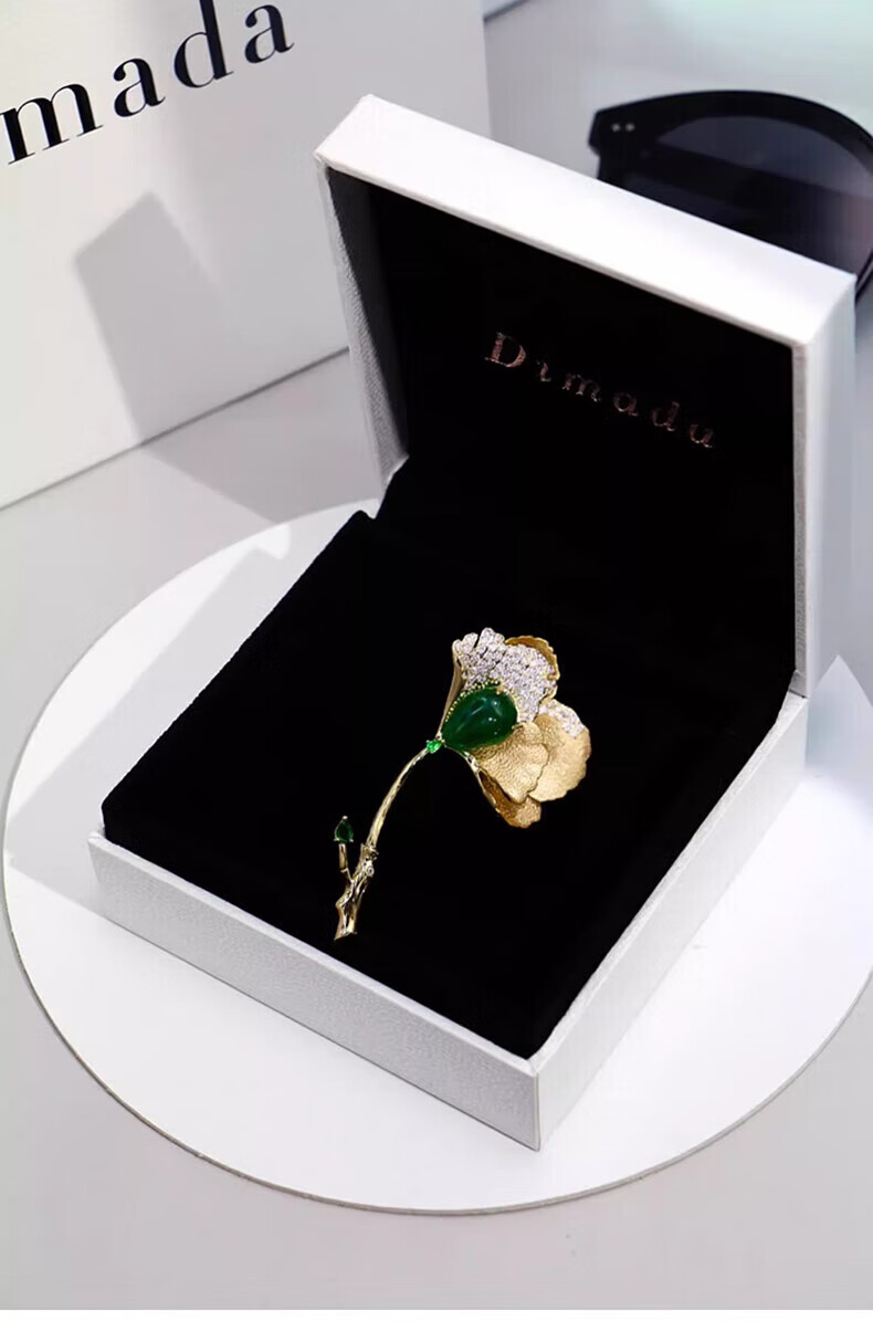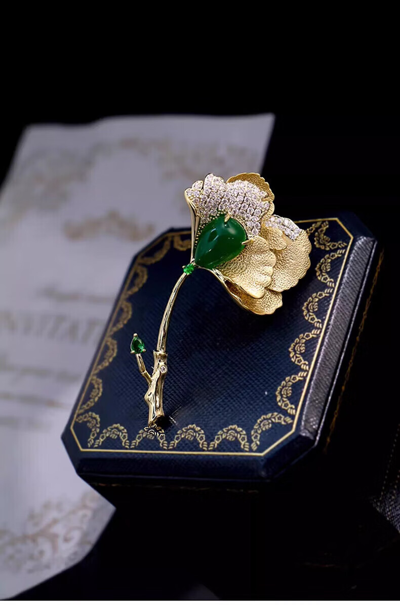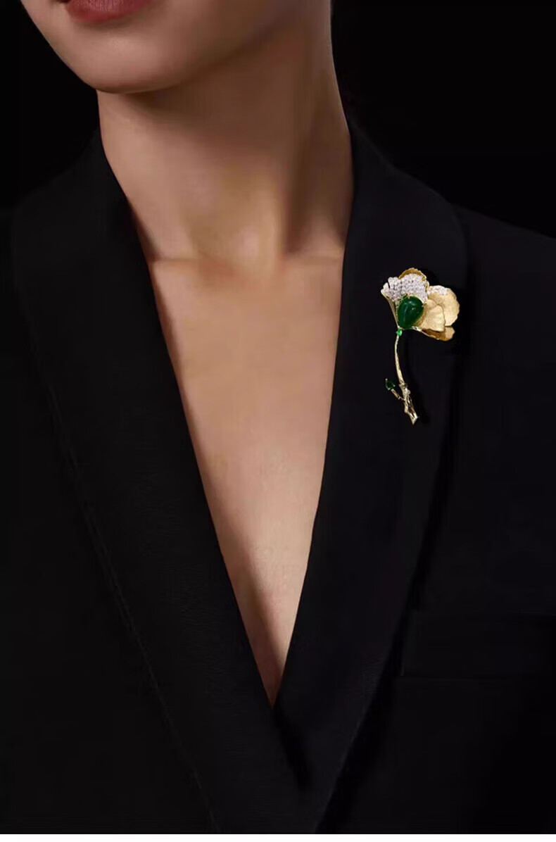 Lianshi Yin Muchi emerald lotus leaf brooch coat brooch women's corsage suit accessories wedding Qixi birthday XZ0563 emerald lotus leaf brooch