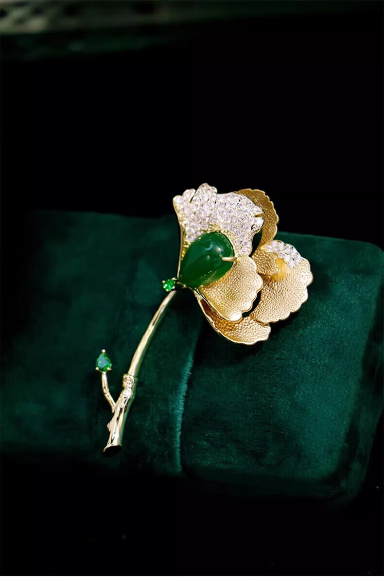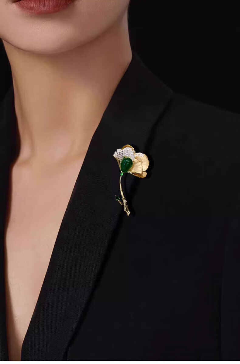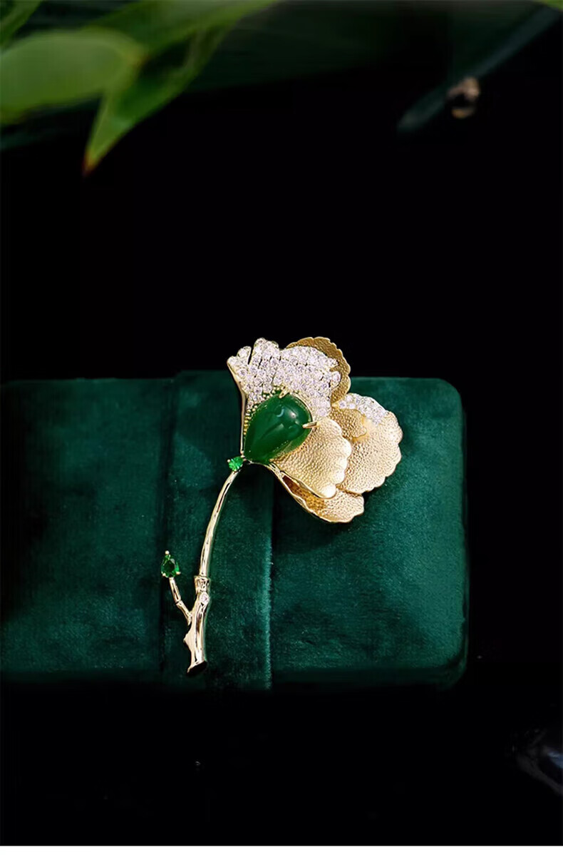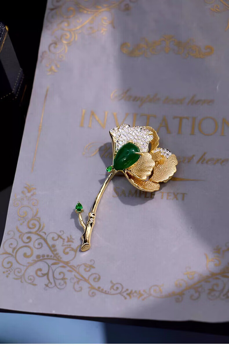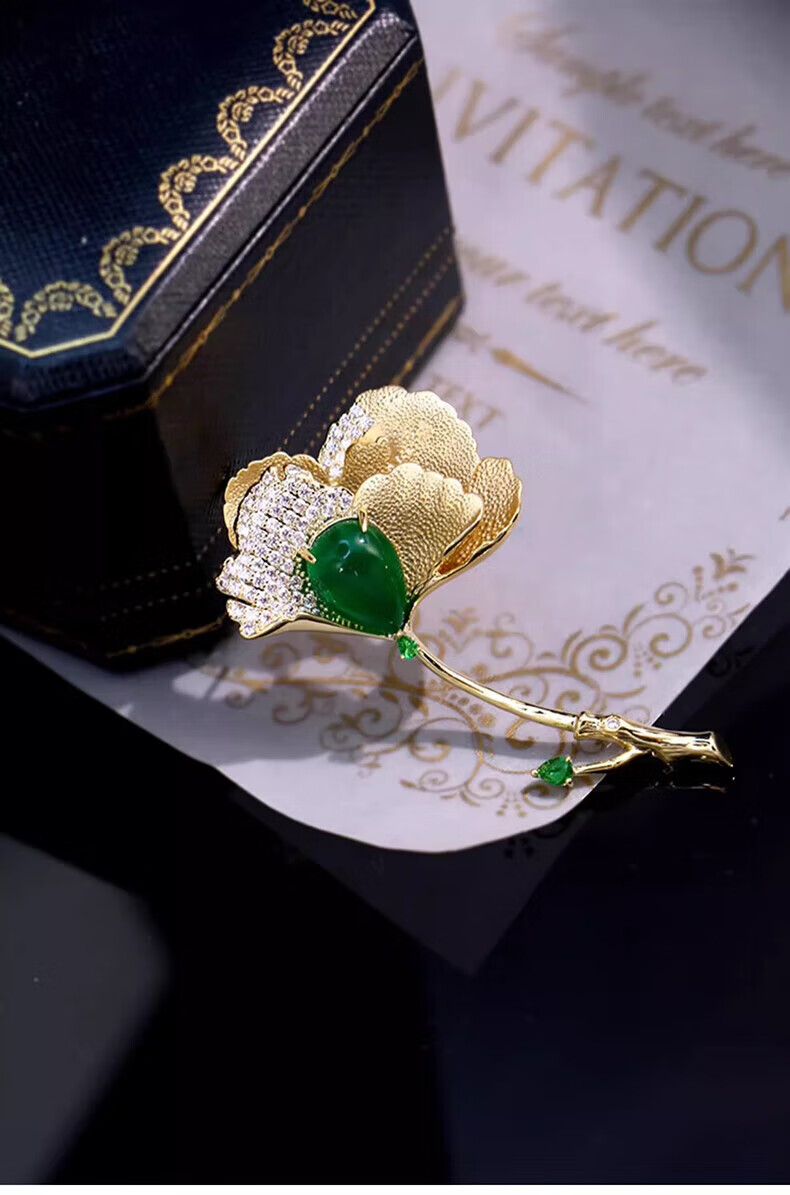 Lianshi Yin Muchi emerald lotus leaf brooch coat brooch women's corsage suit accessories wedding Qixi birthday XZ0563 emerald lotus leaf brooch