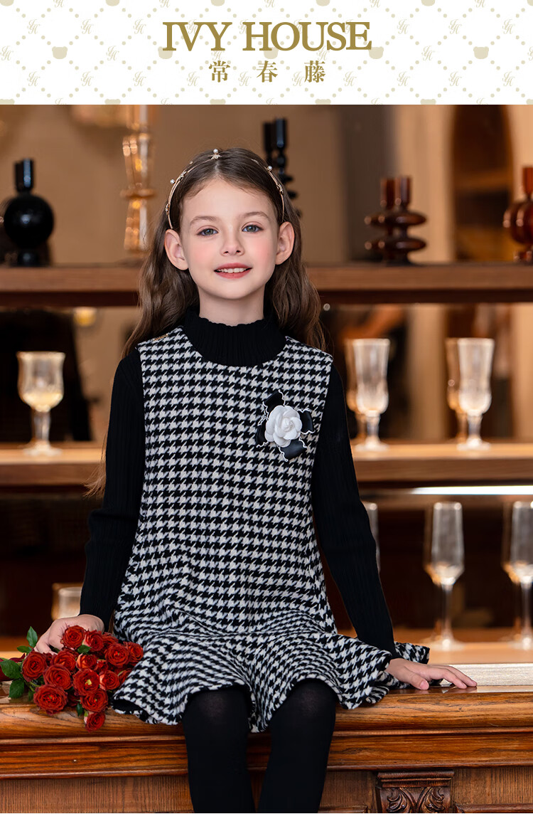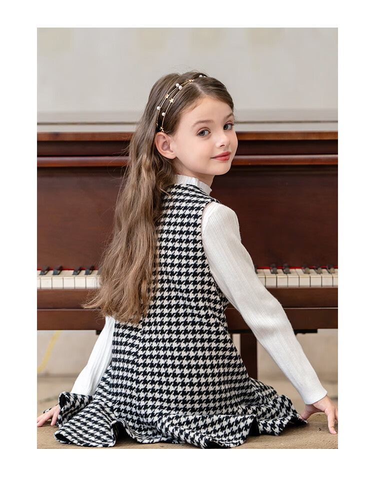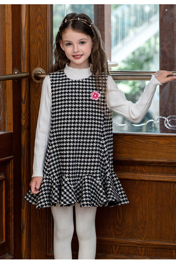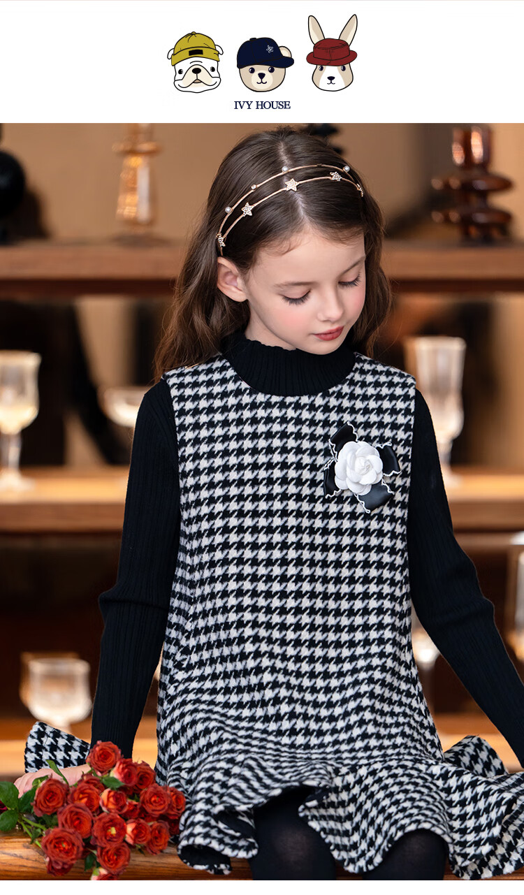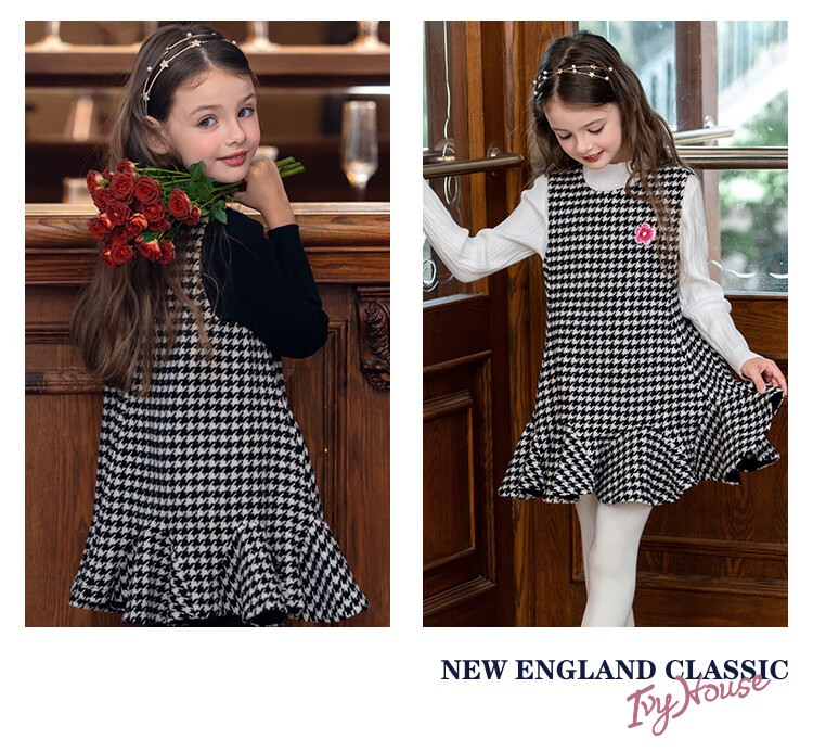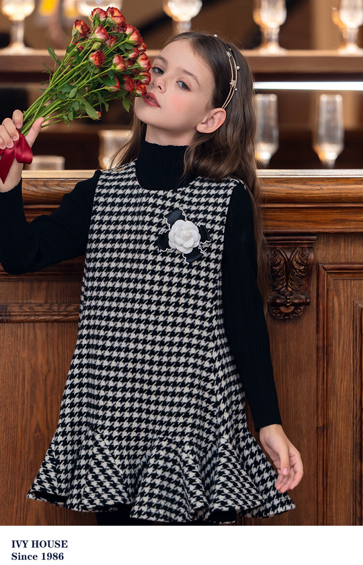 IVY HOUSE children's clothing for girls and older children winter new style houndstooth pattern vest dress princess skirt dress wool skirt black 150