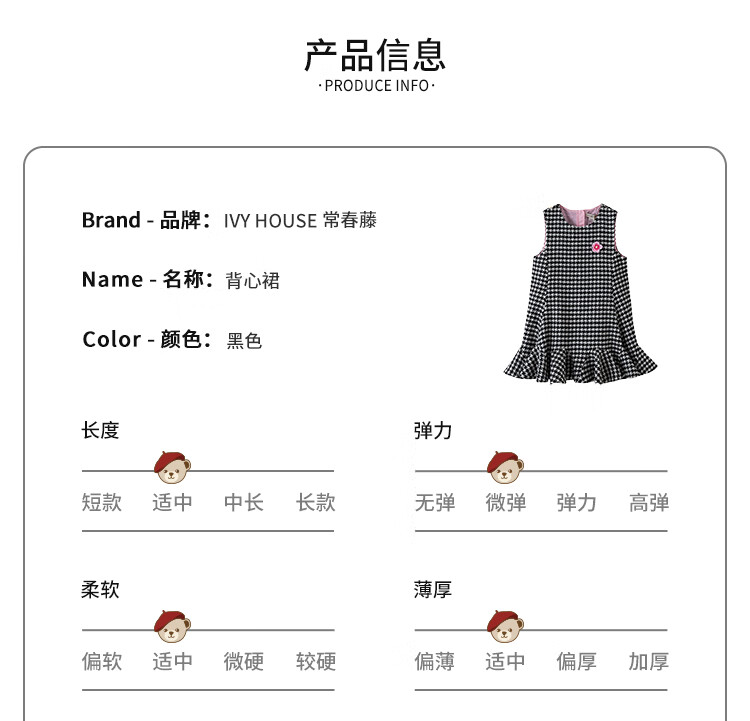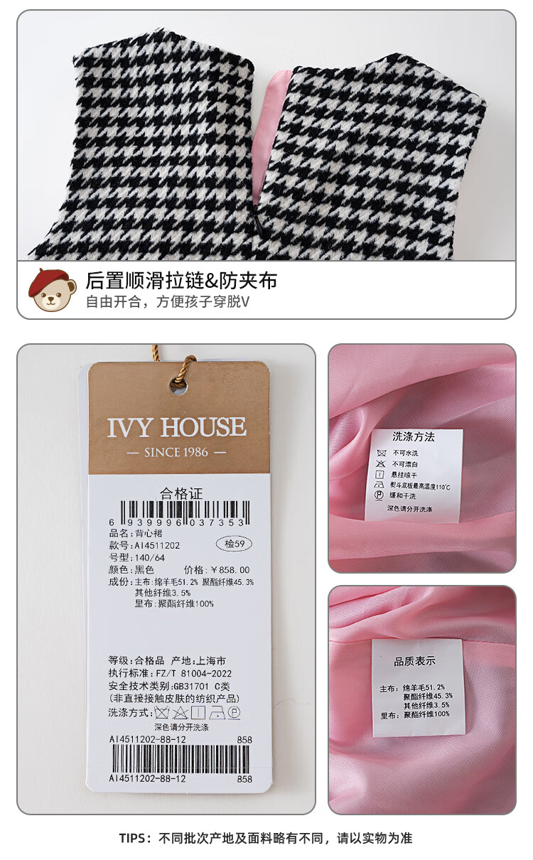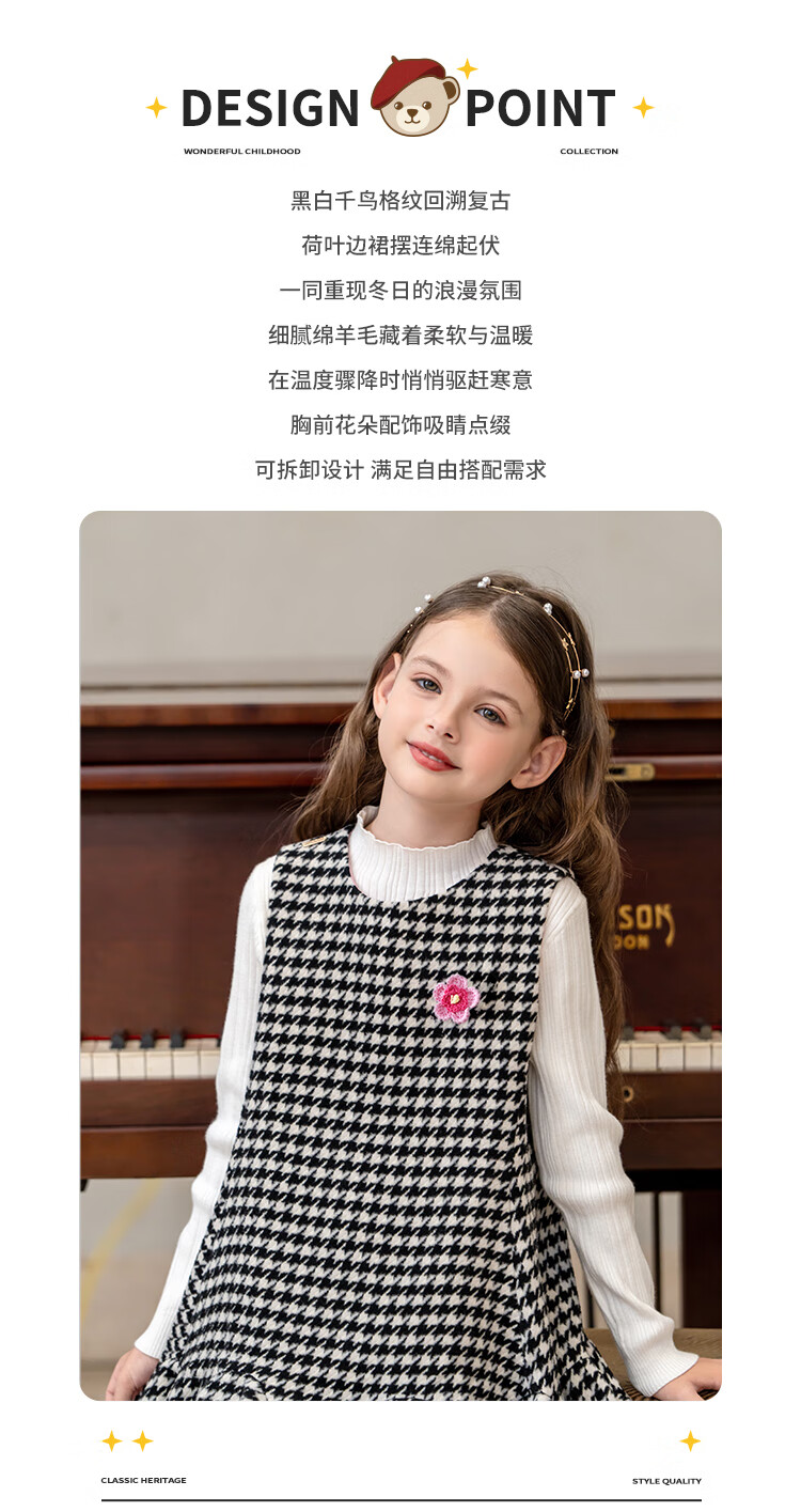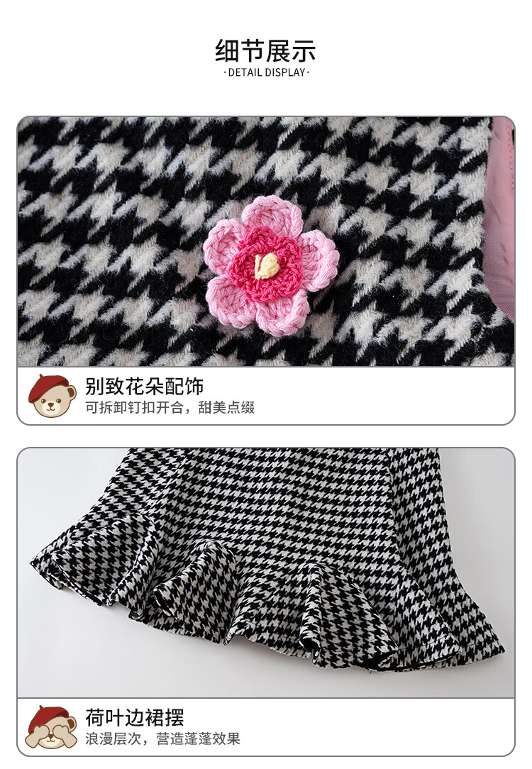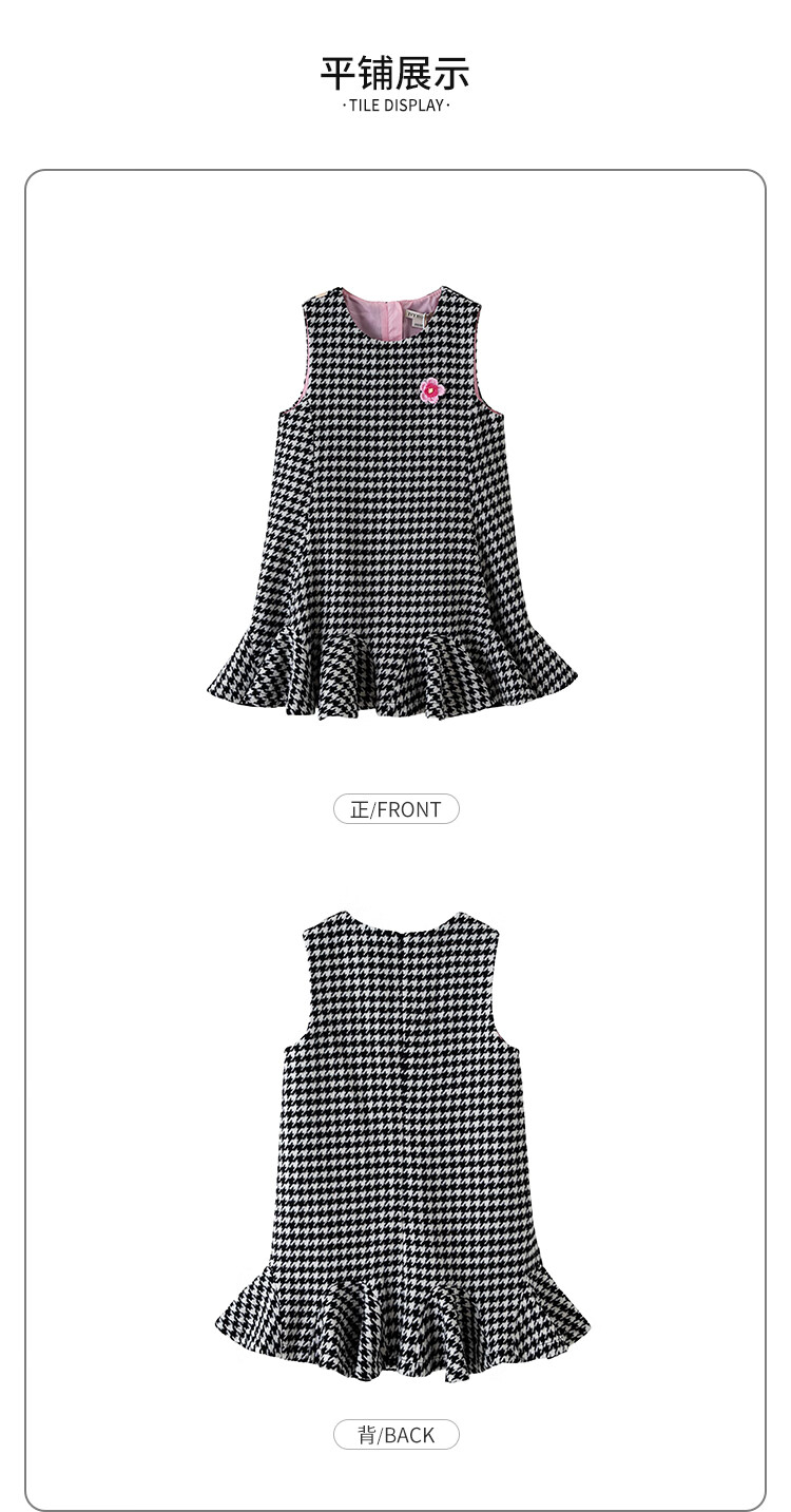 IVY HOUSE children's clothing for girls and older children winter new style houndstooth pattern vest dress princess skirt dress wool skirt black 150