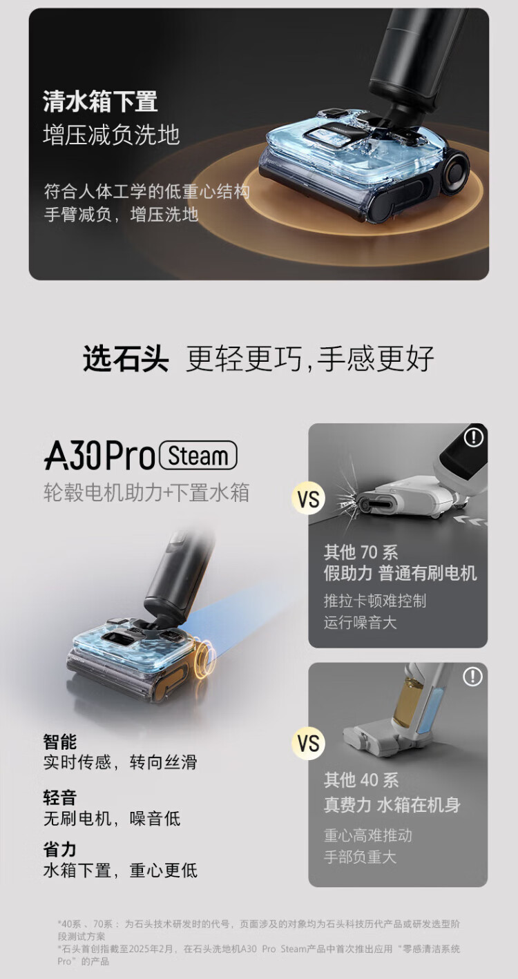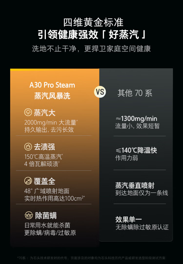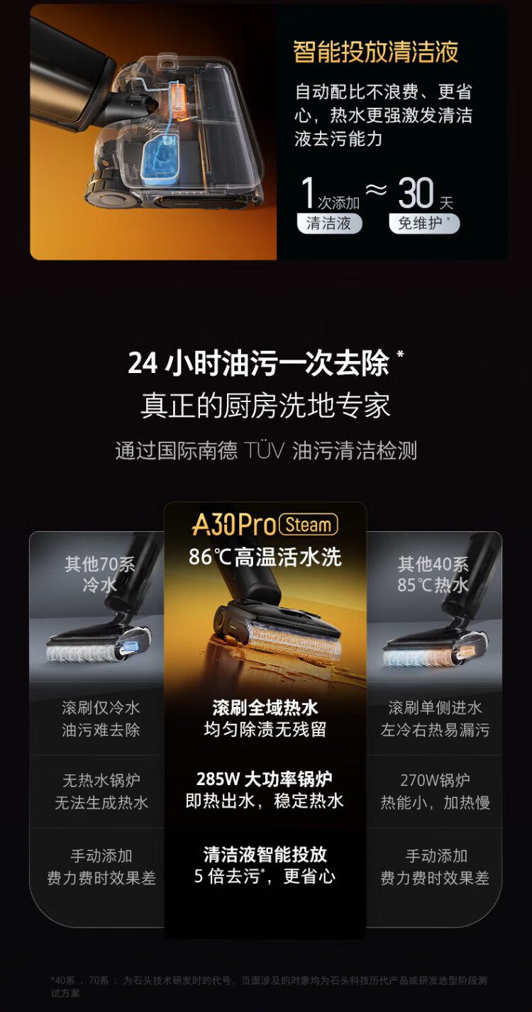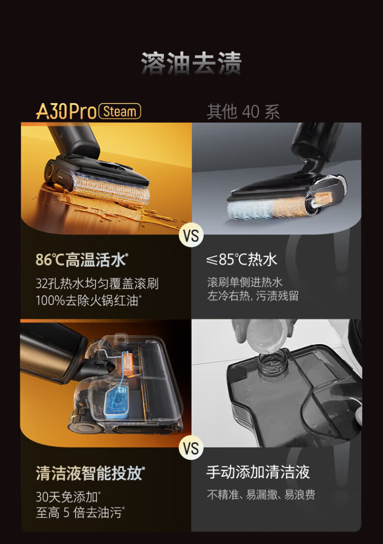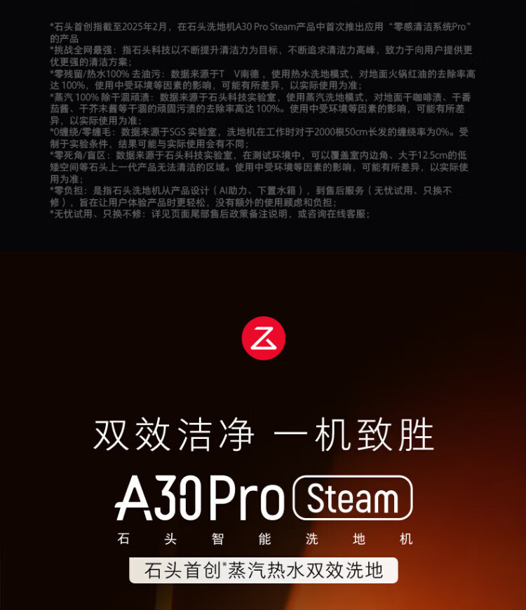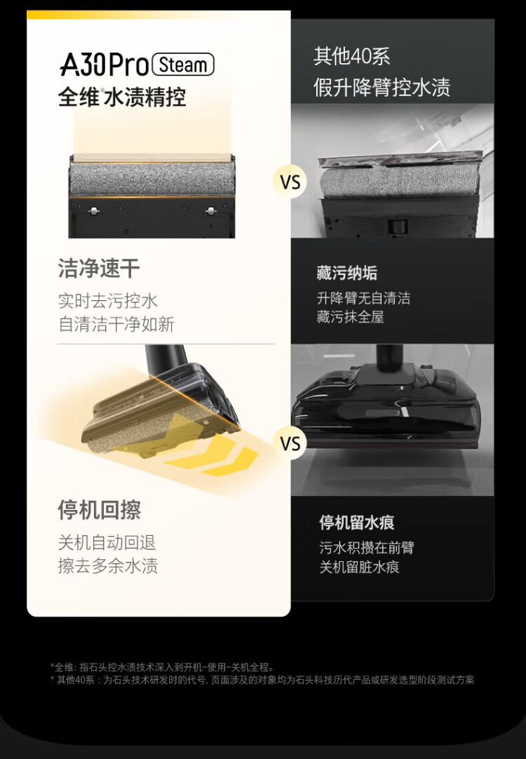 Roborock A30 Pro Steam Official refurbished machine Omni-directional power-assisted floor scrubber 86 C hot water 160 C steam floor scrubber with long battery life 0 tangles and odors full floor sweeper A30 Pro Steam B2-Slight traces of trial use