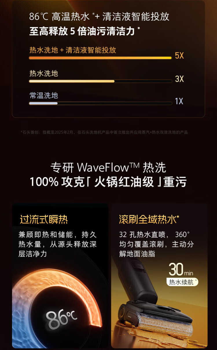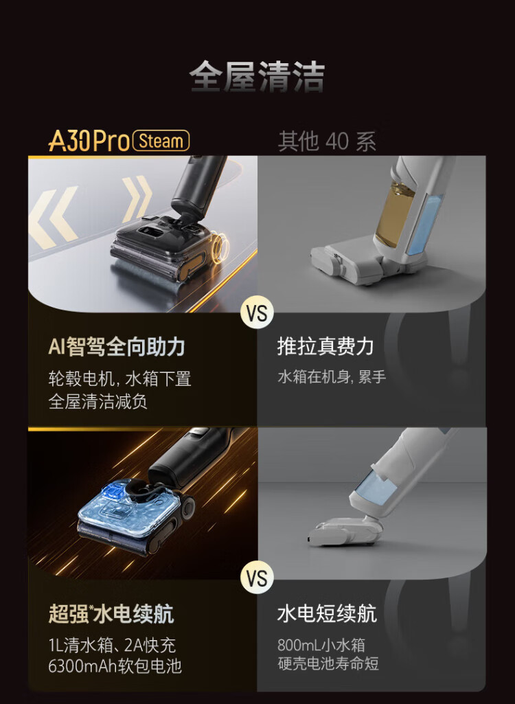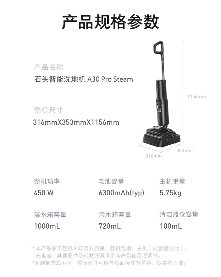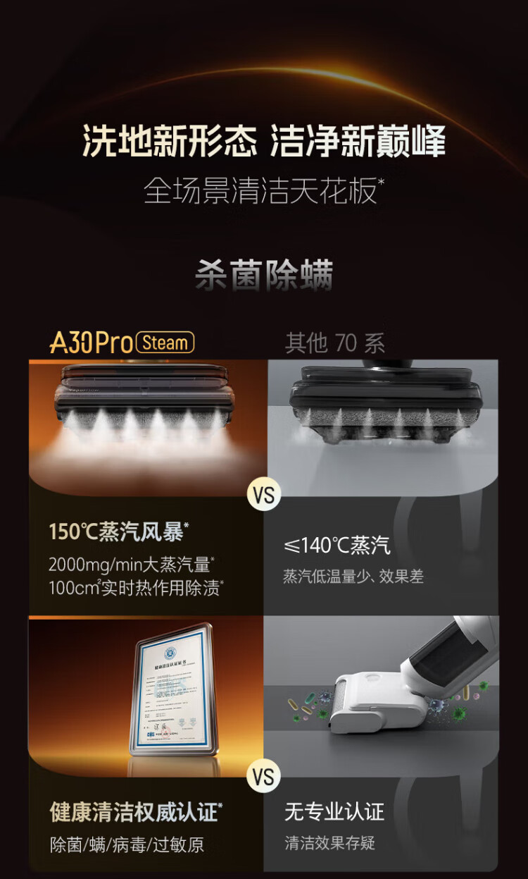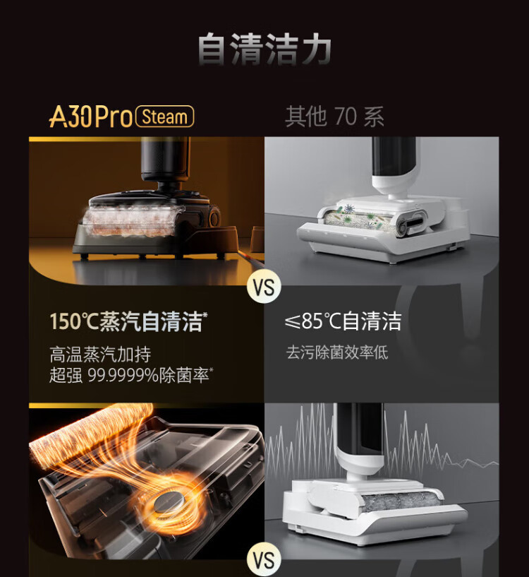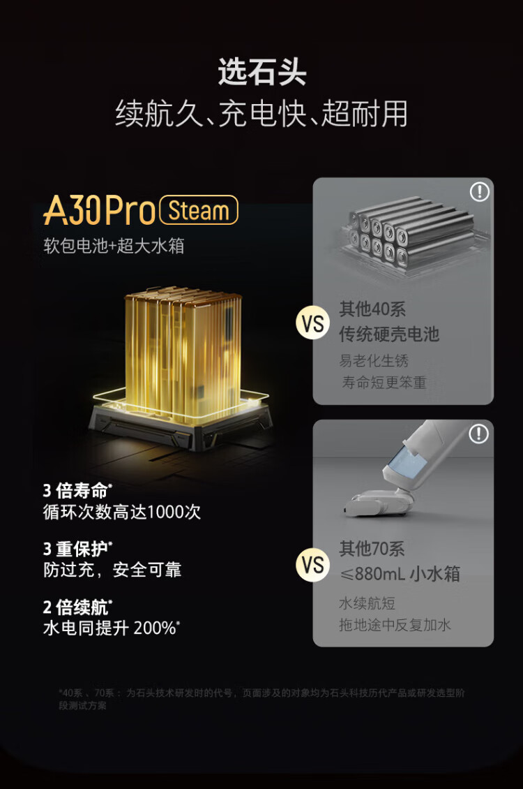 Roborock A30 Pro Steam Official refurbished machine Omni-directional power-assisted floor scrubber 86 C hot water 160 C steam floor scrubber with long battery life 0 tangles and odors full floor sweeper A30 Pro Steam B2-Slight traces of trial use