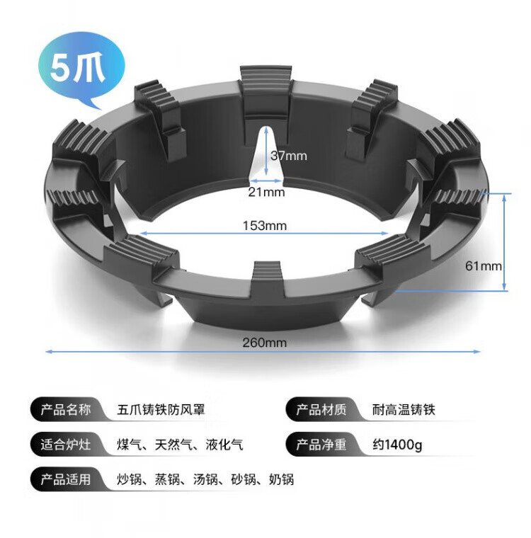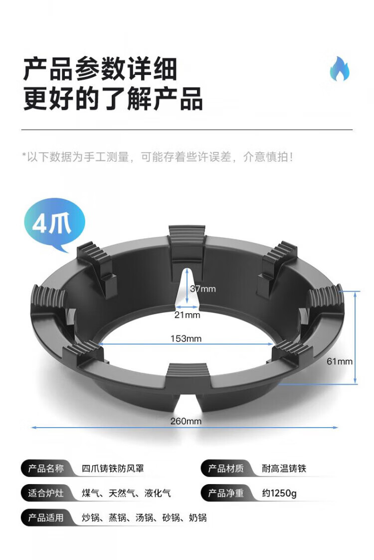 JCZS German brand cast iron gas stove windshield anti-slip bracket universal gas stove fire focus wind shield energy-saving stove stove suitable for 4-claw stove double anti-slip/fire focus/wind shield no odor