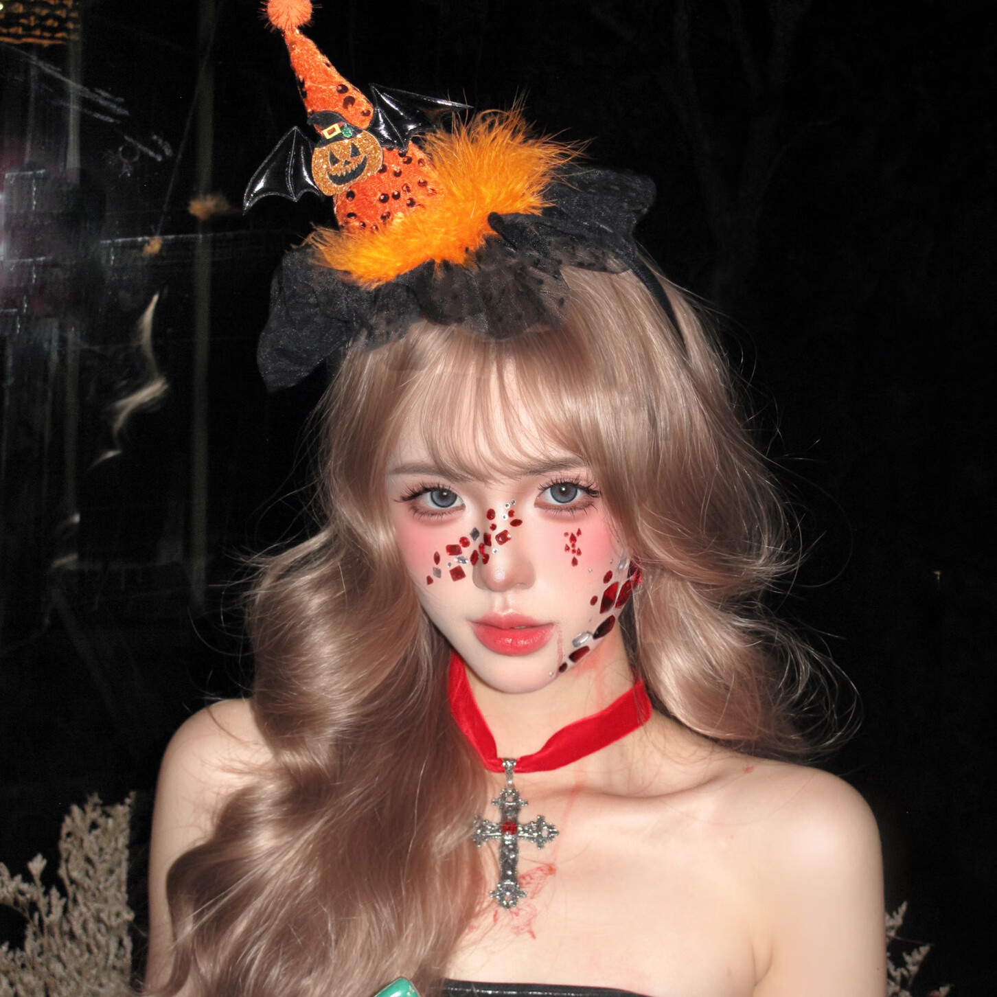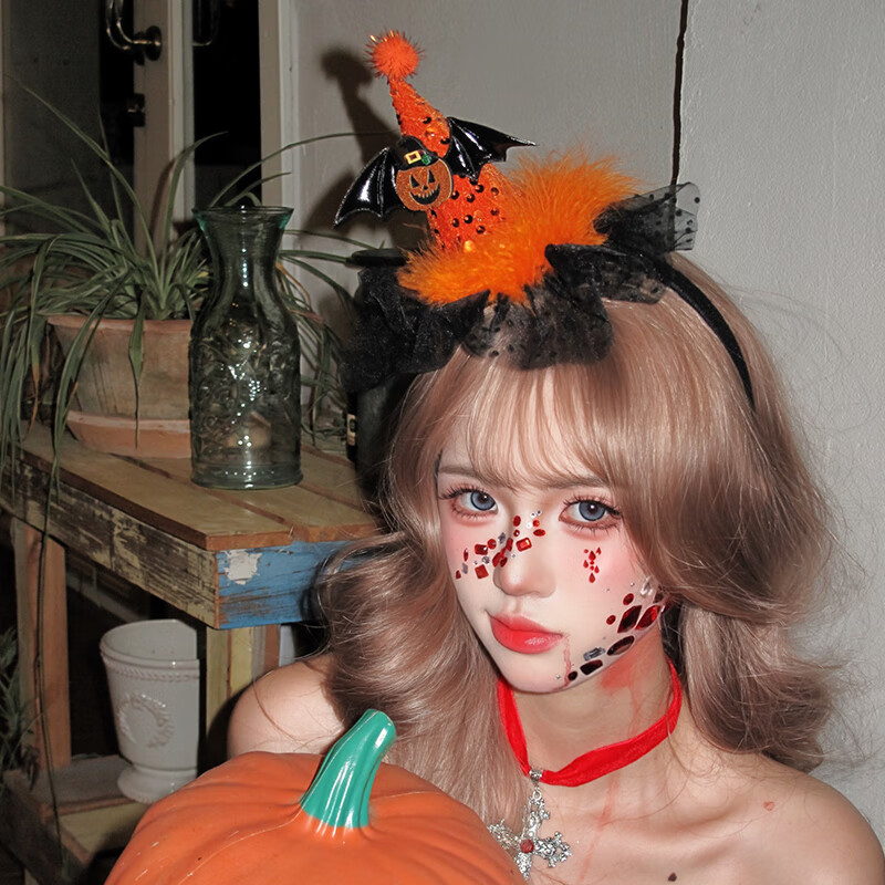 Dream Halloween Cute Funny Bat Pumpkin Lace Headband Dark Witch Magic Hat Headband Ghost Headband One Size Halloween Hat Headband * 1 piece About 24*14cm
