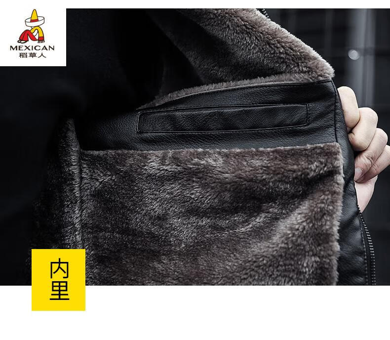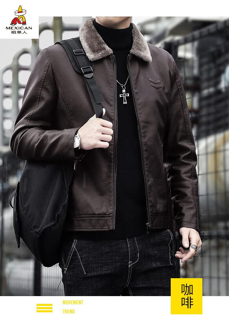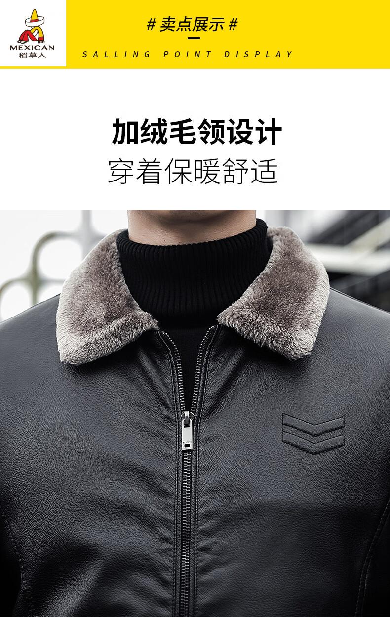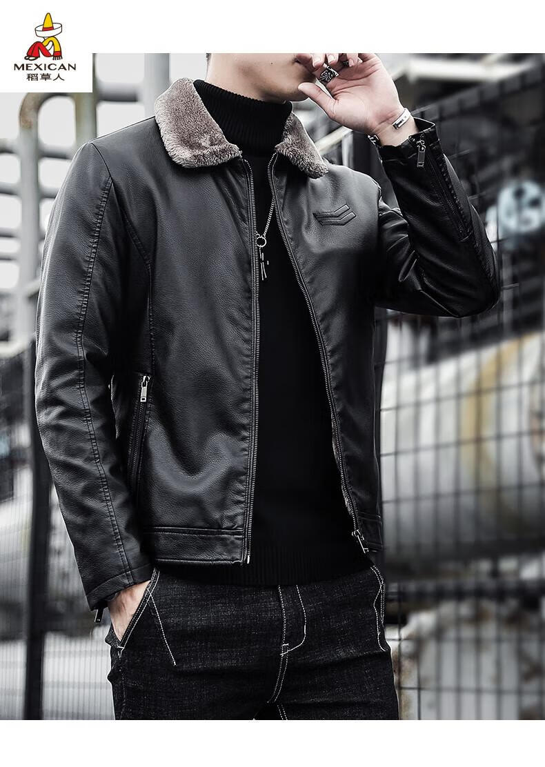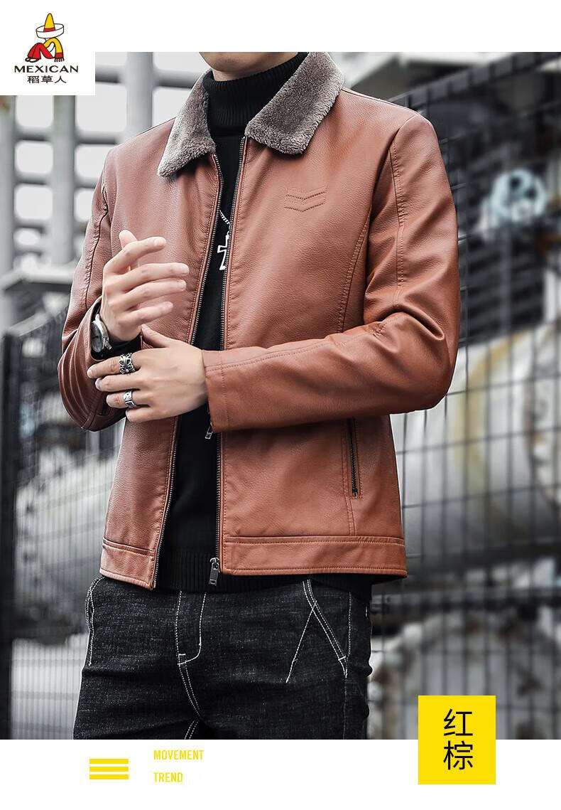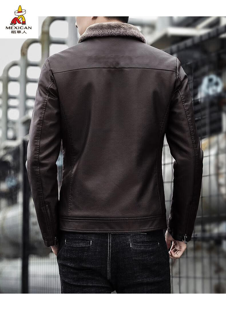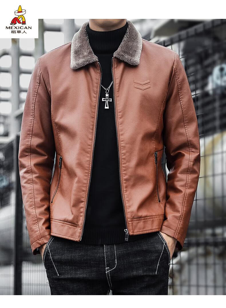 Scarecrow (MEXICAN) Haining Leather Men's Autumn and Winter Thickened Warm Jackets Young and Middle-aged Fur Collar Soft Leather Jackets Winter Men's Brown Velvet Thickened M Recommended 100-115 Jin Jin equals 0.5 kg