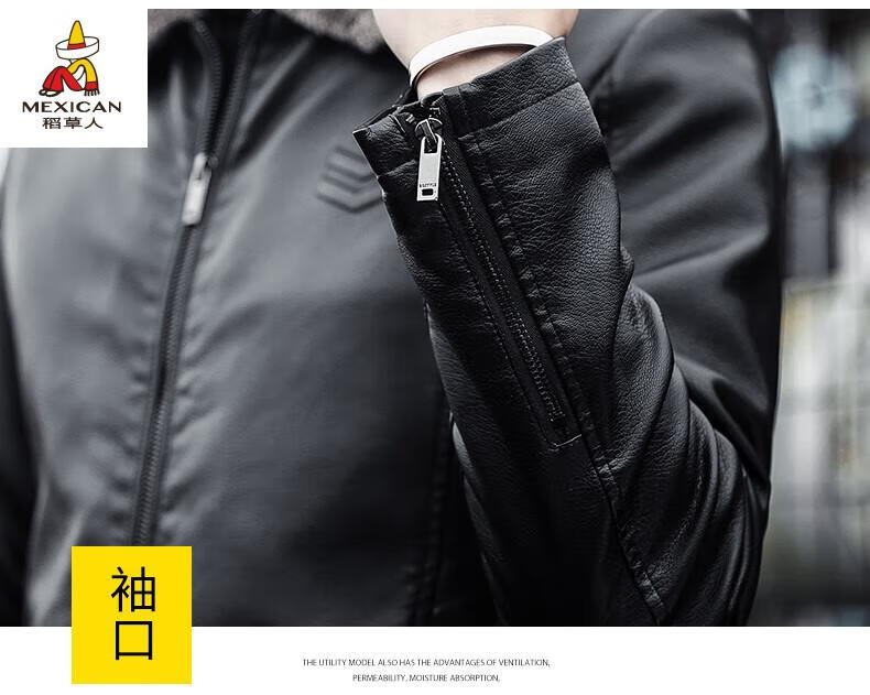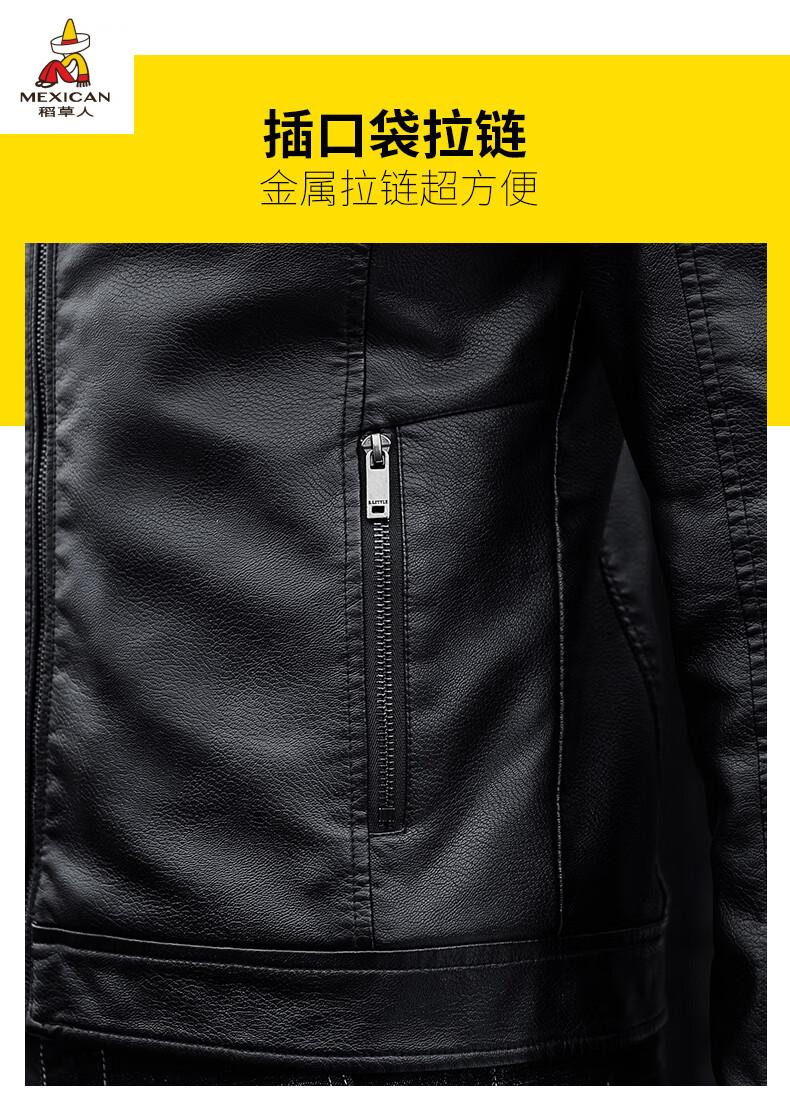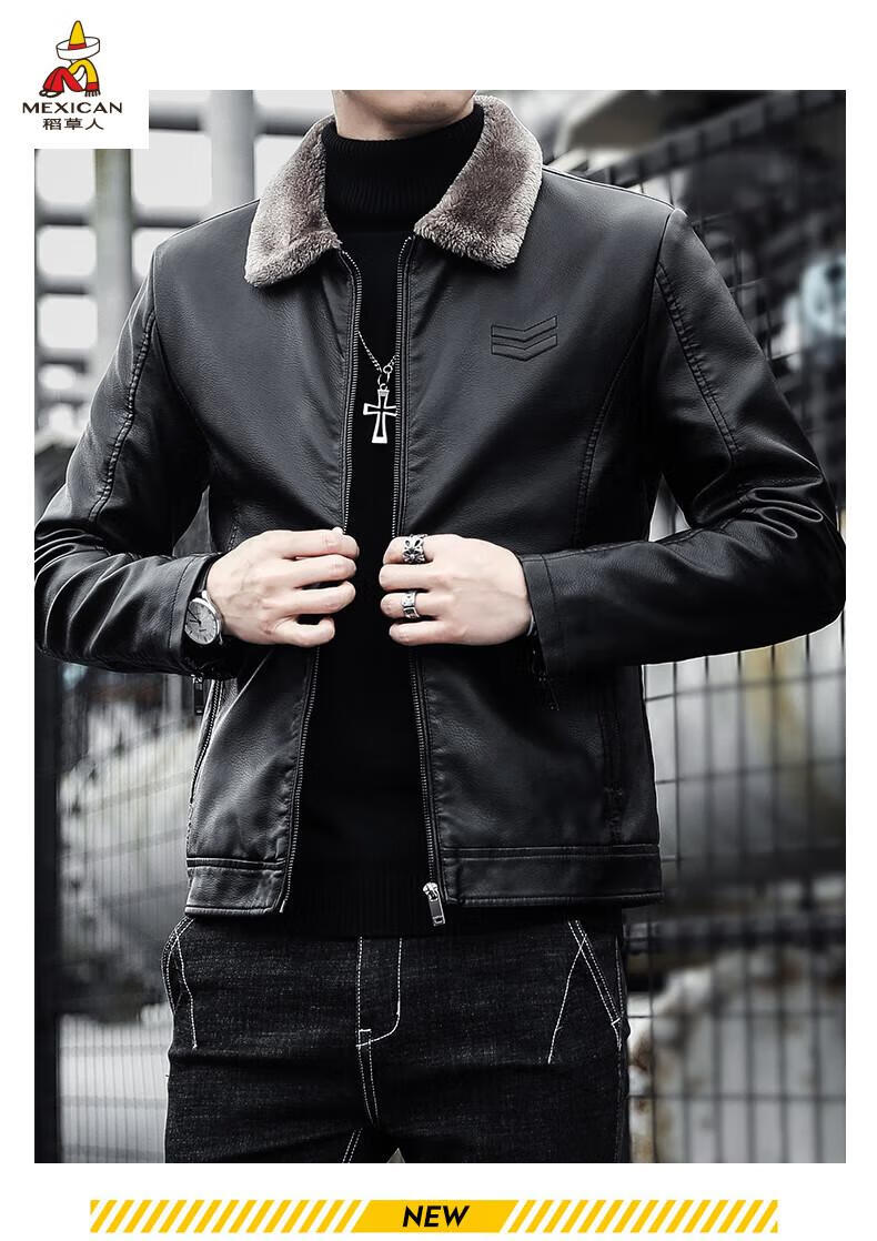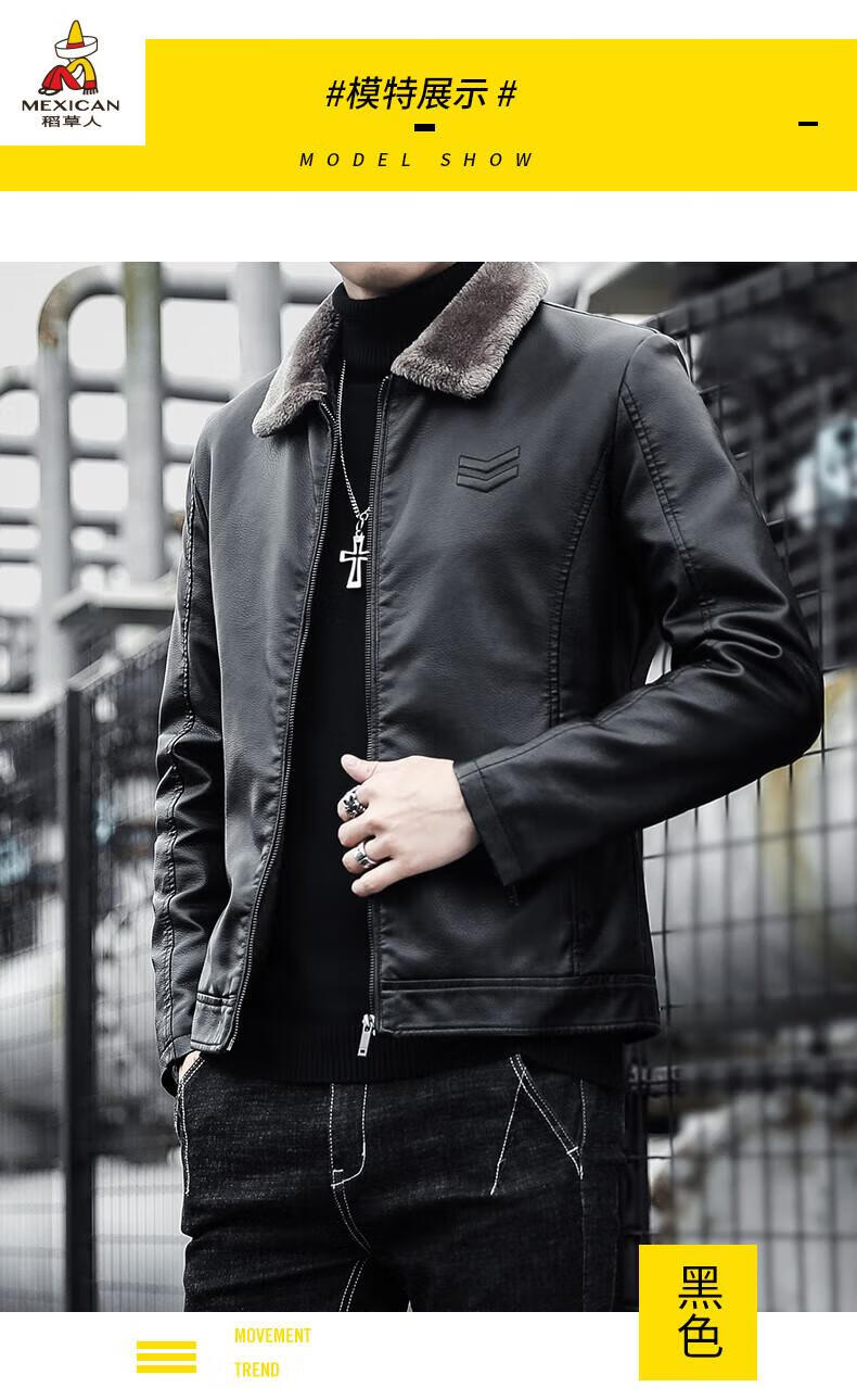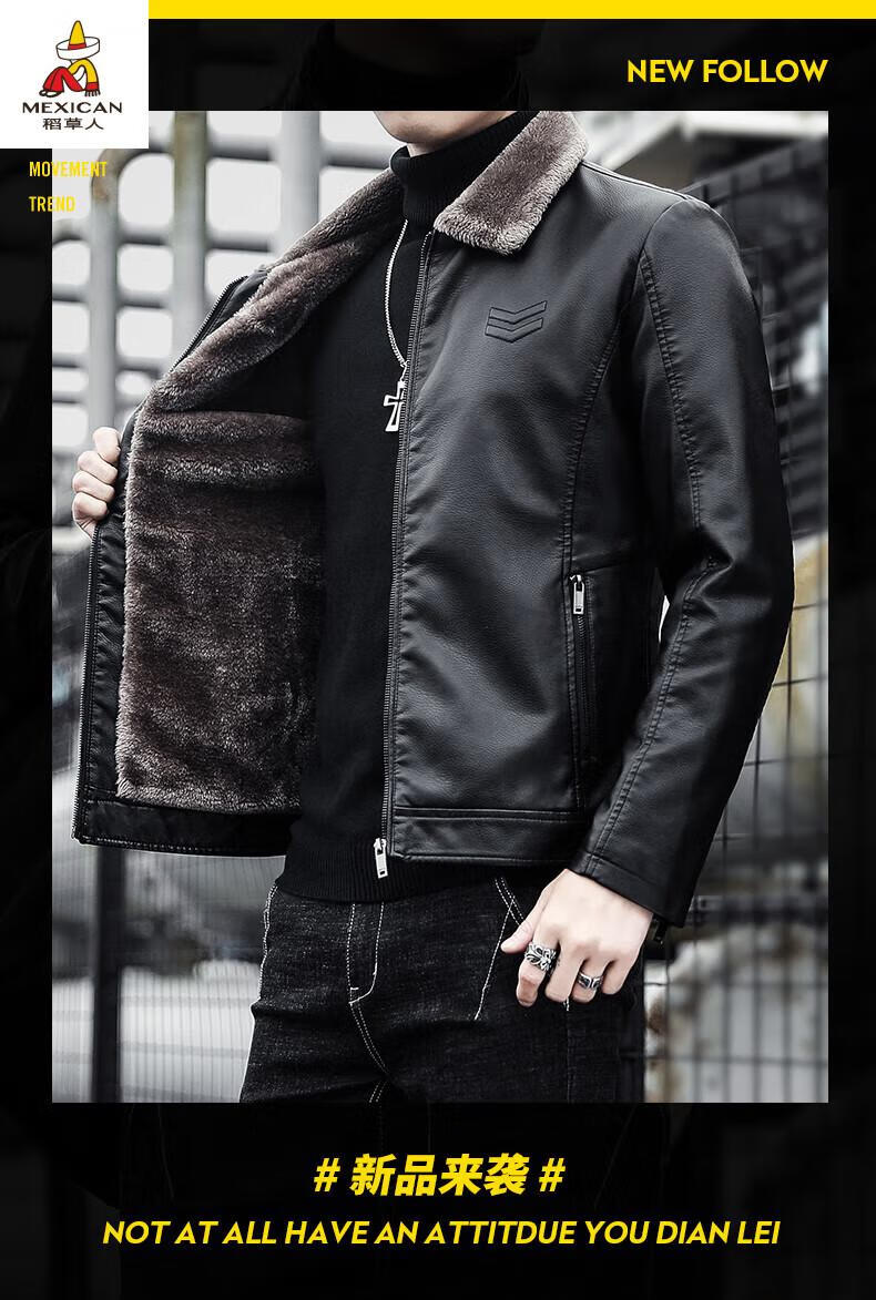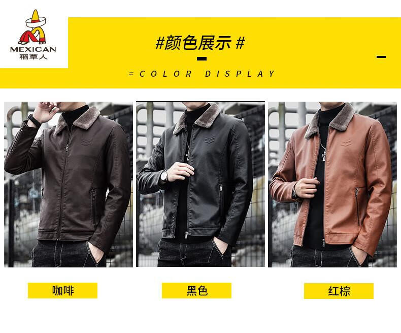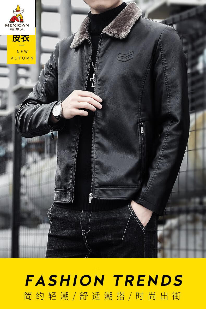 Scarecrow (MEXICAN) Haining Leather Men's Autumn and Winter Thickened Warm Jackets Young and Middle-aged Fur Collar Soft Leather Jackets Winter Men's Brown Velvet Thickened M Recommended 100-115 Jin Jin equals 0.5 kg