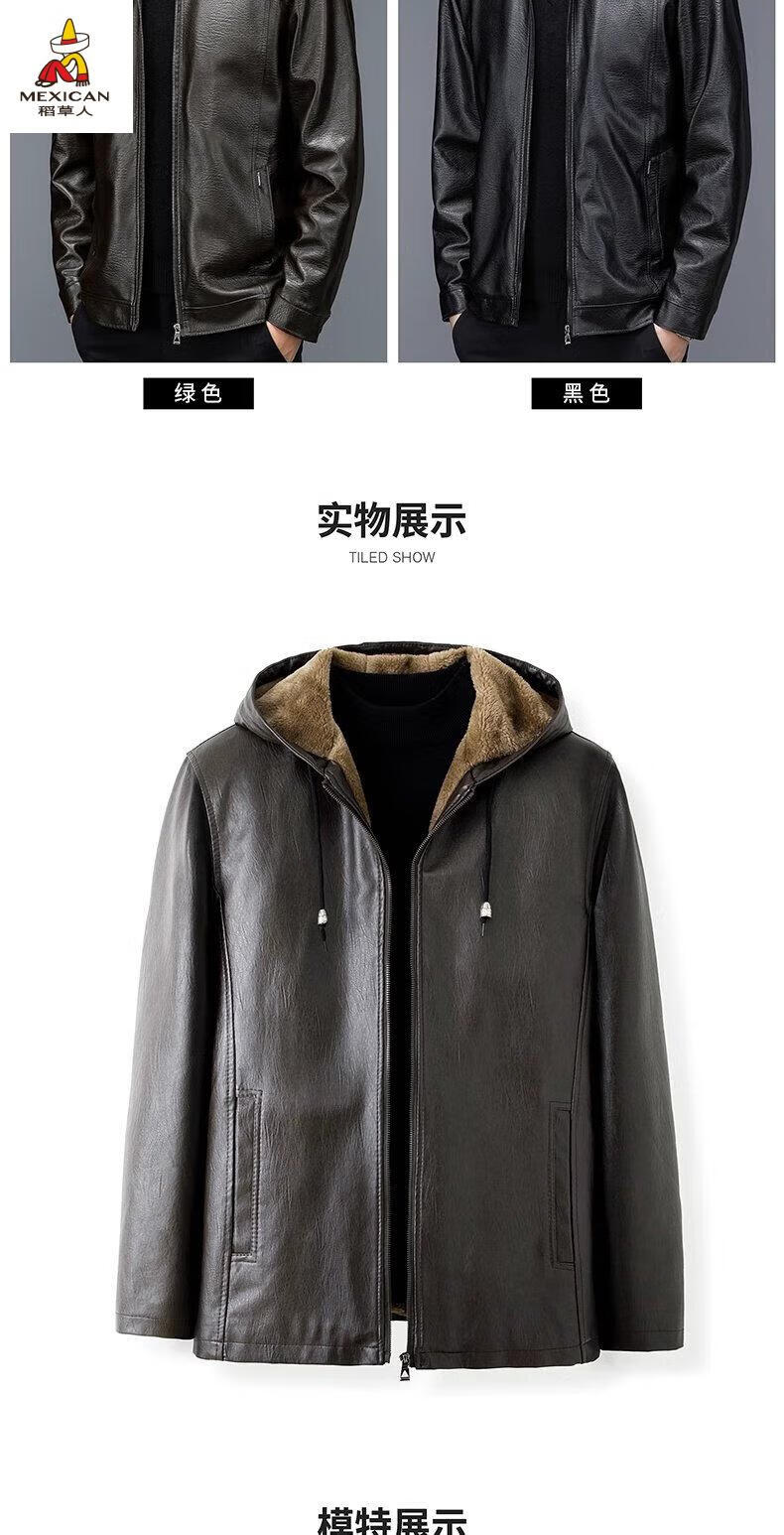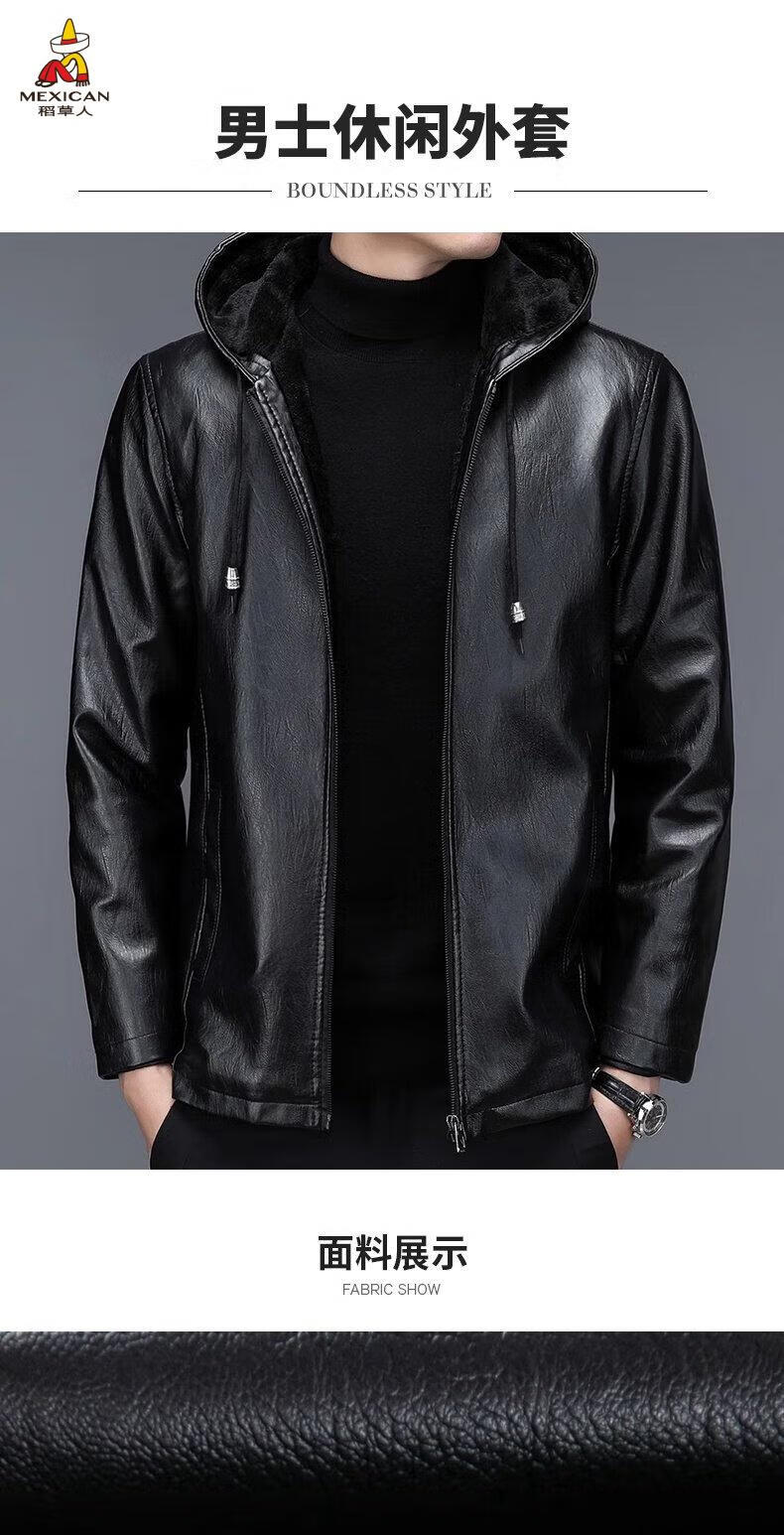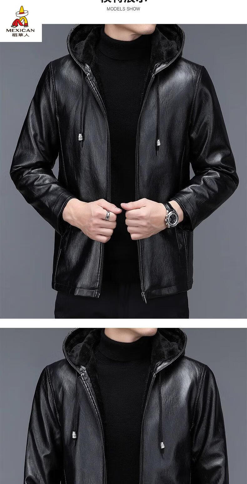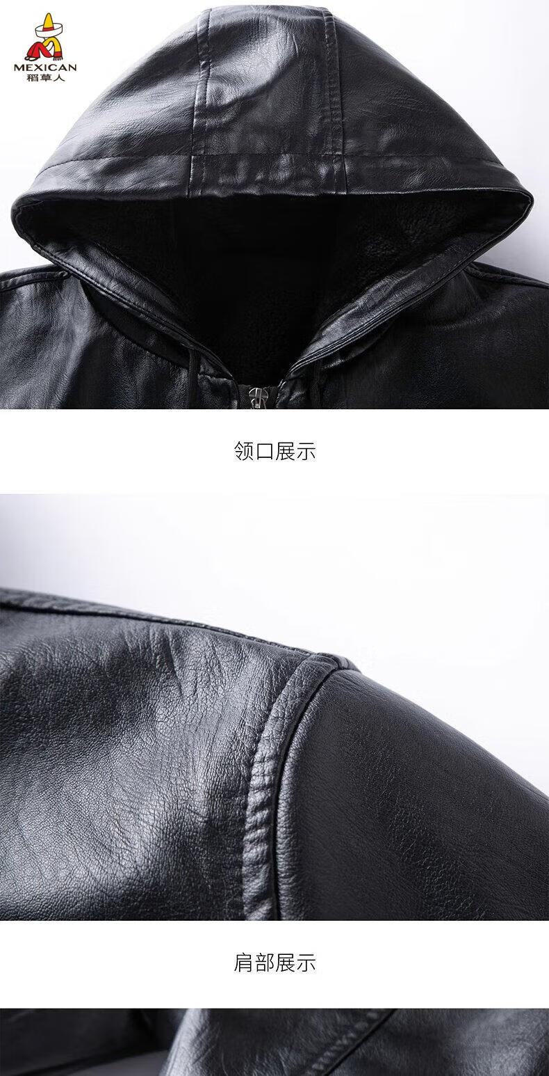 Scarecrow (MEXICAN) autumn and winter middle-aged and elderly leather jacket hooded men's leather jacket large size loose casual dad wear velvet thickened jacket 105 black 3XL 185170-190Jin Jin is equal to 0.5 kg