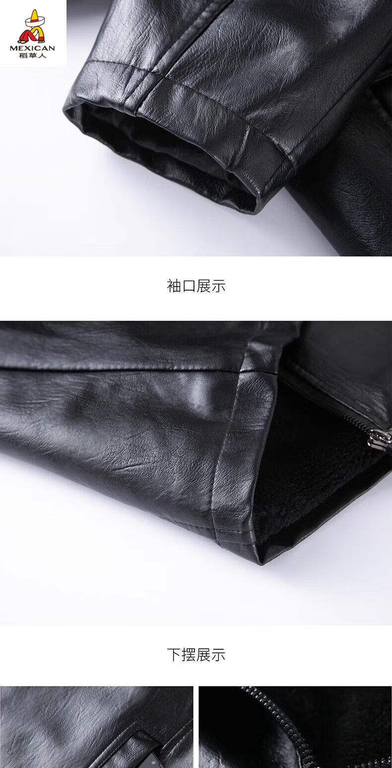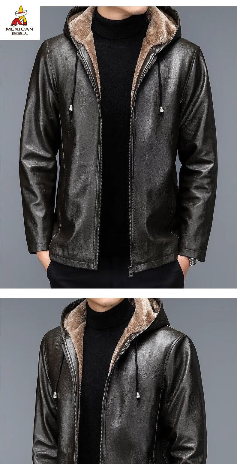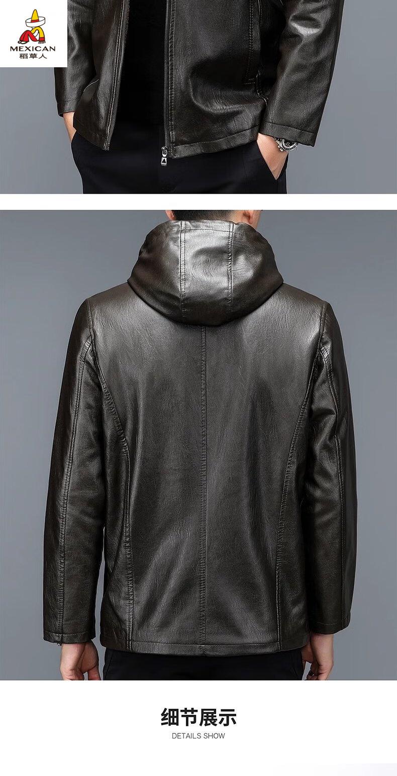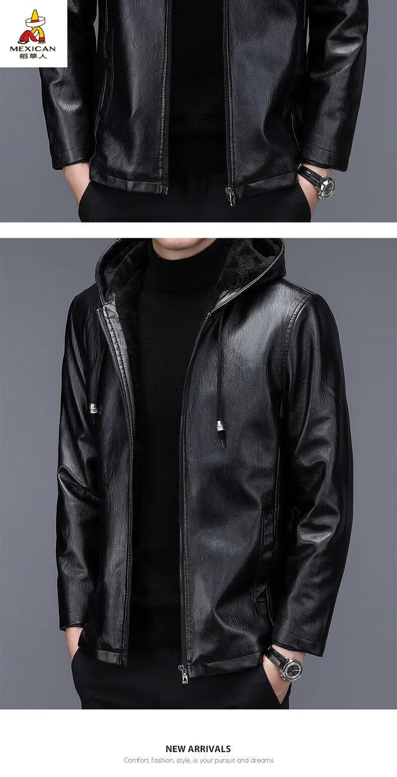 Scarecrow (MEXICAN) autumn and winter middle-aged and elderly leather jacket hooded men's leather jacket large size loose casual dad wear velvet thickened jacket 105 black 3XL 185170-190Jin Jin is equal to 0.5 kg