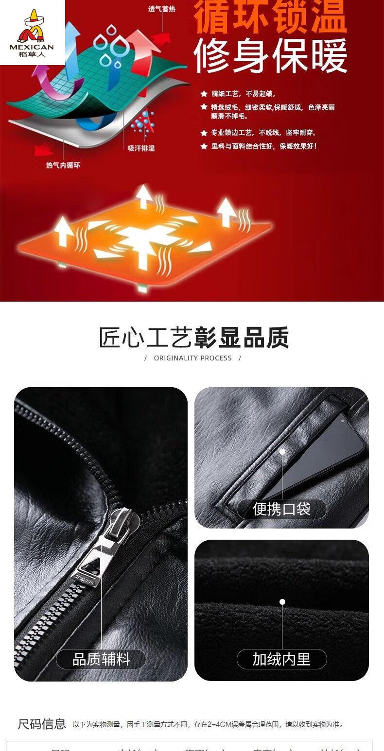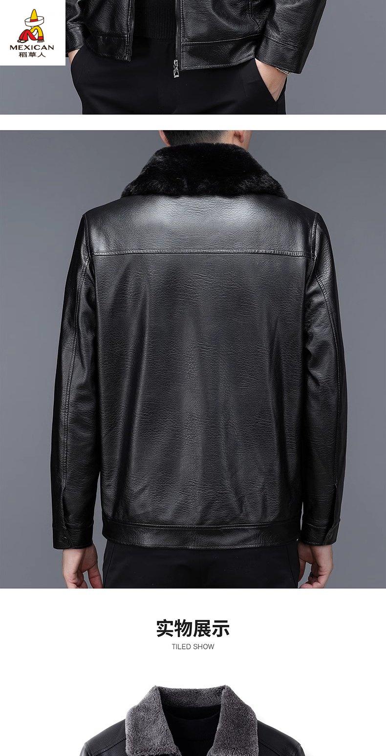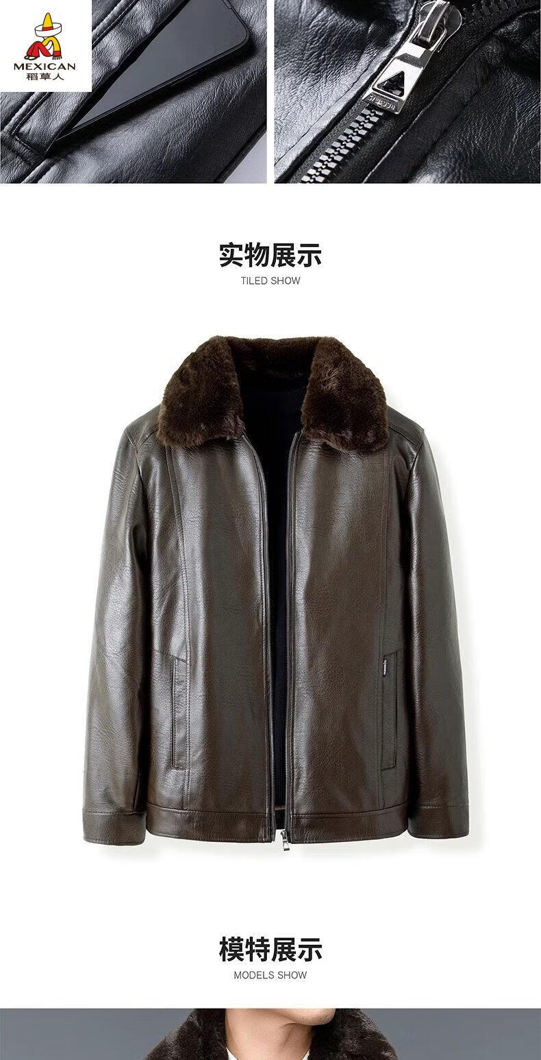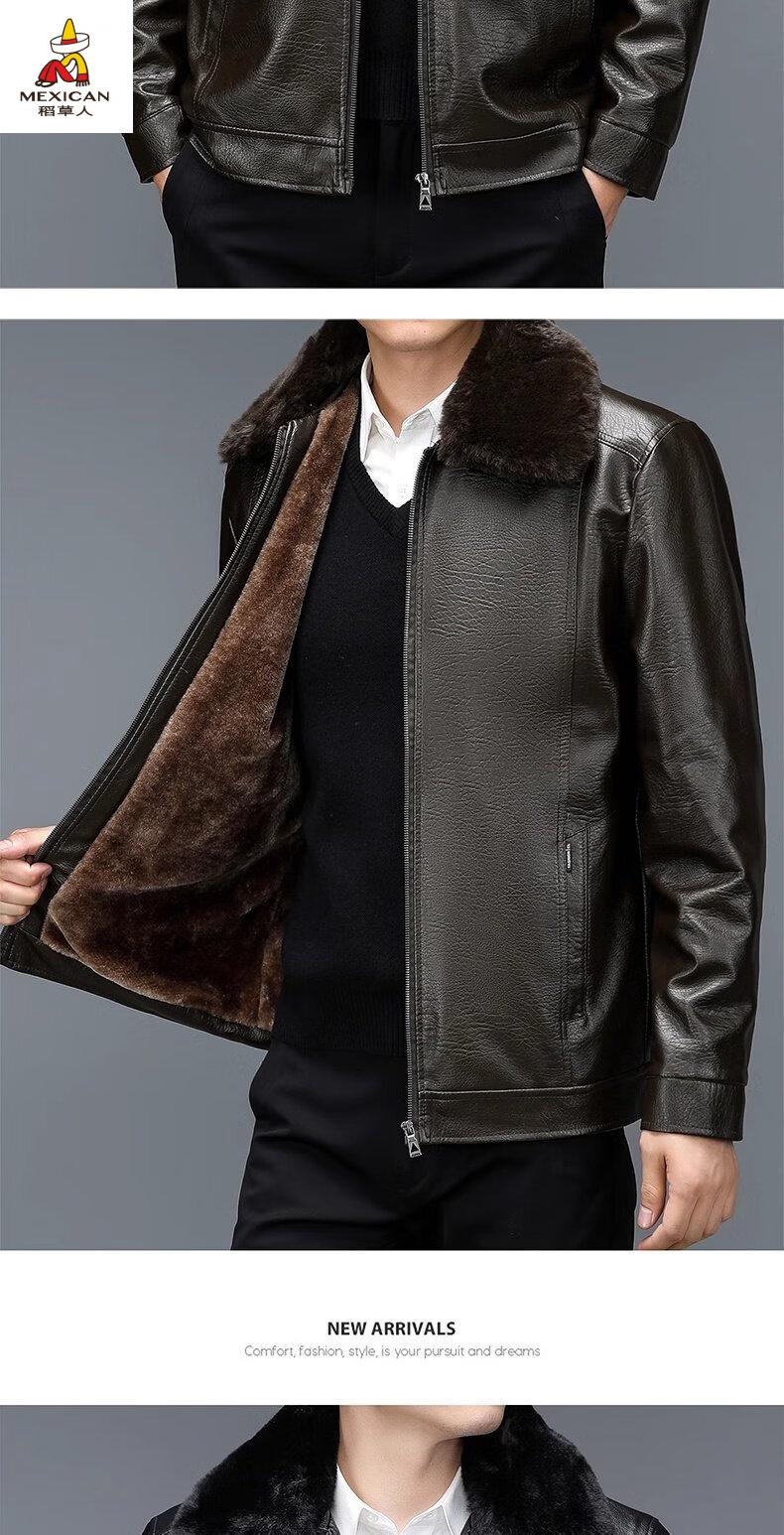 Scarecrow (MEXICAN) autumn and winter middle-aged and elderly leather jacket hooded men's leather jacket large size loose casual dad wear velvet thickened jacket 105 black 3XL 185170-190Jin Jin is equal to 0.5 kg