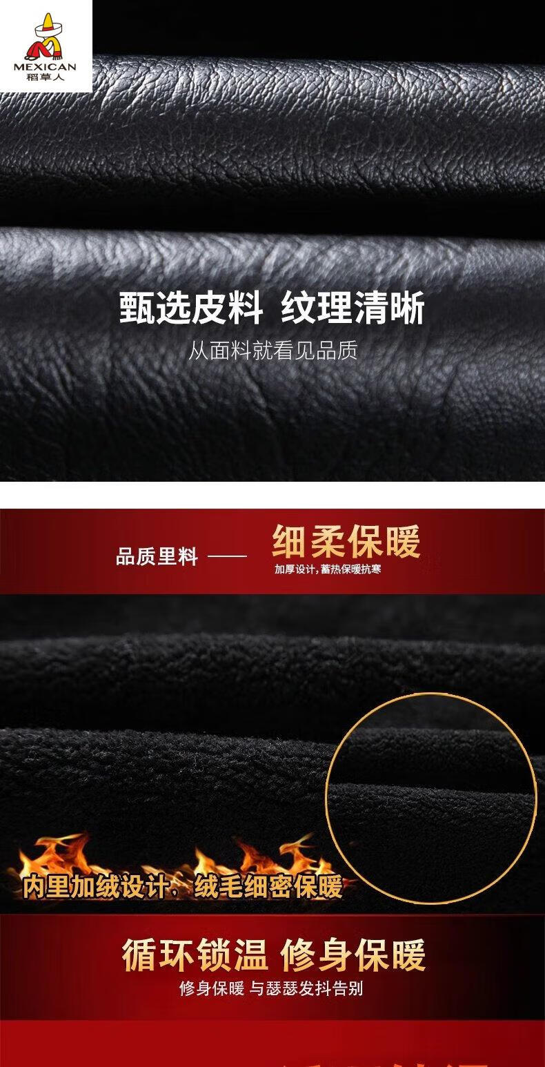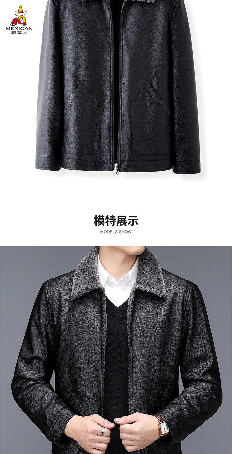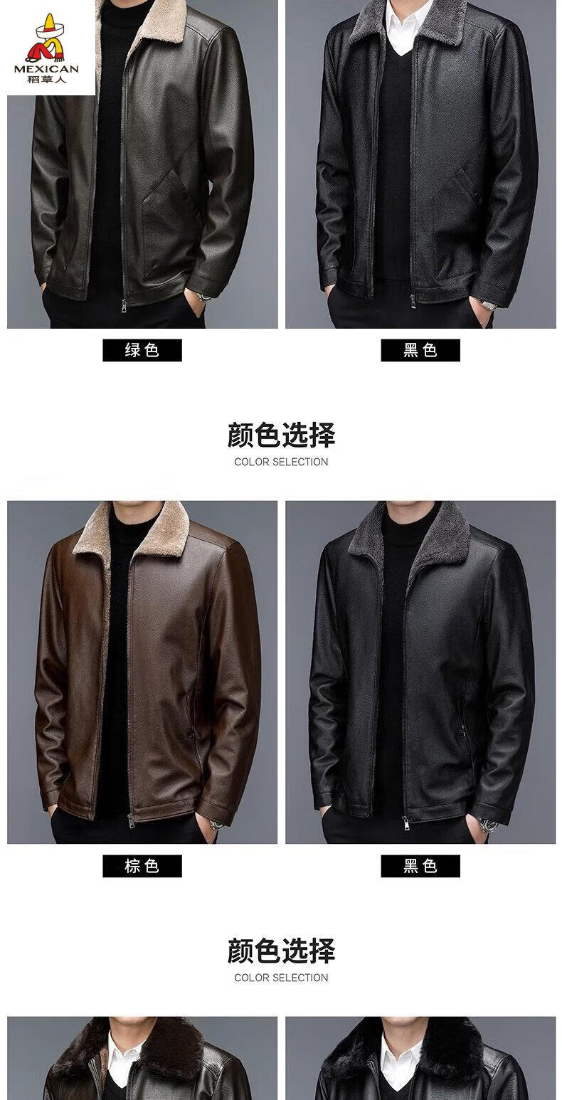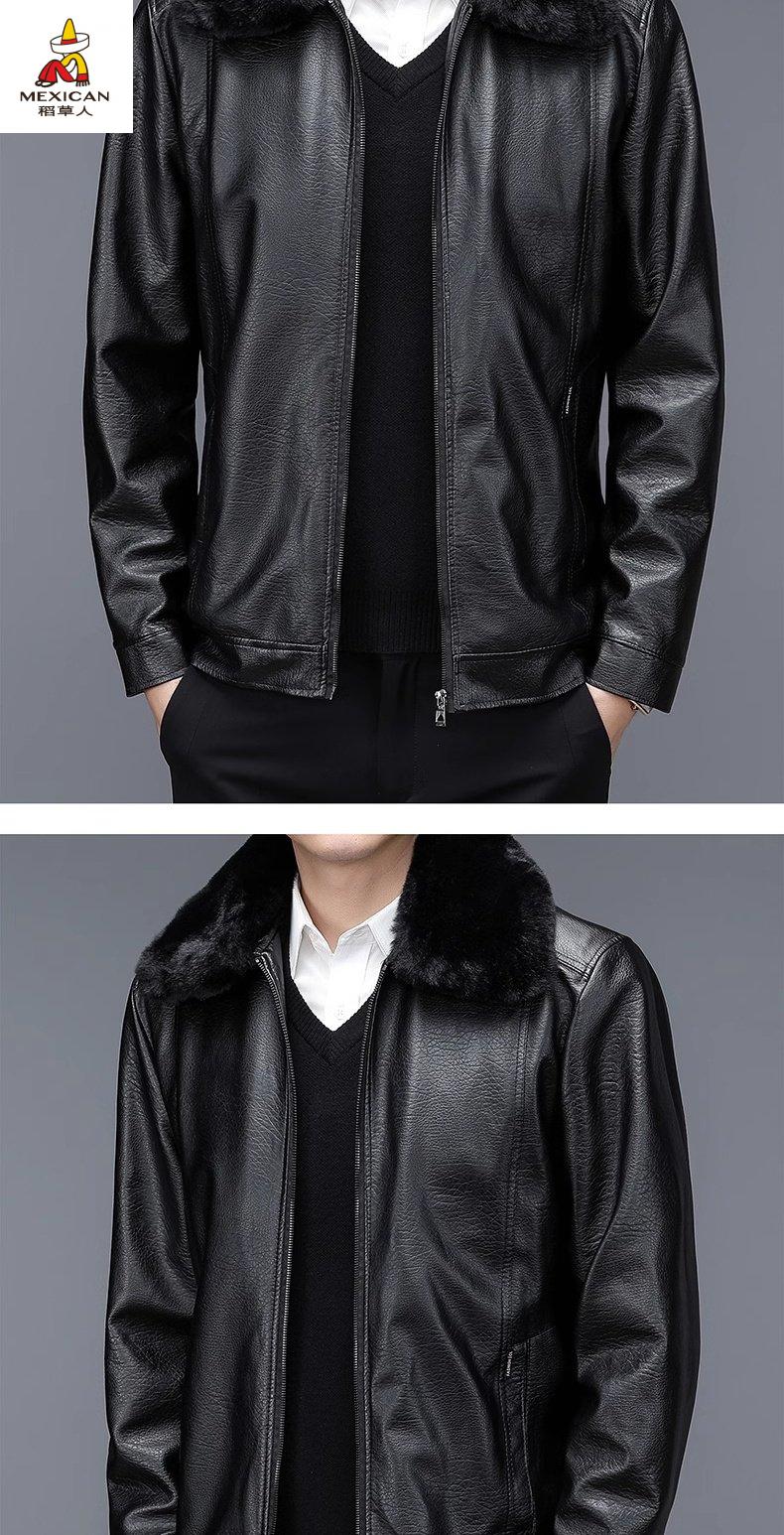 Scarecrow (MEXICAN) autumn and winter middle-aged and elderly leather jacket hooded men's leather jacket large size loose casual dad wear velvet thickened jacket 105 black 3XL 185170-190Jin Jin is equal to 0.5 kg