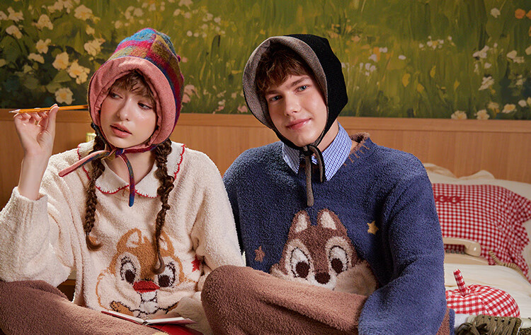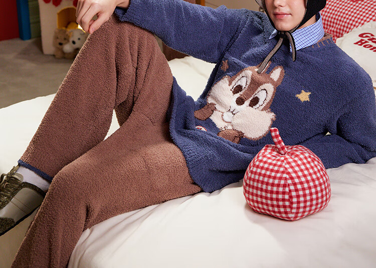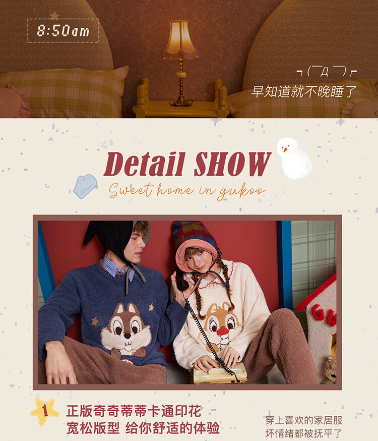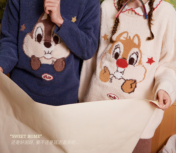 Gukoo Couple Pajamas Winter Half Velvet Warm New Chichititi Joint Women's Homewear Set Men's Pajamas D Green Gray Blue Men's Suit XL
