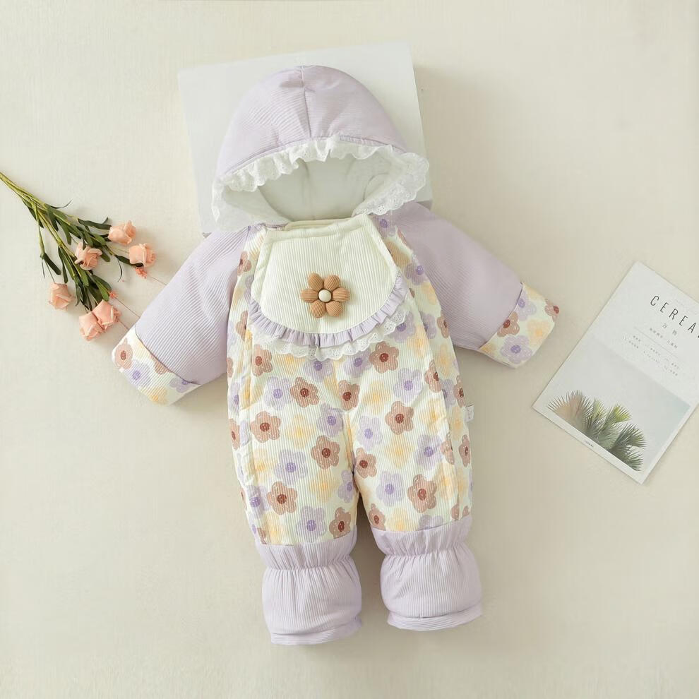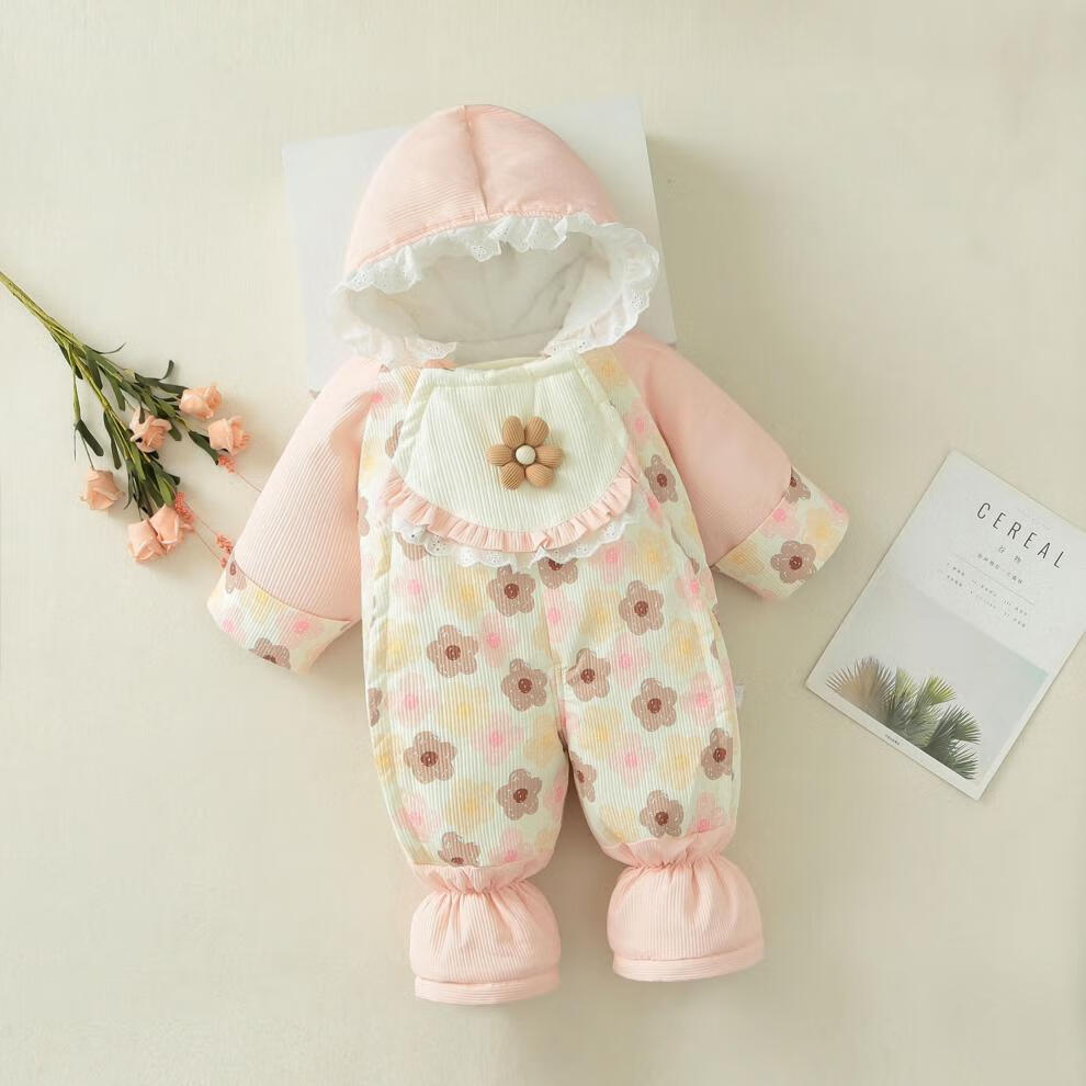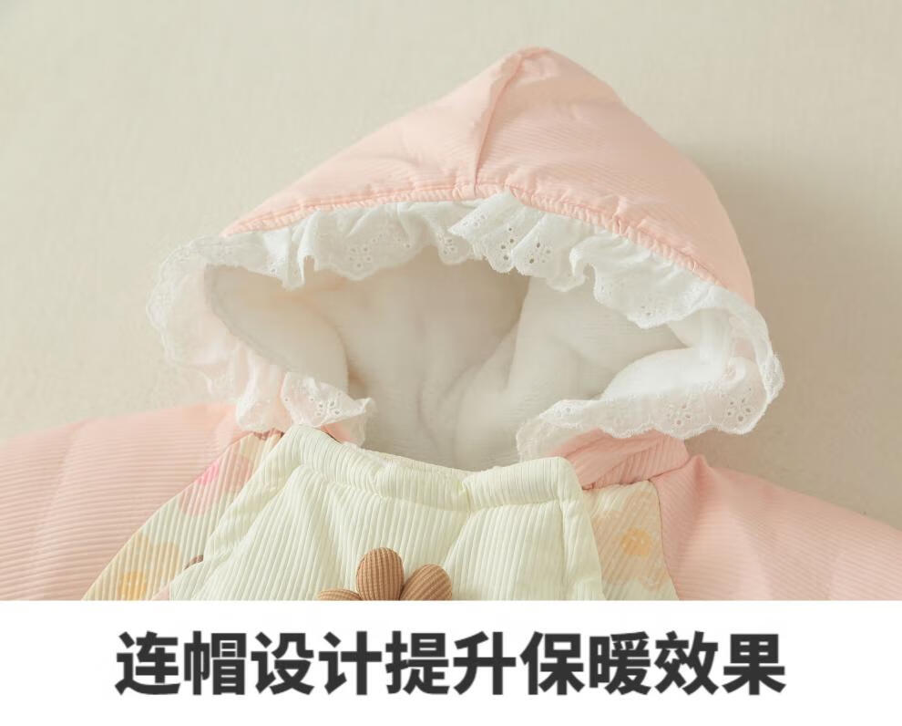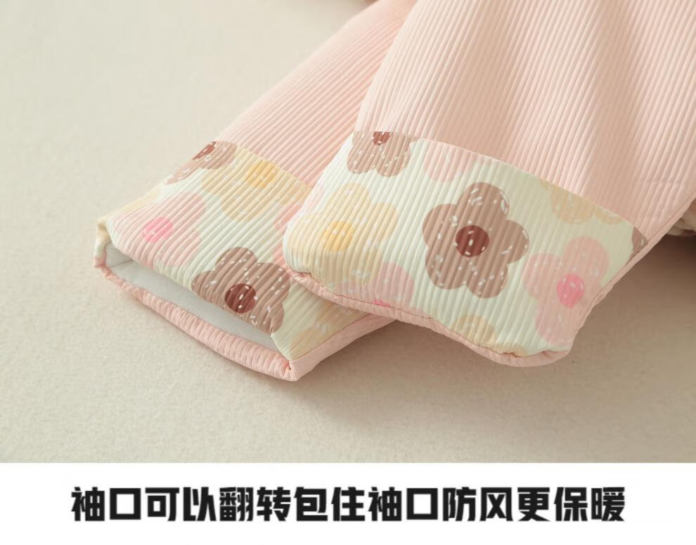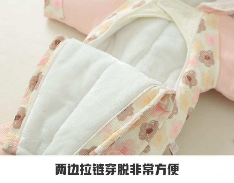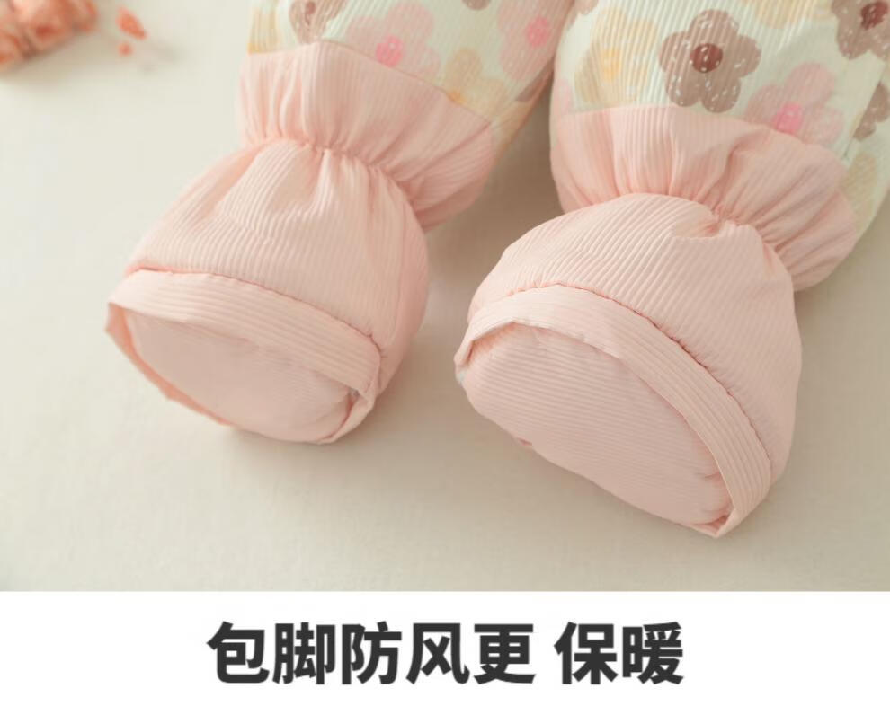 G.duck baby winter cotton padded quilt baby plus velvet thickened detachable foot jumpsuit to keep warm winter foot-covering outing cover new flower pink sole zipper detachable 80cm recommended for about 5-10 months