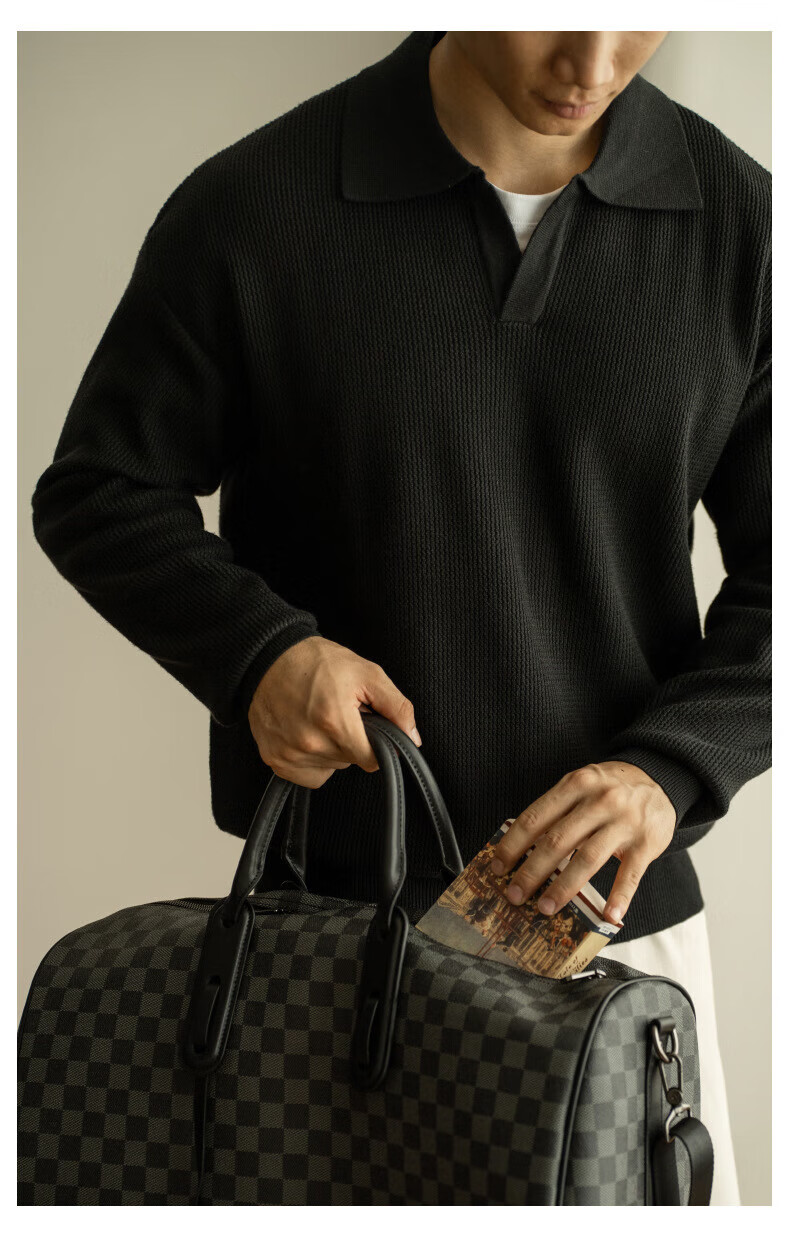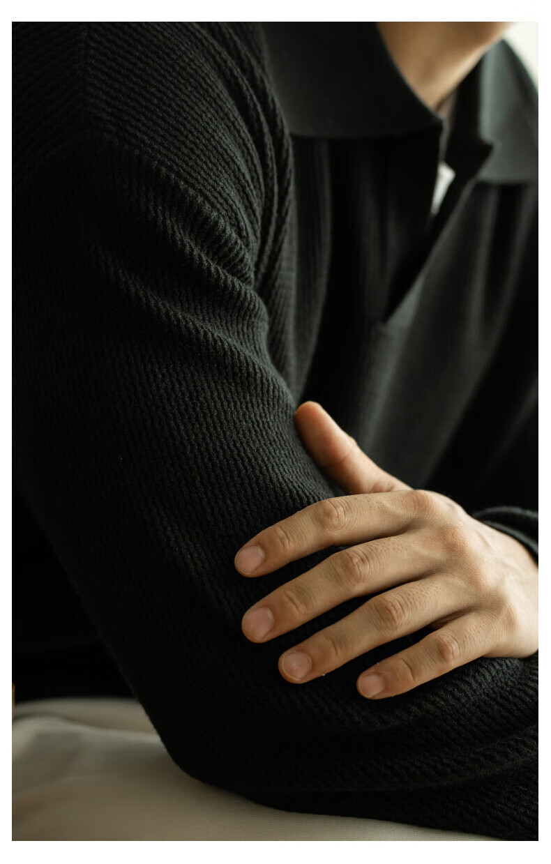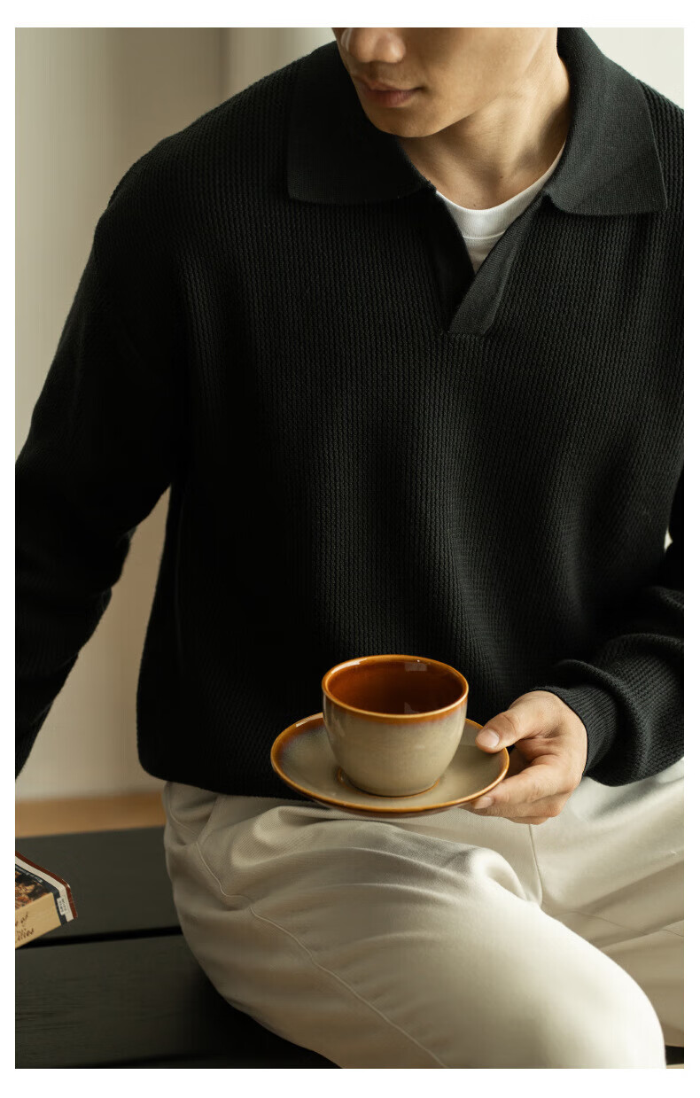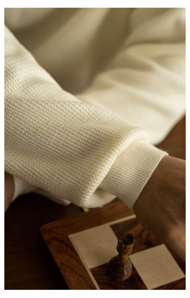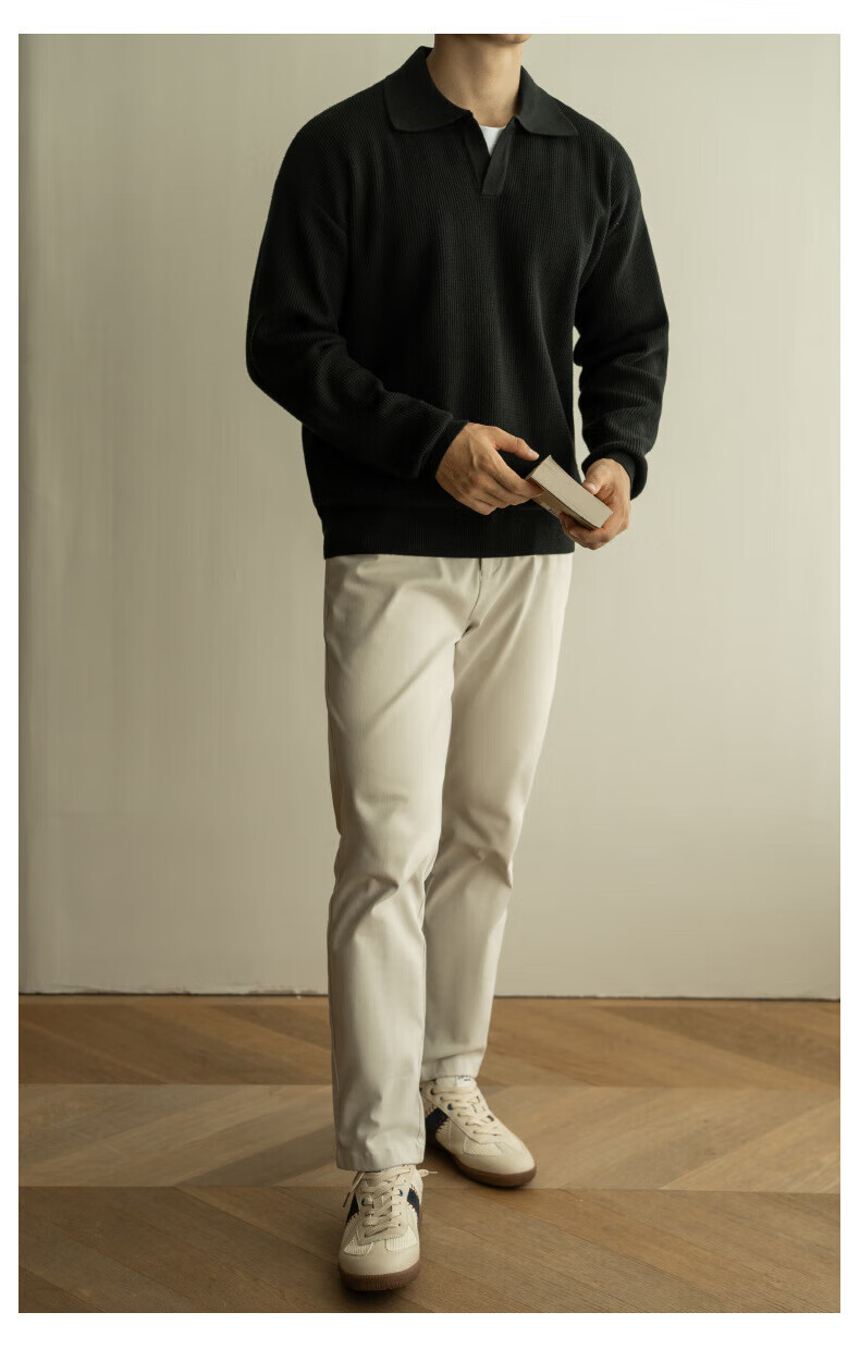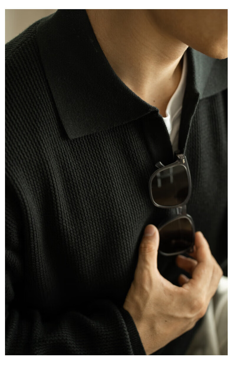 Kazuki Kuraishi KAZUKI KURAISHI autumn new V-neck sweater pullover heavy sweater yarn-dyed lapel long-sleeved POLO shirt casual light mature style for men off-white XL