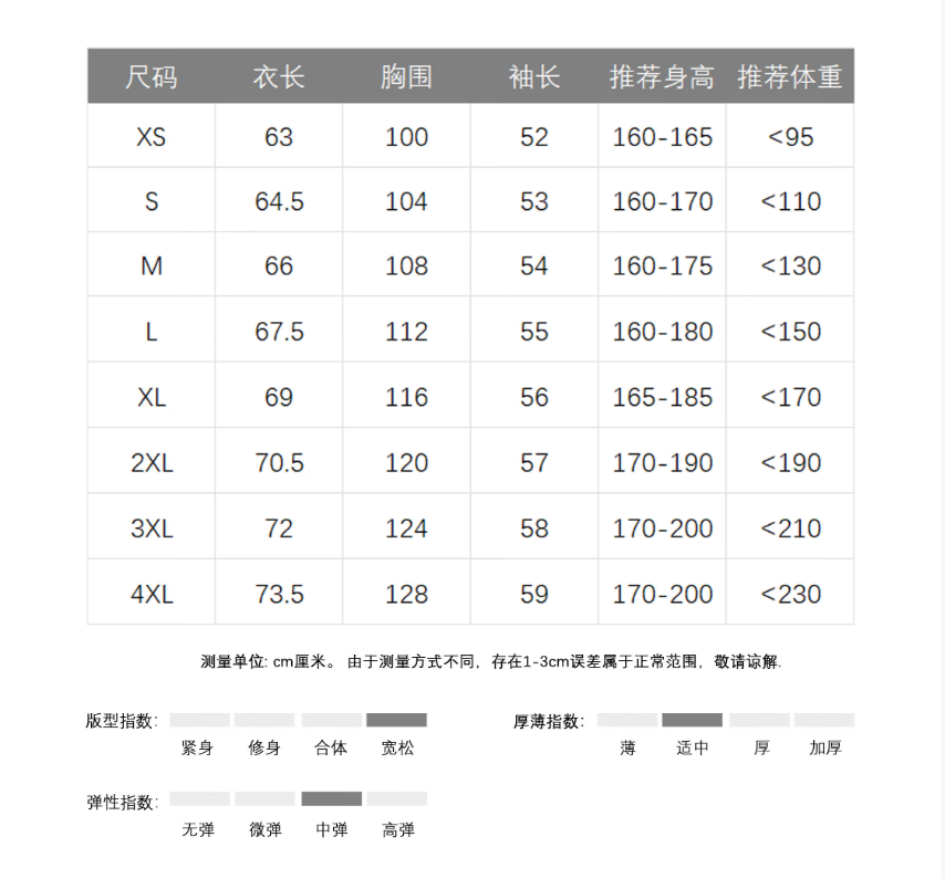 China (cm) 160-165/84-86 165-170 / 88-90 167-172 / 92-96 168-173 / 98-102 170-176 / 106-110